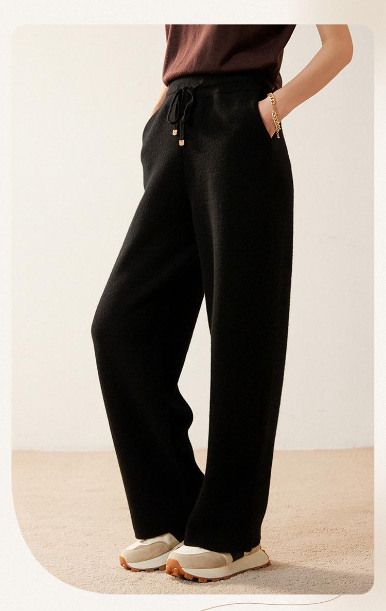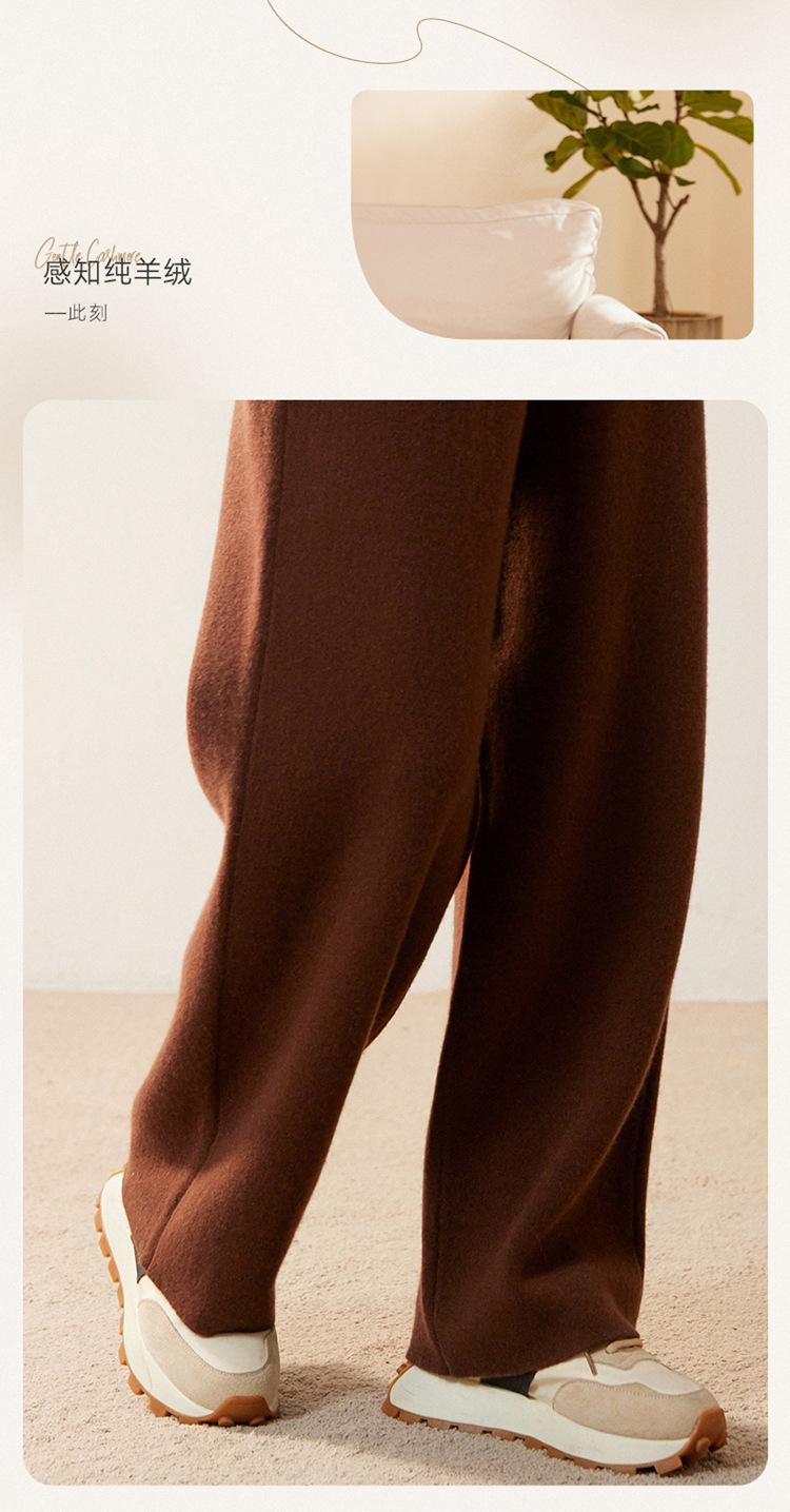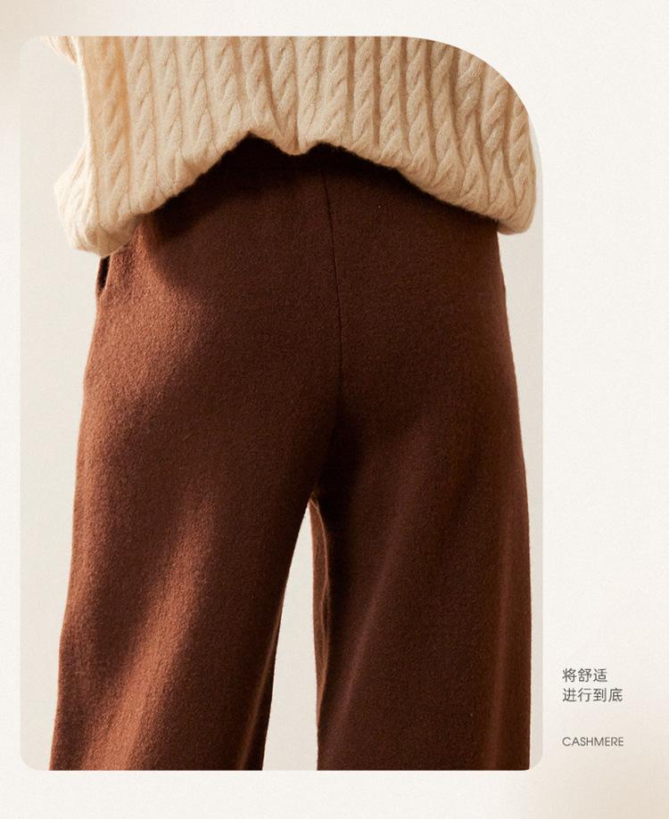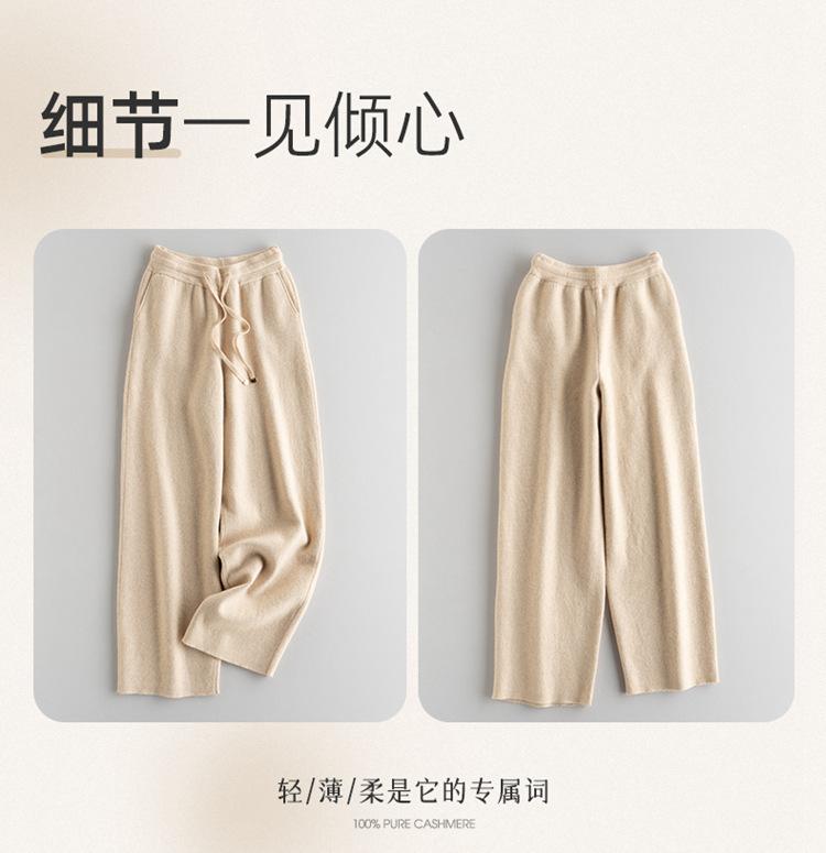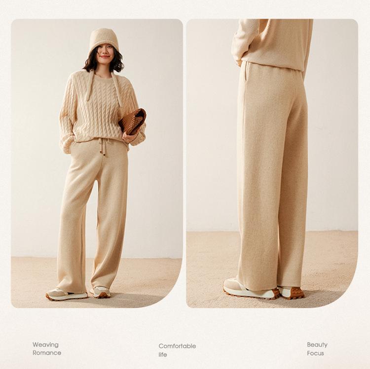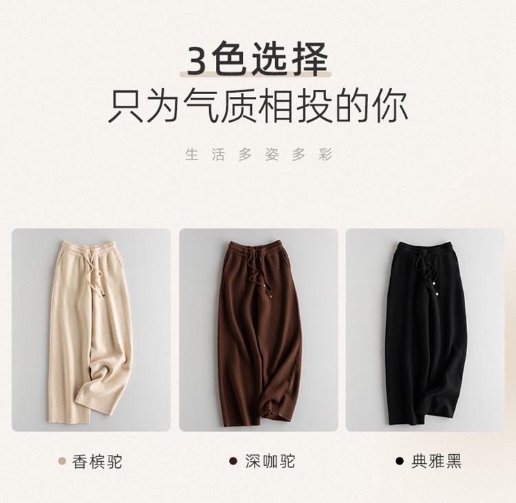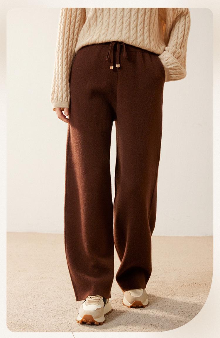 Pantalones de Pierna Ancha de Cachemira 100% Pura Nuevos para Mujer de Cintura Alta Tejidos Gruesos Dape Holgados de Aspecto Delgado Pantalones Casuales para Otoño e Invierno