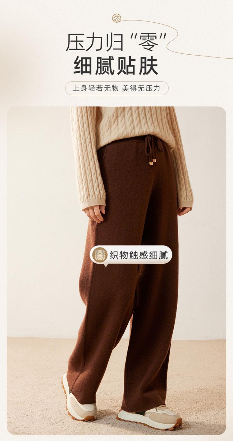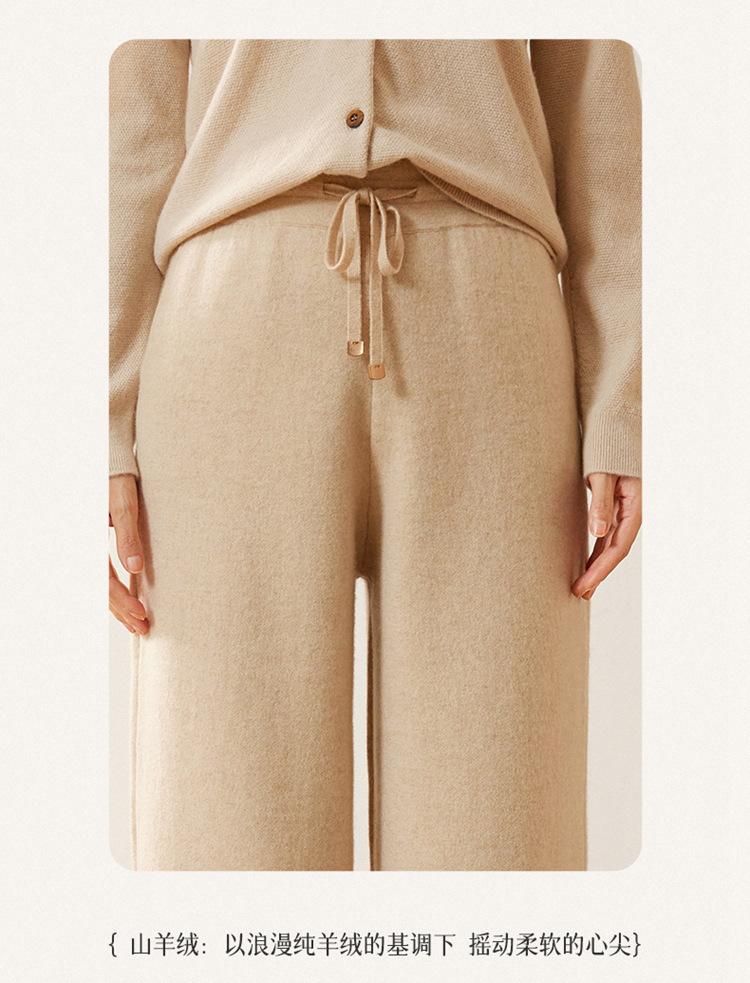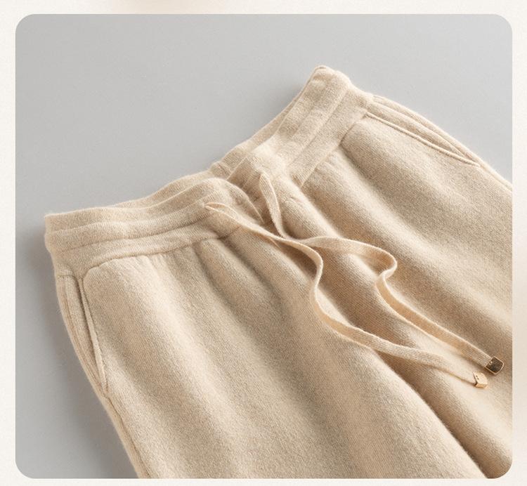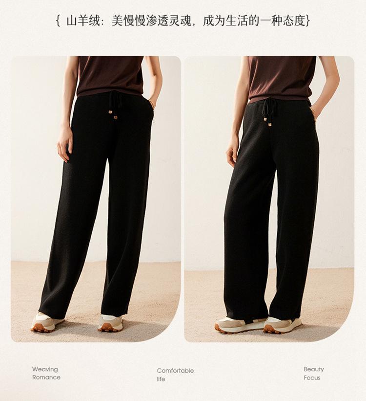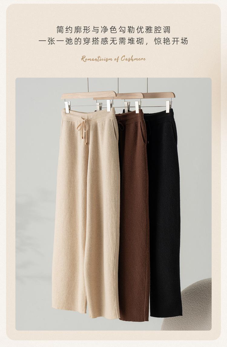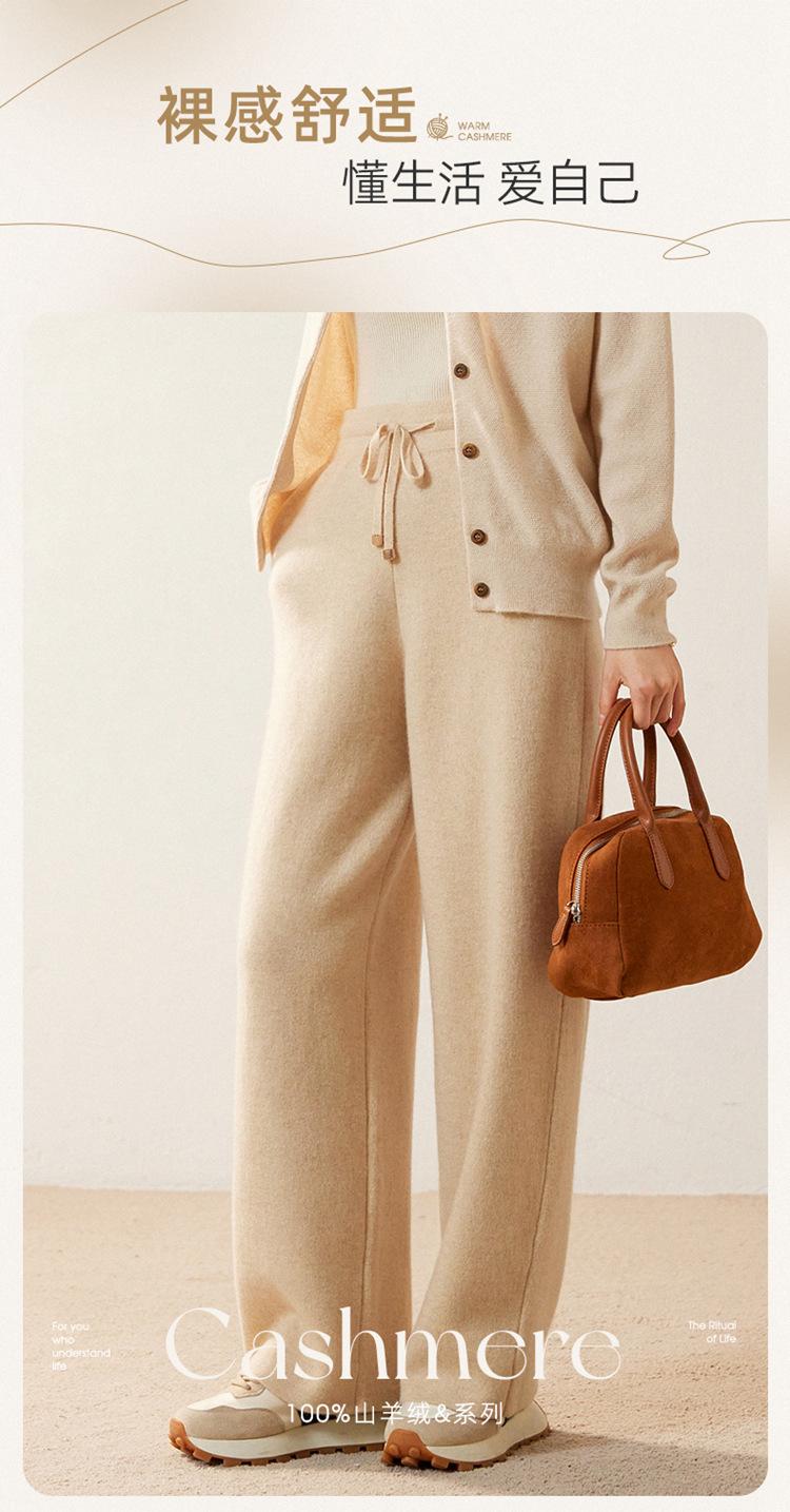 Pantalones de Pierna Ancha de Cachemira 100% Pura Nuevos para Mujer de Cintura Alta Tejidos Gruesos Dape Holgados de Aspecto Delgado Pantalones Casuales para Otoño e Invierno