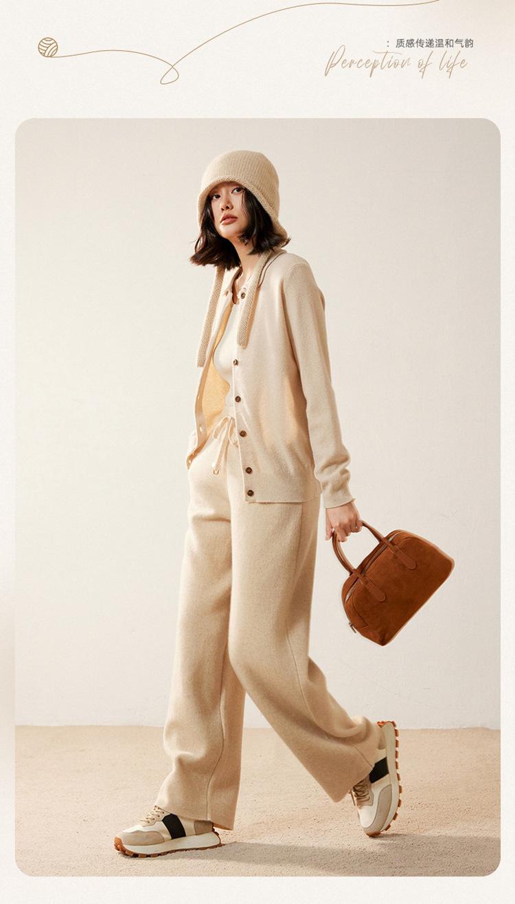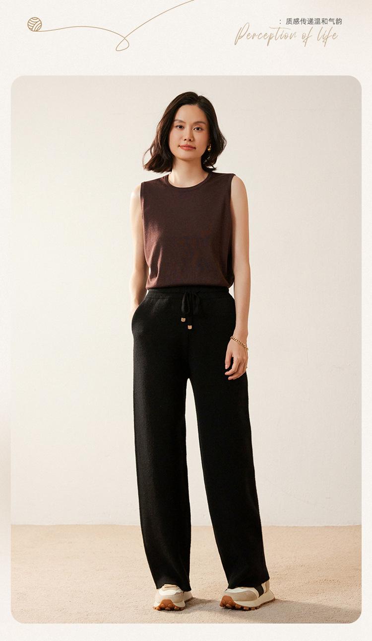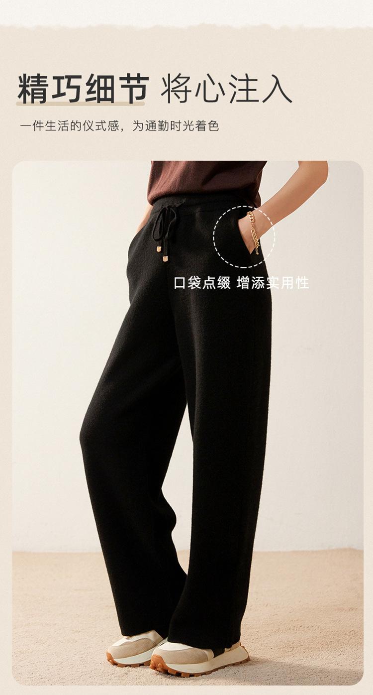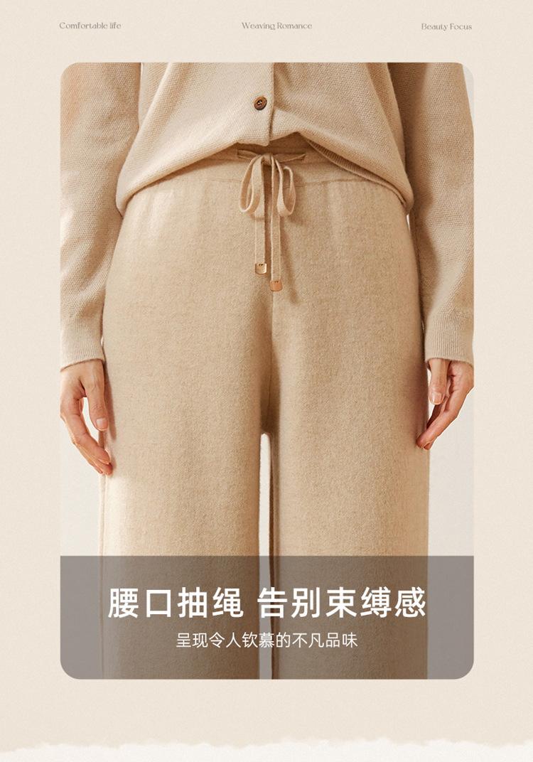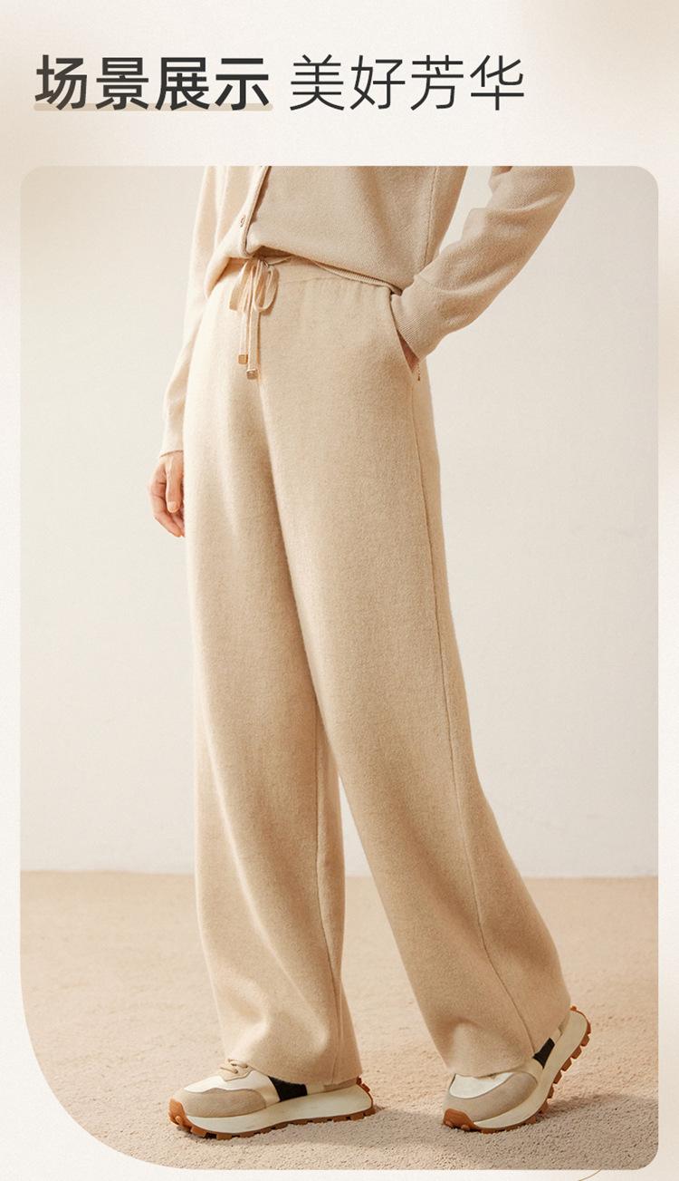 Pantalones de Pierna Ancha de Cachemira 100% Pura Nuevos para Mujer de Cintura Alta Tejidos Gruesos Dape Holgados de Aspecto Delgado Pantalones Casuales para Otoño e Invierno