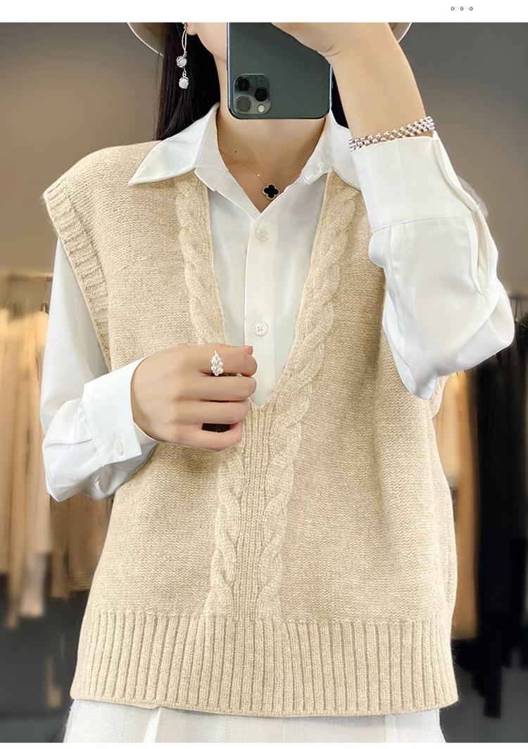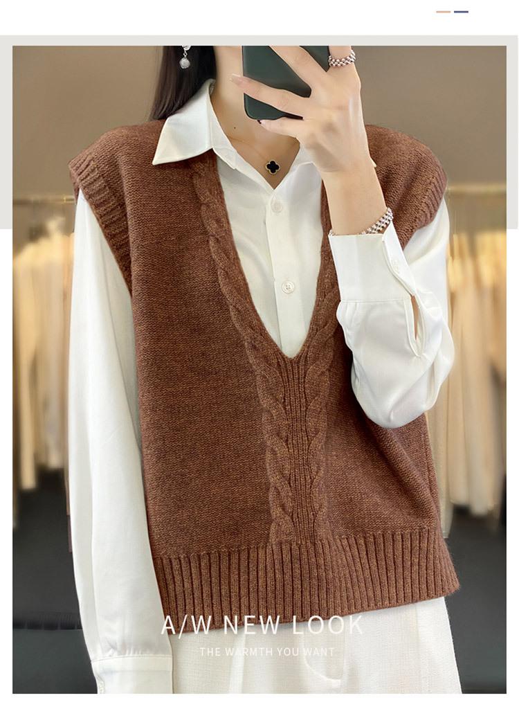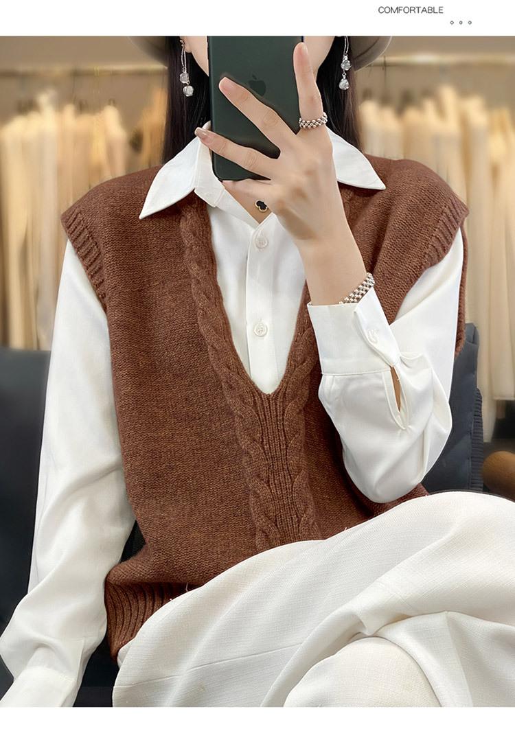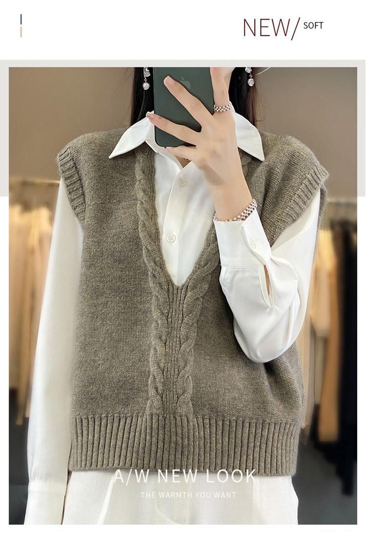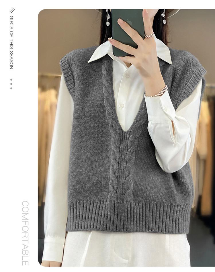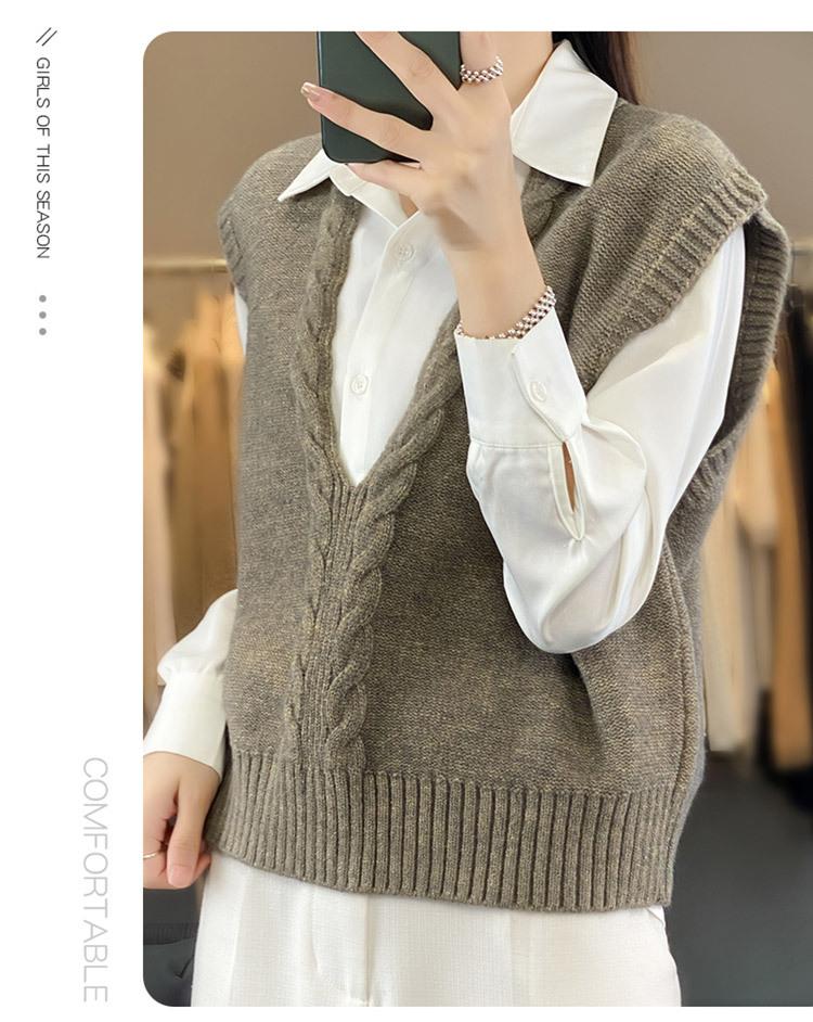 Chaleco Grueso de Cáñamo de Cuello en V Nuevo de Primavera 2025 Transfronterizo para Mujer Camisa en Capas Suéter sin Mangas Prendas de Punto Chaleco
