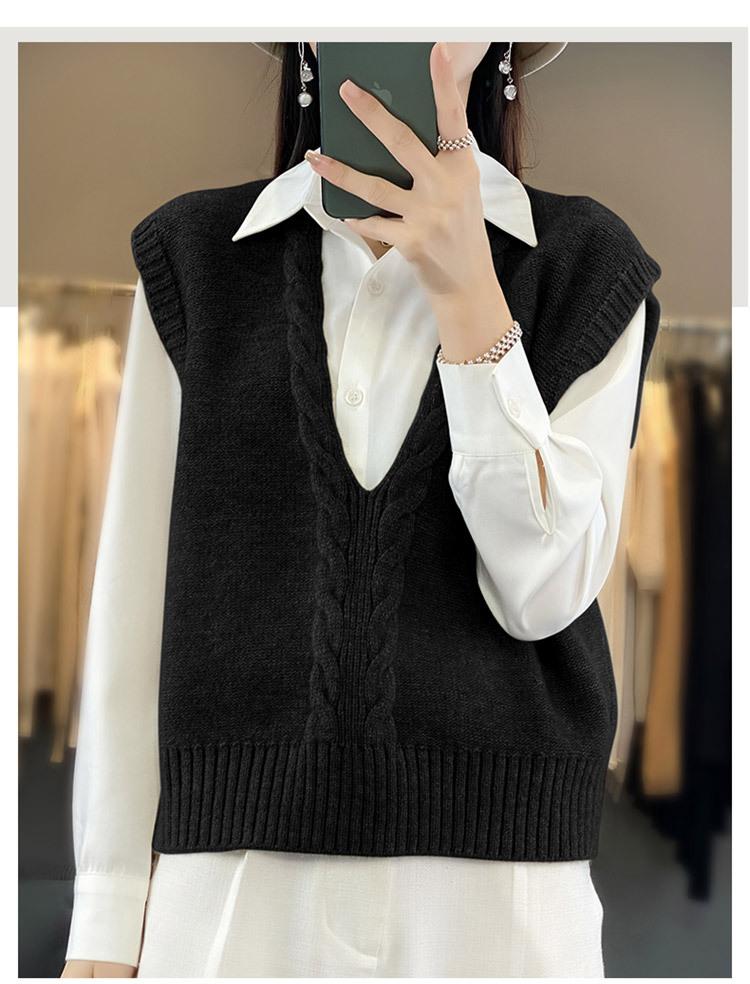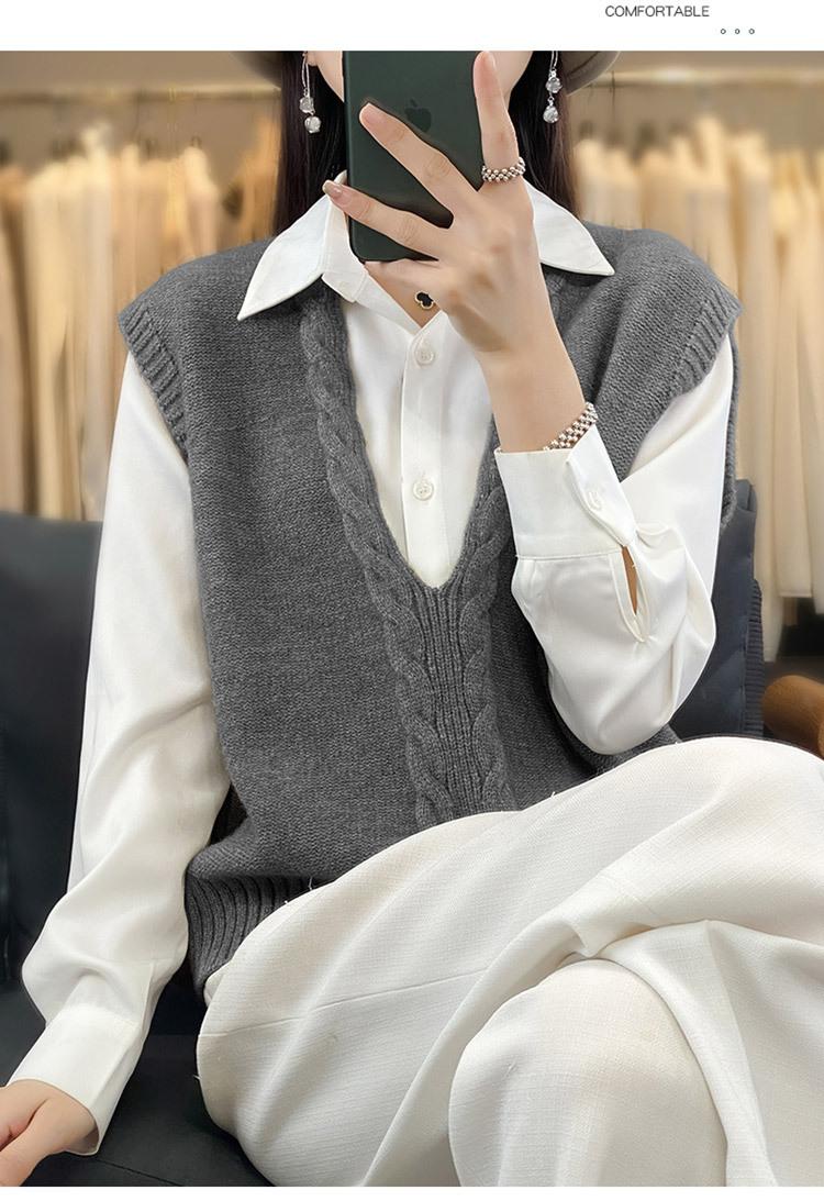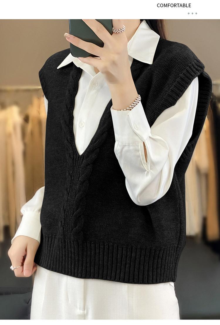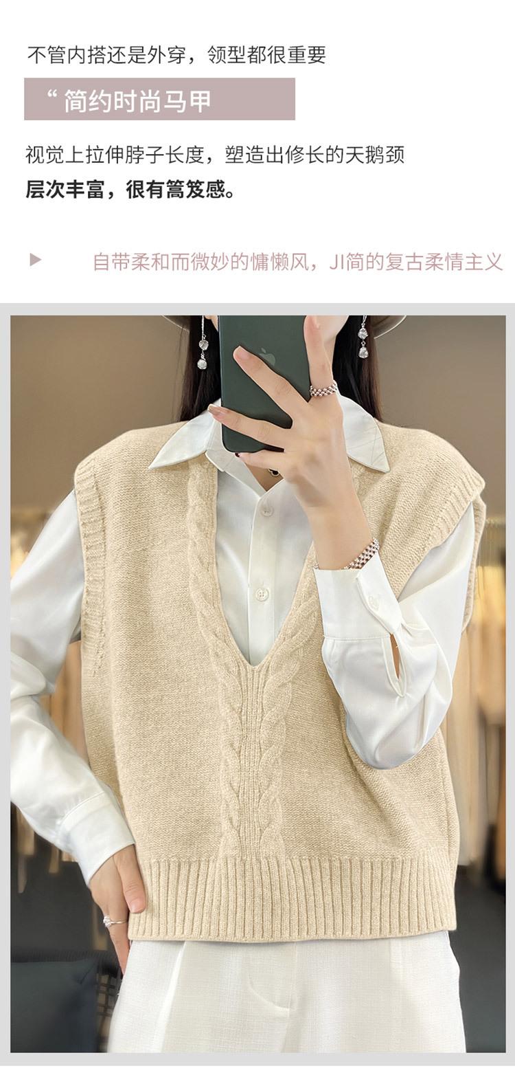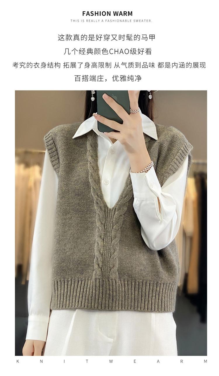 Chaleco Grueso de Cáñamo de Cuello en V Nuevo de Primavera 2025 Transfronterizo para Mujer Camisa en Capas Suéter sin Mangas Prendas de Punto Chaleco