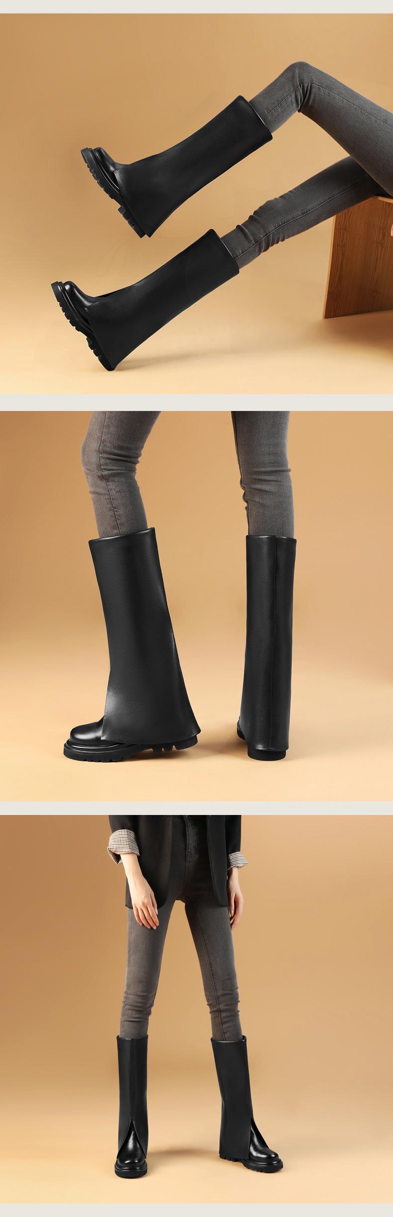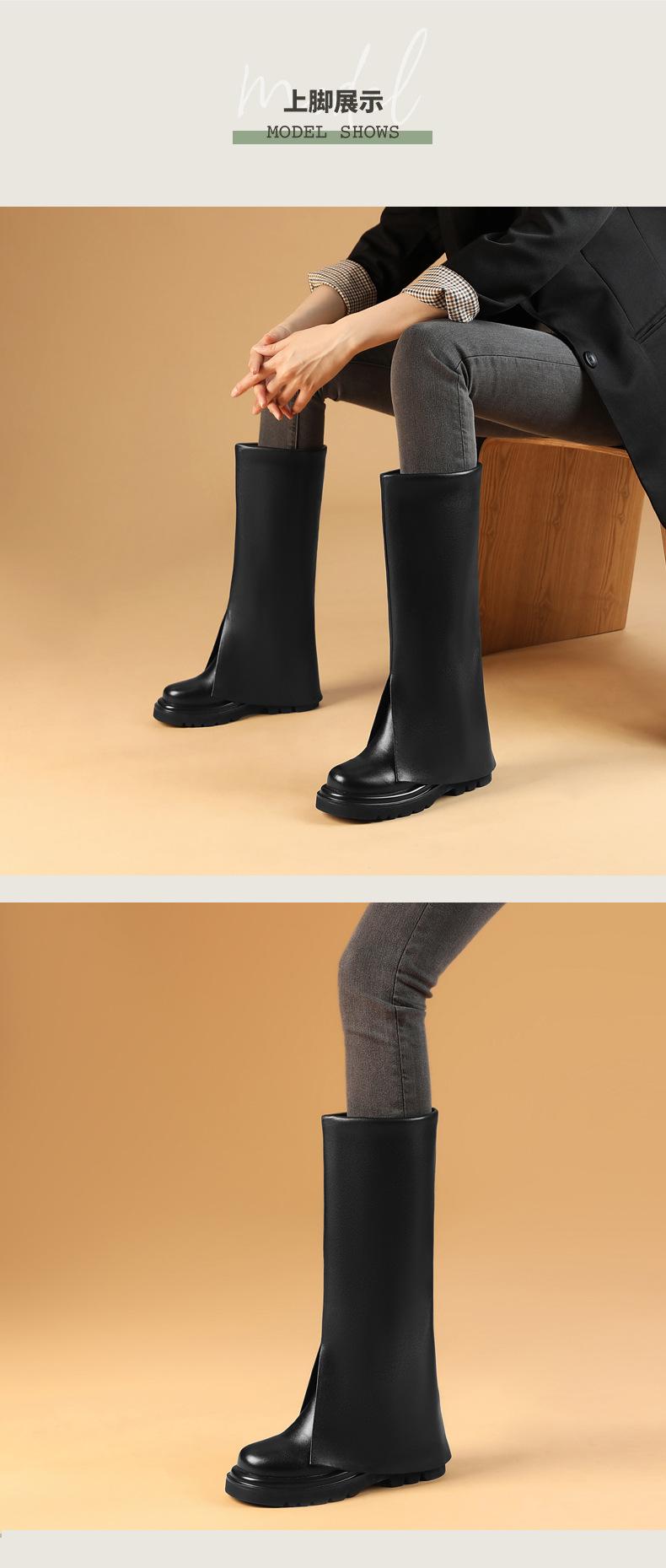Botas altas para mujer, otoño e invierno, nuevas, 10 cm de altura interior aumentada, pero botas de pantalón hasta la rodilla, botas de caballero