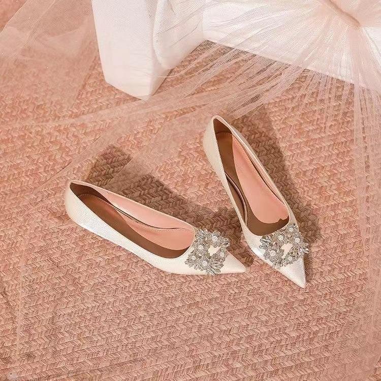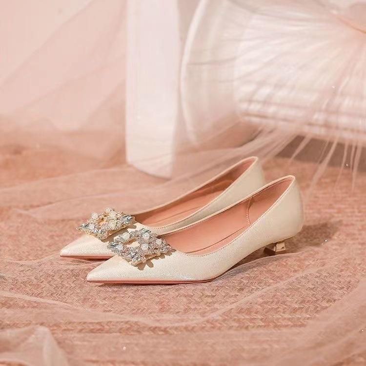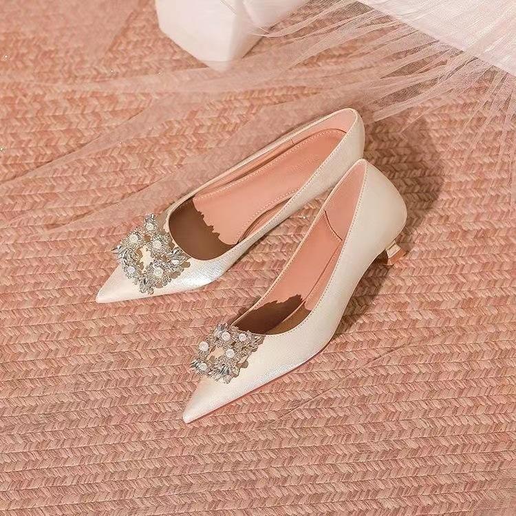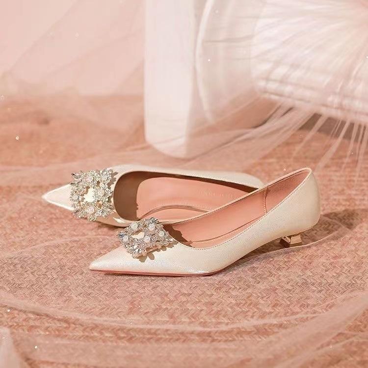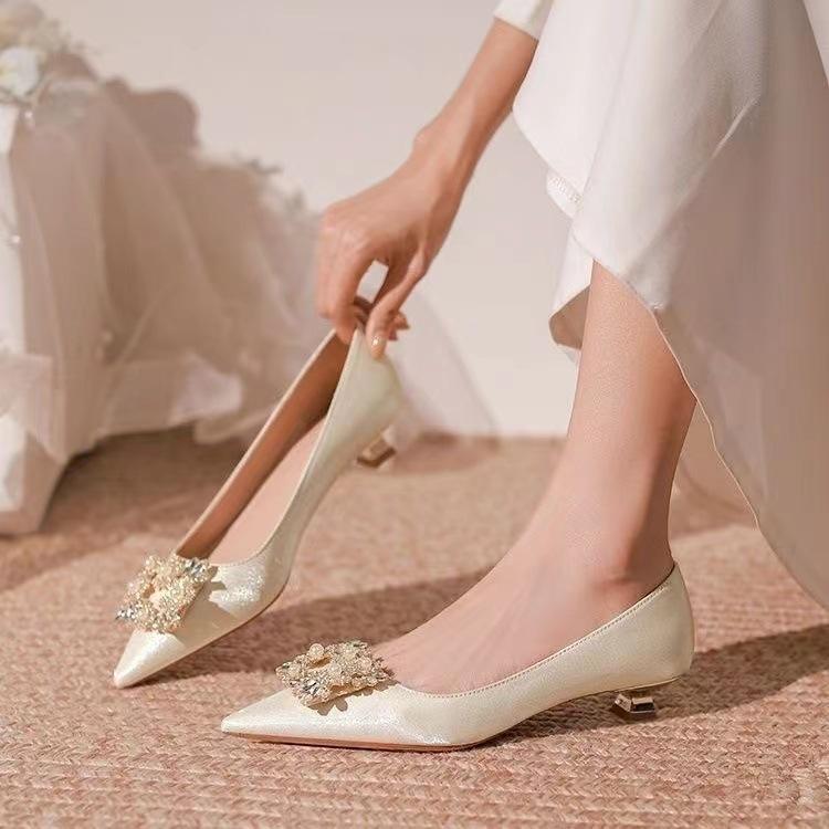 Zapatos de Boda de Punta Zapatos de Mujer 2025 Nuevo Vestido de Novia Principal Tacones Altos Zapatos de Novia Zapatos de Dama de Honor Zapatos de Compromiso de Cristal Francés