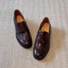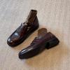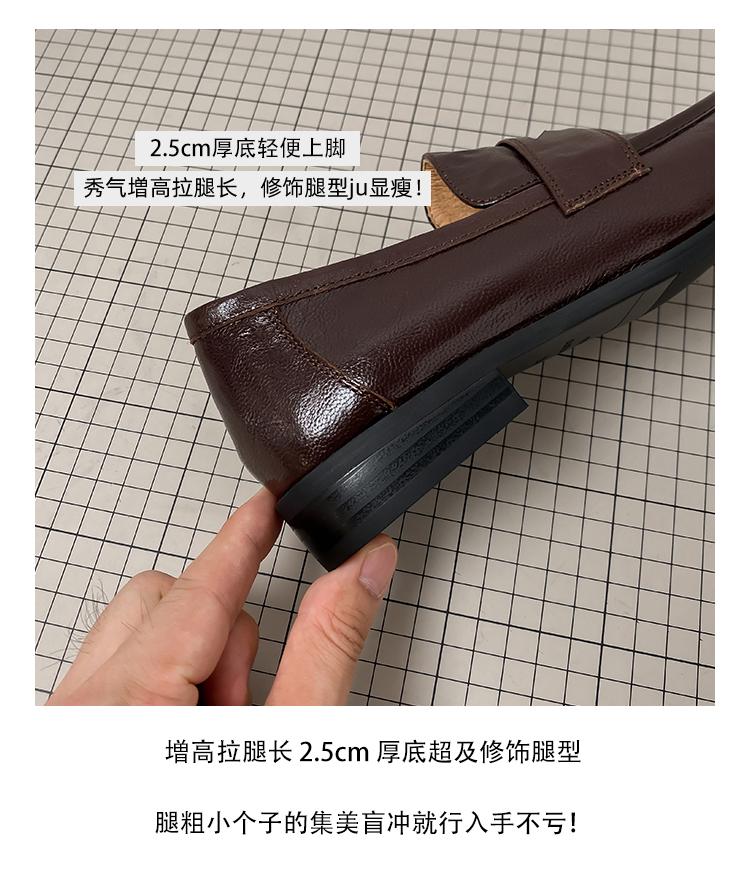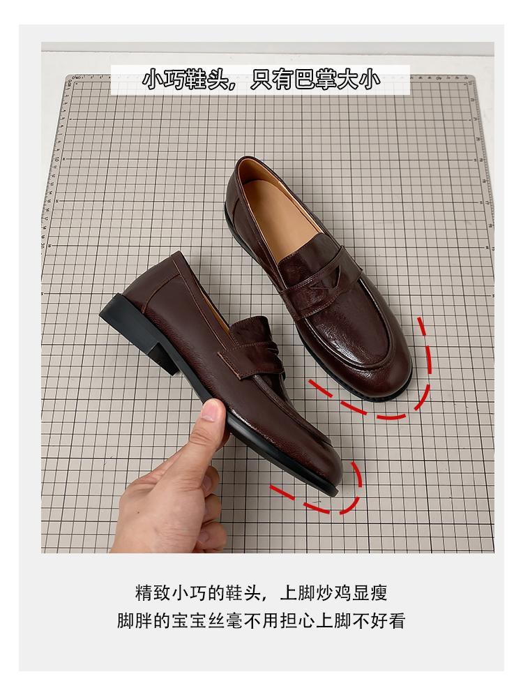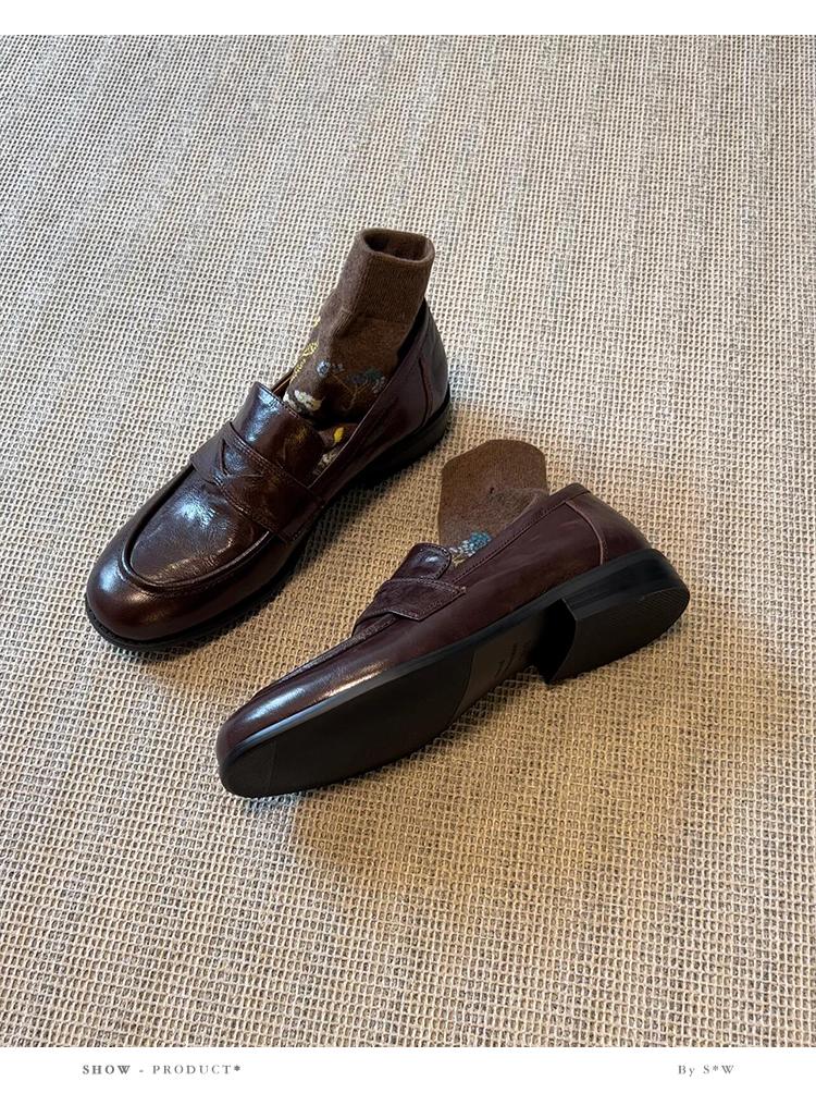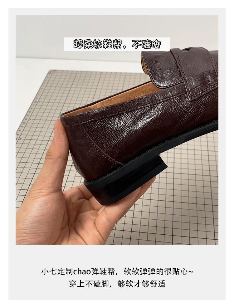 Zapatos Casuales de Piel Genuina Retro de Piel de Oveja Suave para Mujer, Zapatos Planos de Tacón Grueso a la Moda, Zapatos de Cuero Estilo Británico, Mocasines