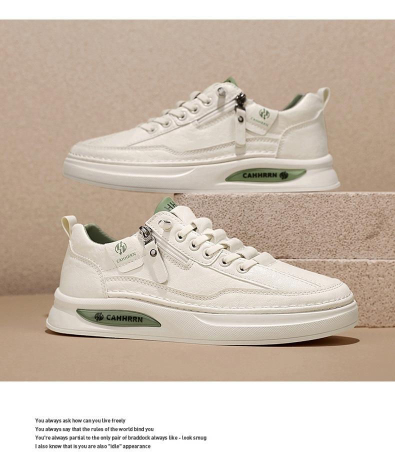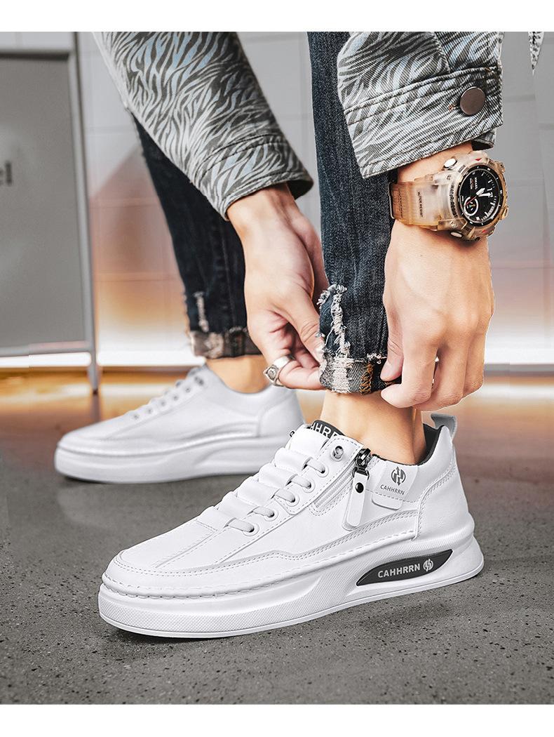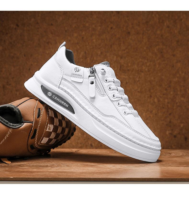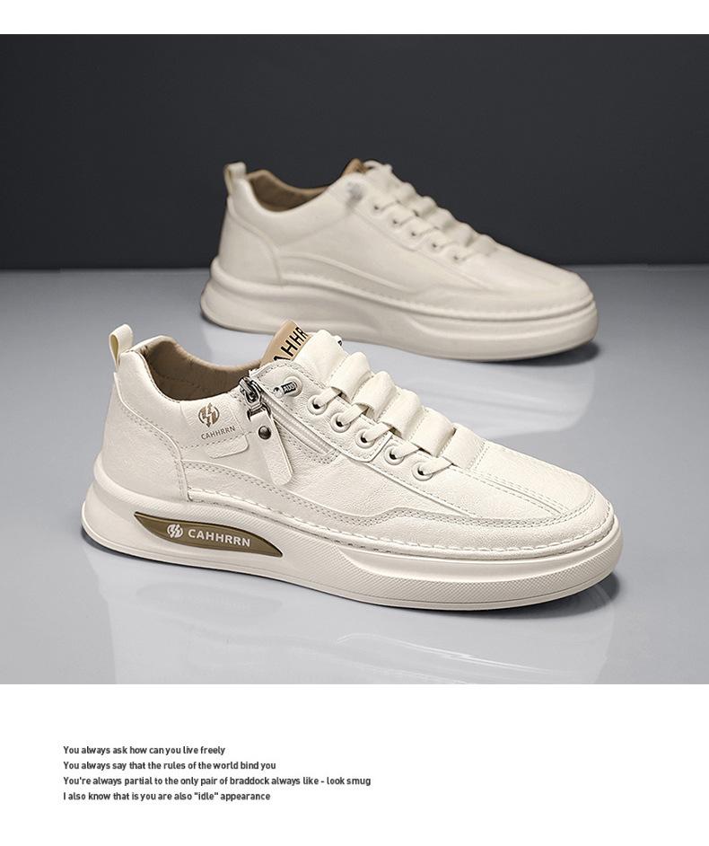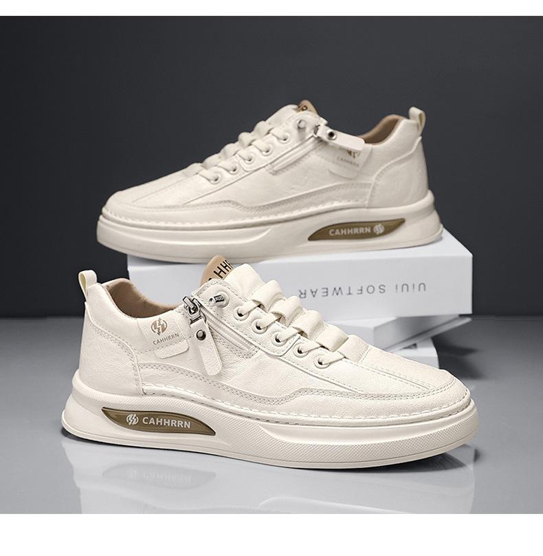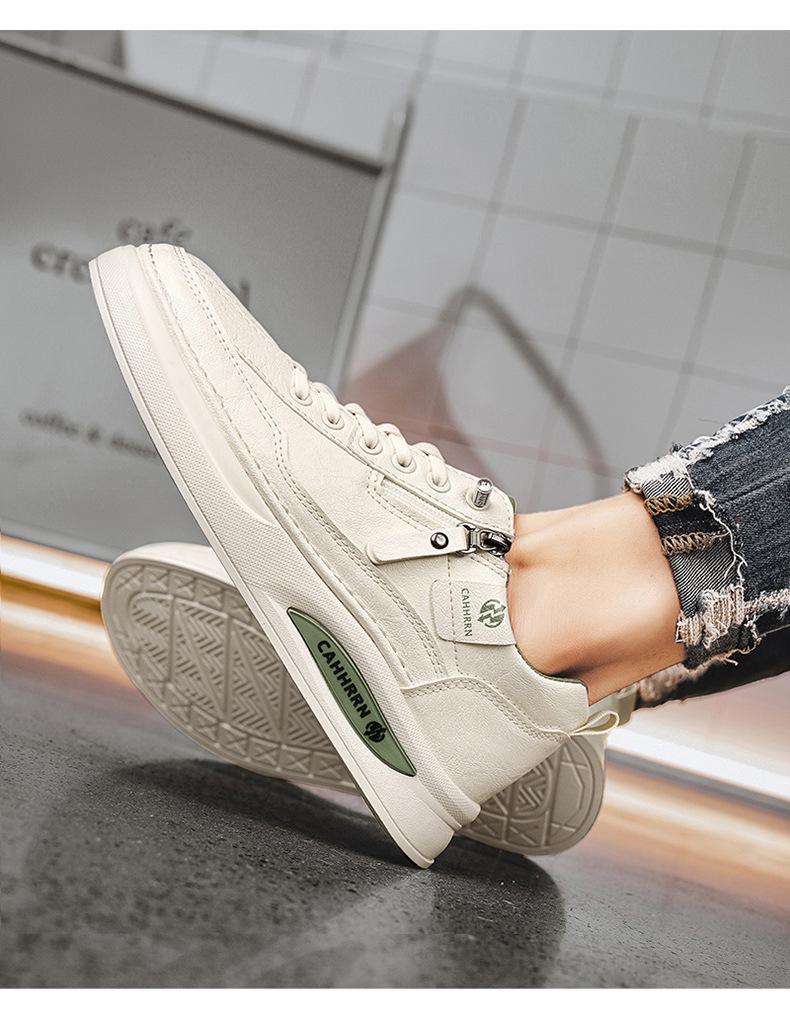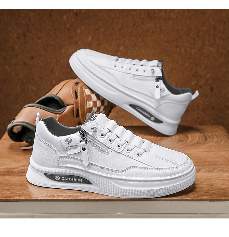 Zapatos de tabla para hombre, zapatos blancos bajos para estudiantes, primavera 2025, zapatos casuales de cuero para hombre, zapatos de moda con cremallera para adolescentes.