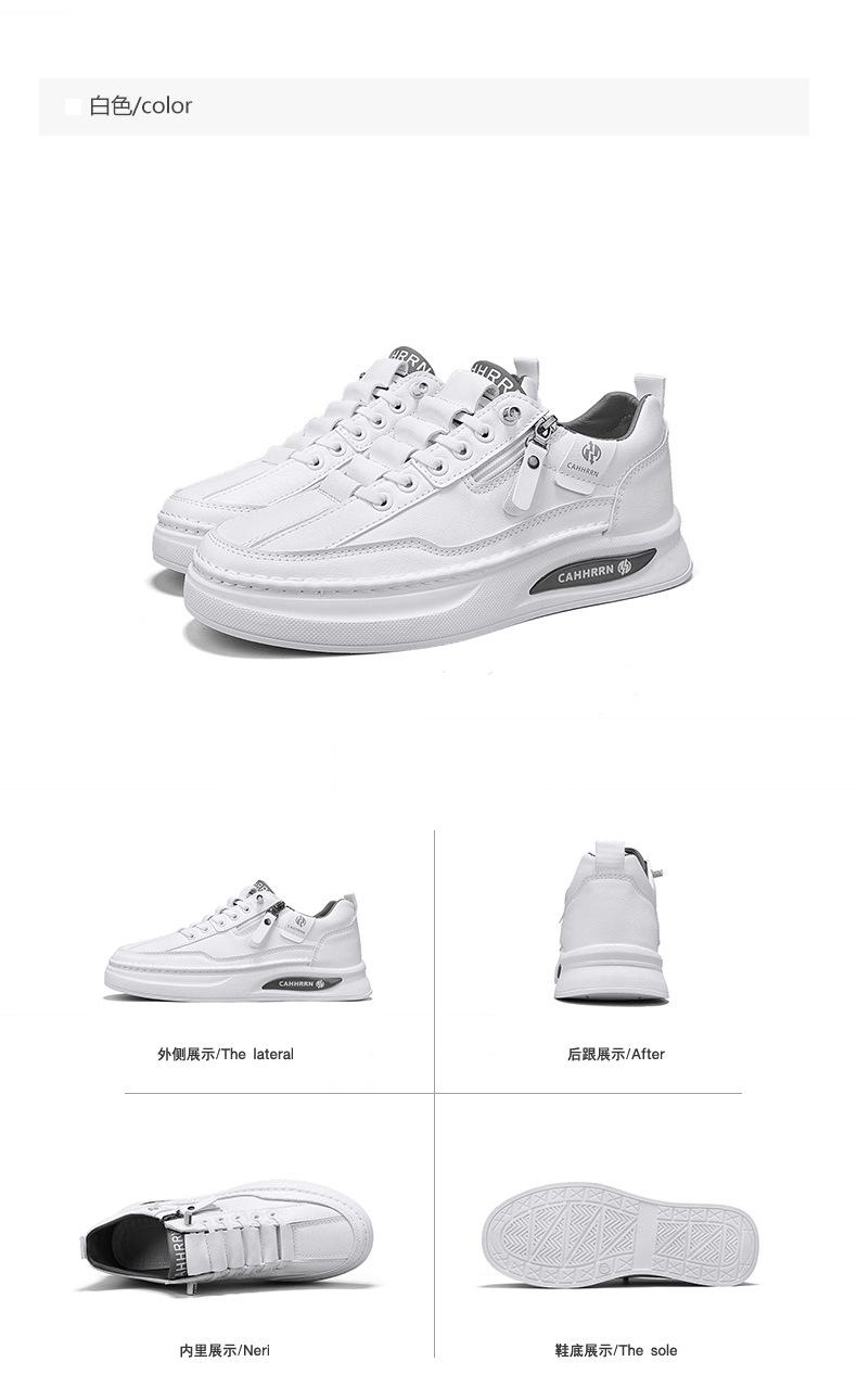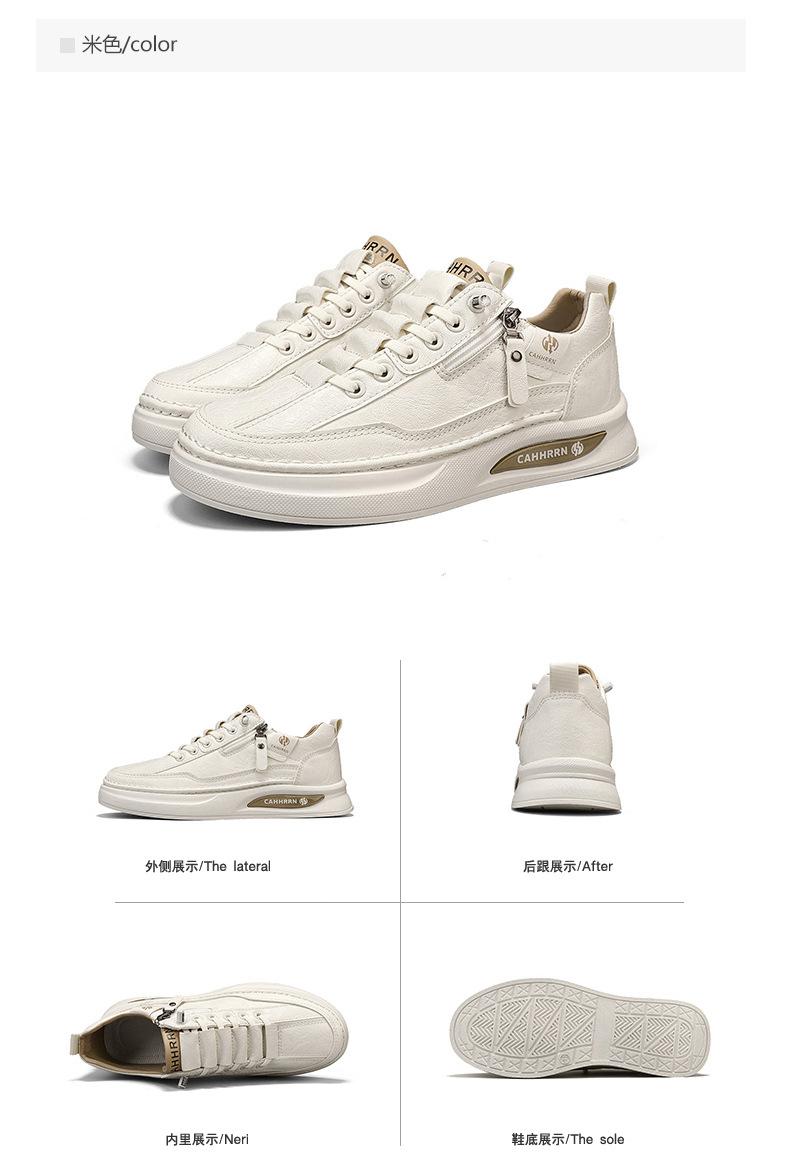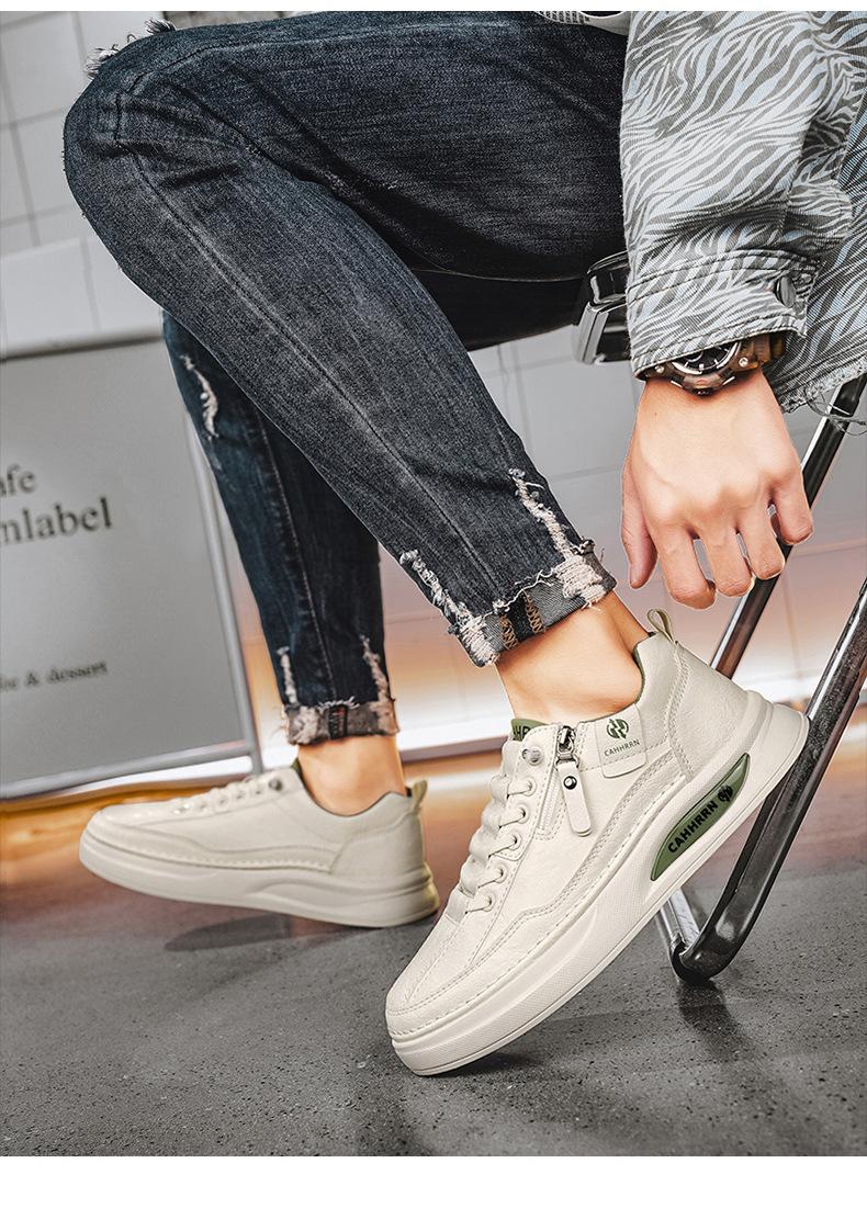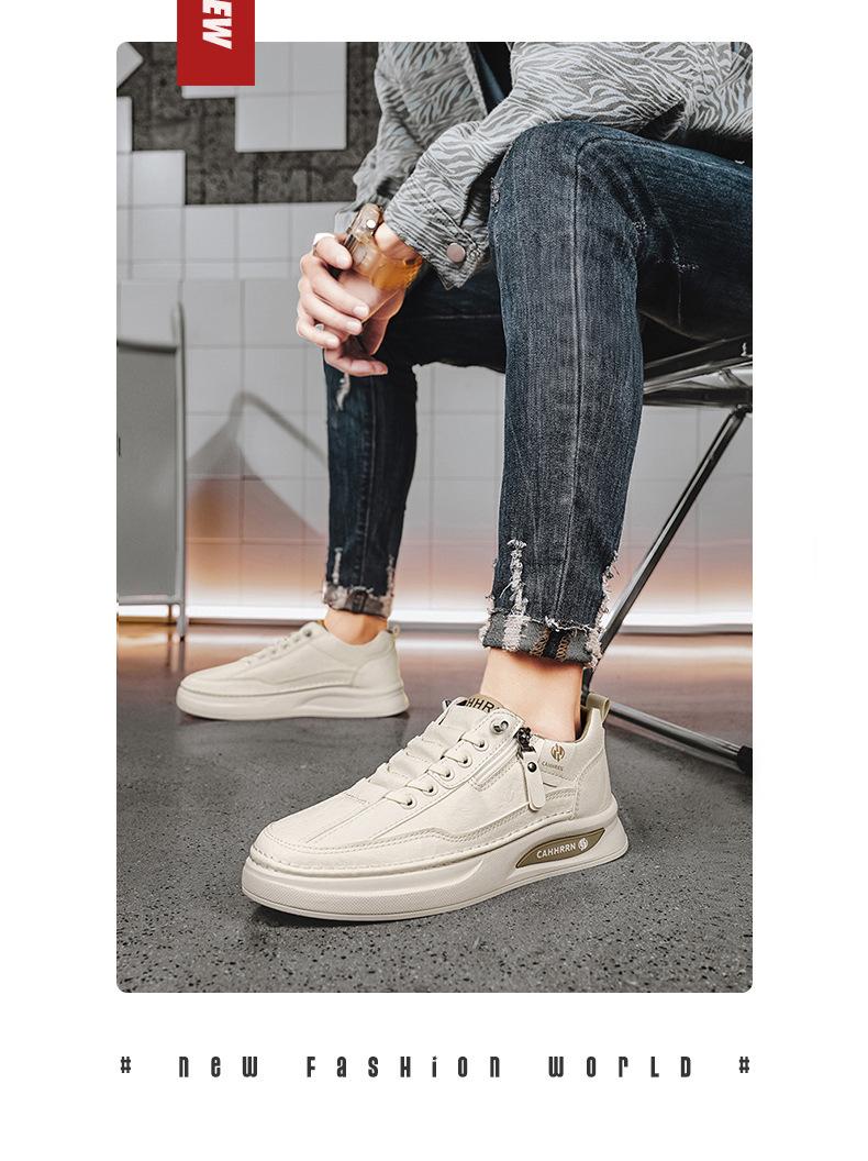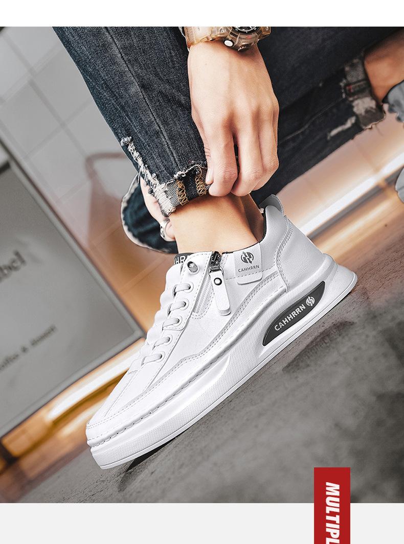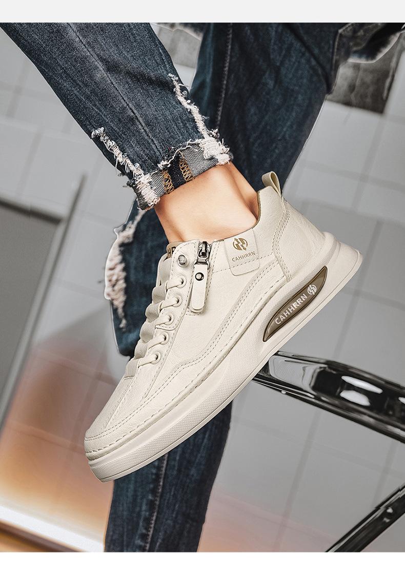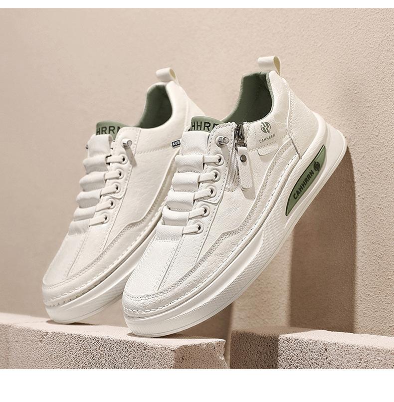 Zapatos de tabla para hombre, zapatos blancos bajos para estudiantes, primavera 2025, zapatos casuales de cuero para hombre, zapatos de moda con cremallera para adolescentes.