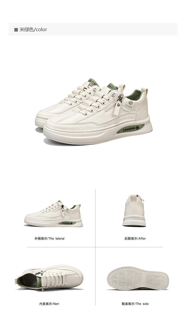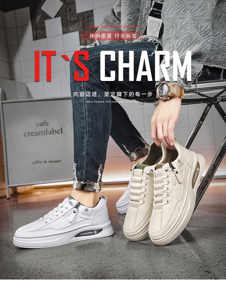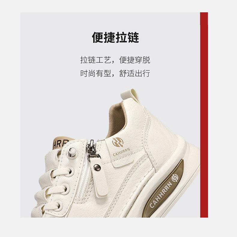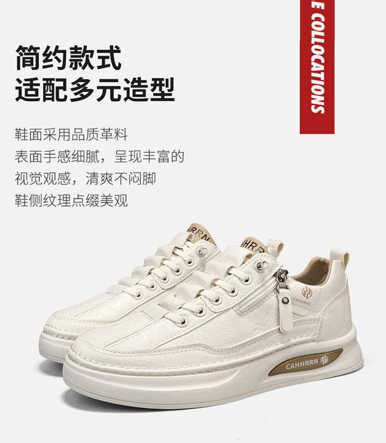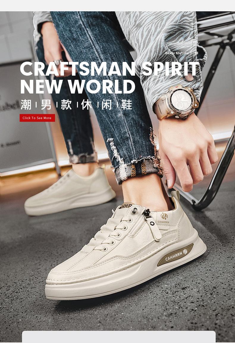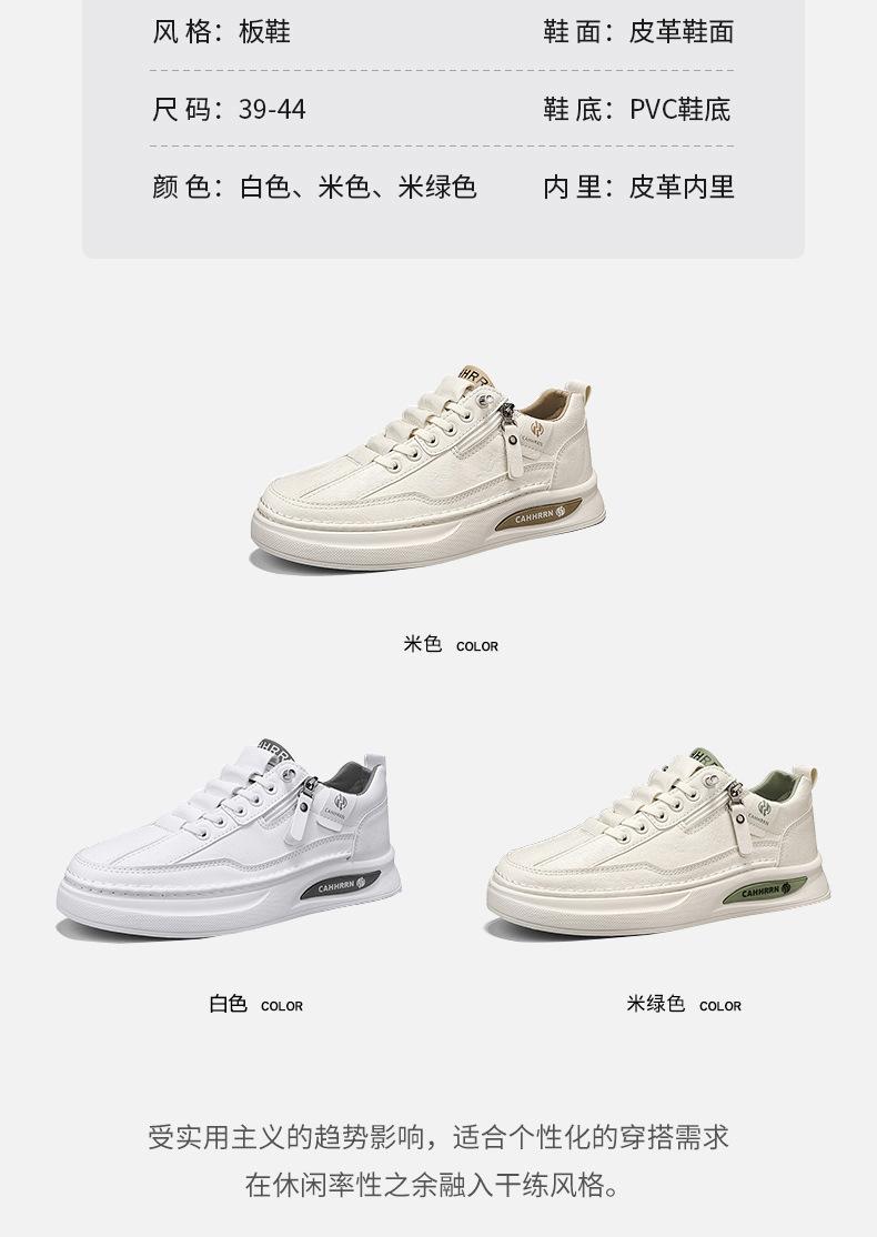 Zapatos de tabla para hombre, zapatos blancos bajos para estudiantes, primavera 2025, zapatos casuales de cuero para hombre, zapatos de moda con cremallera para adolescentes.