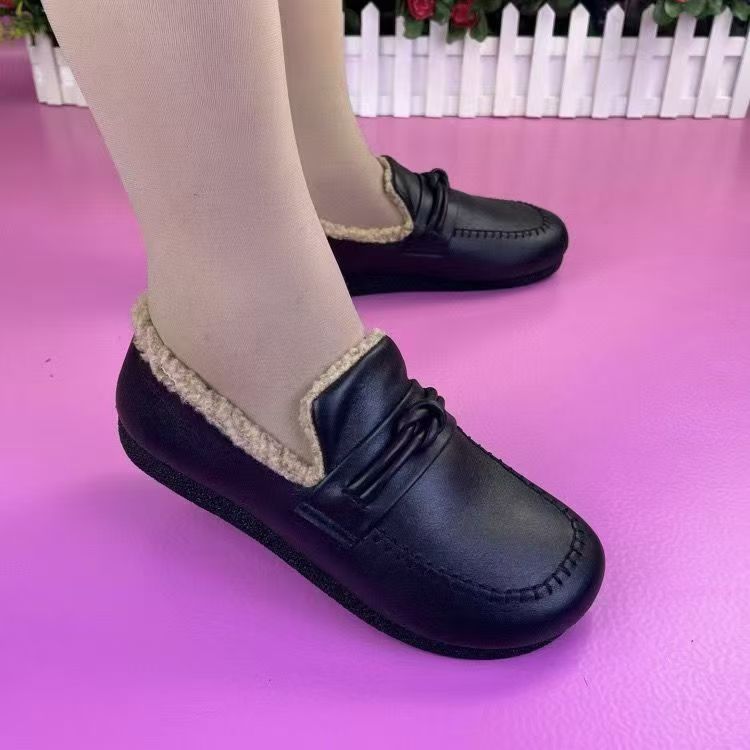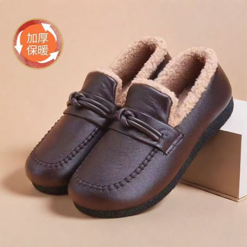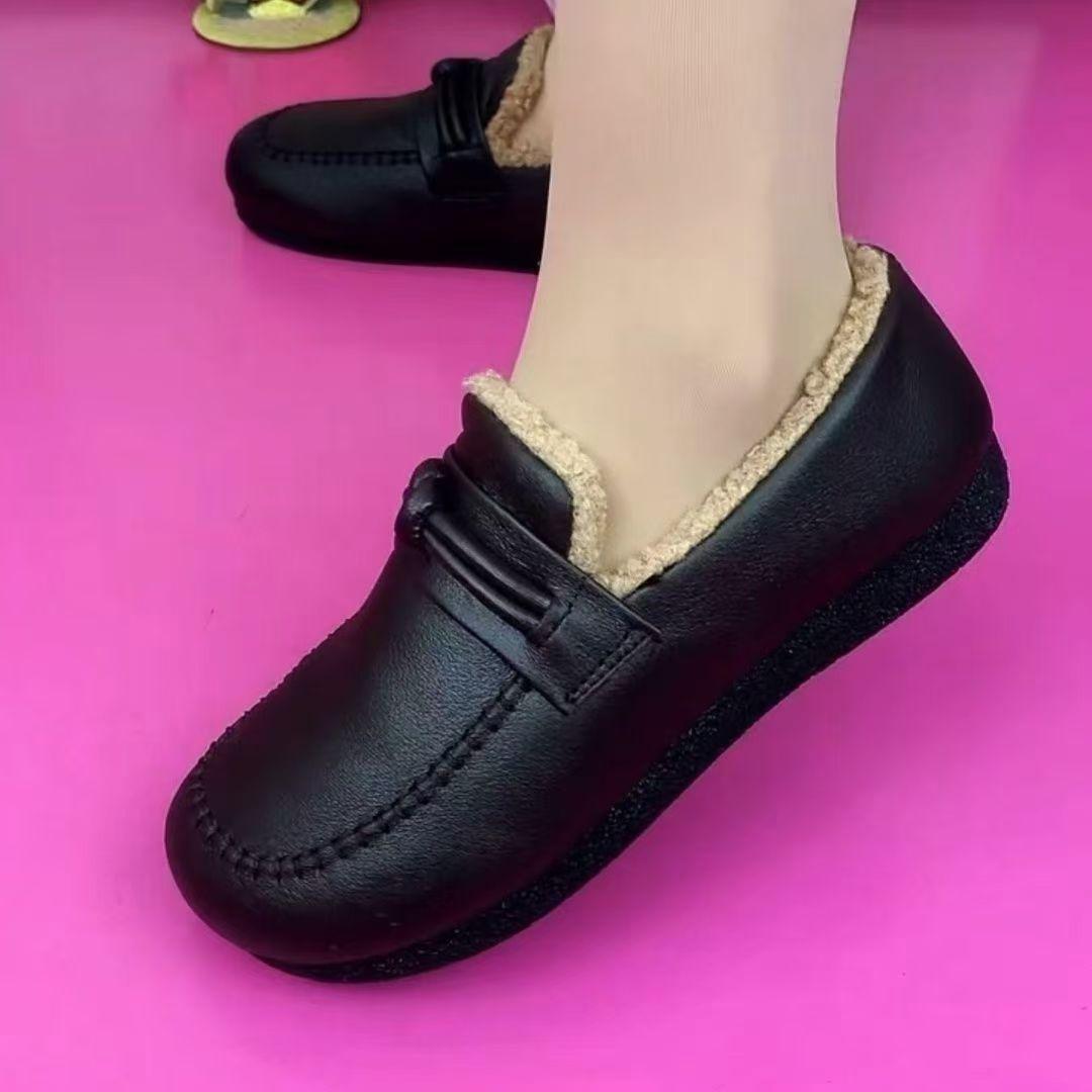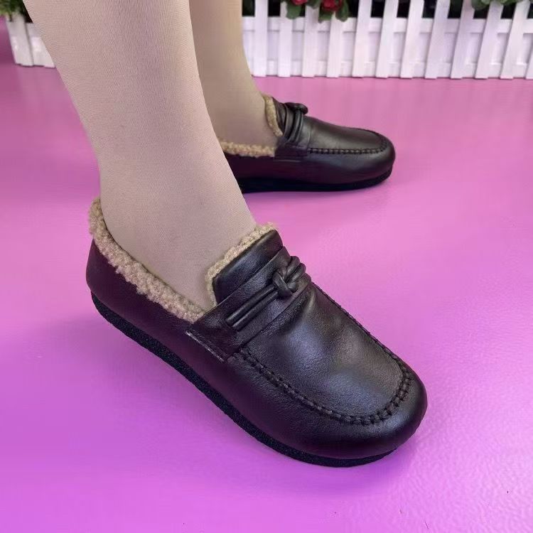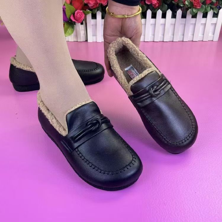 Zapatos Mao Mao de invierno 2024 con forro polar para mujer, nuevos zapatos de algodón sin cordones para mamá, zapatos tipo frijol, cálidos, forrados con polar grueso