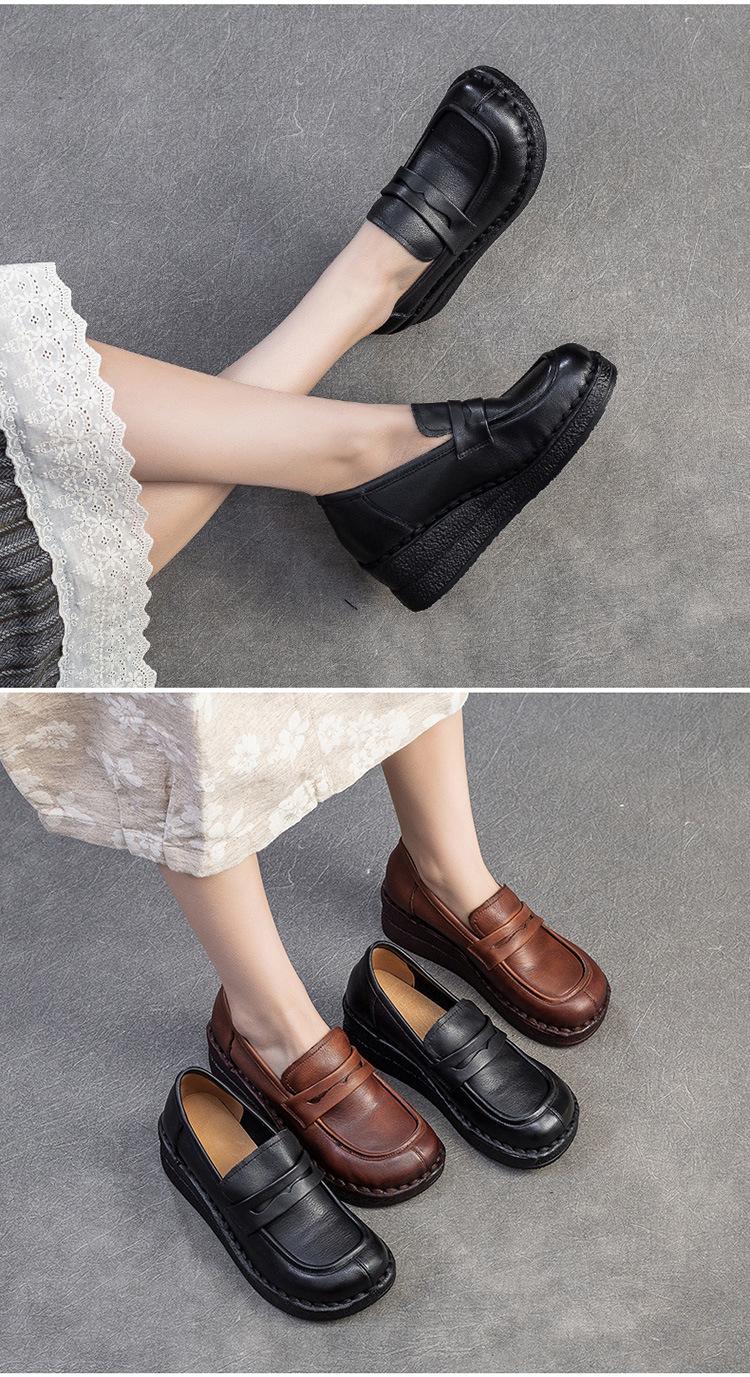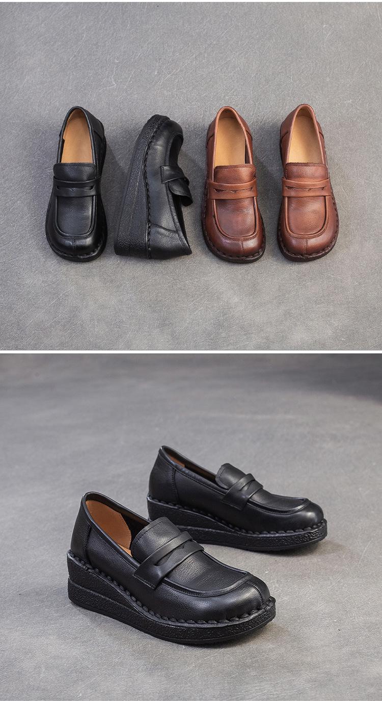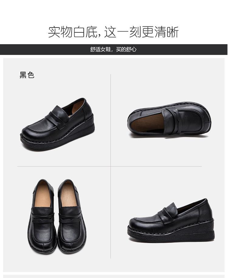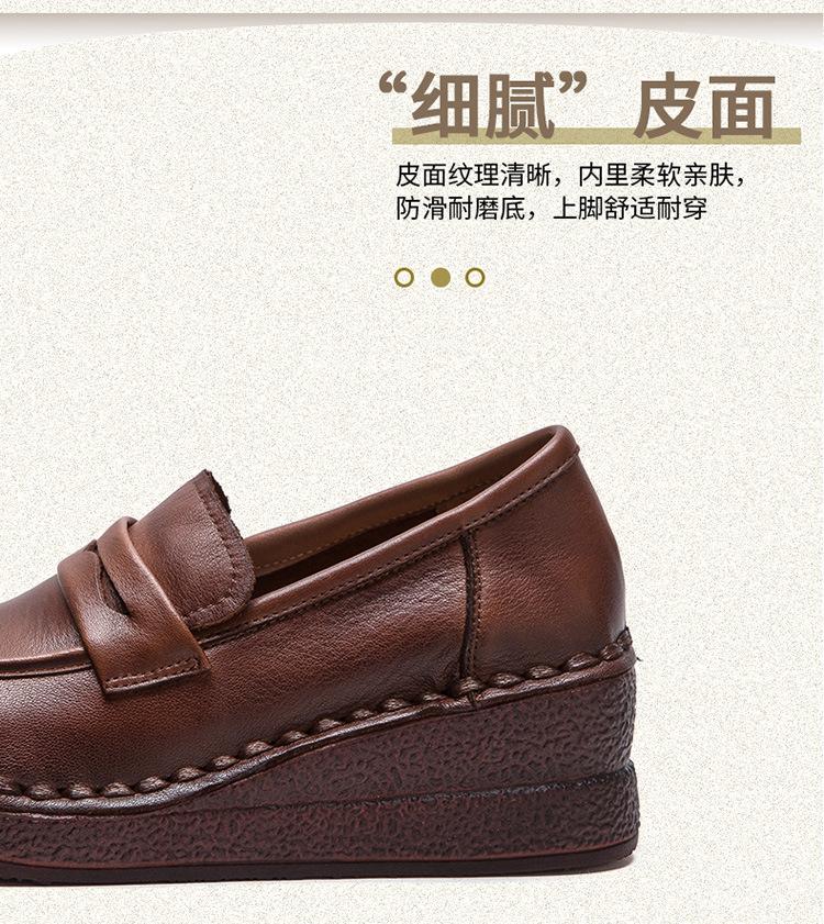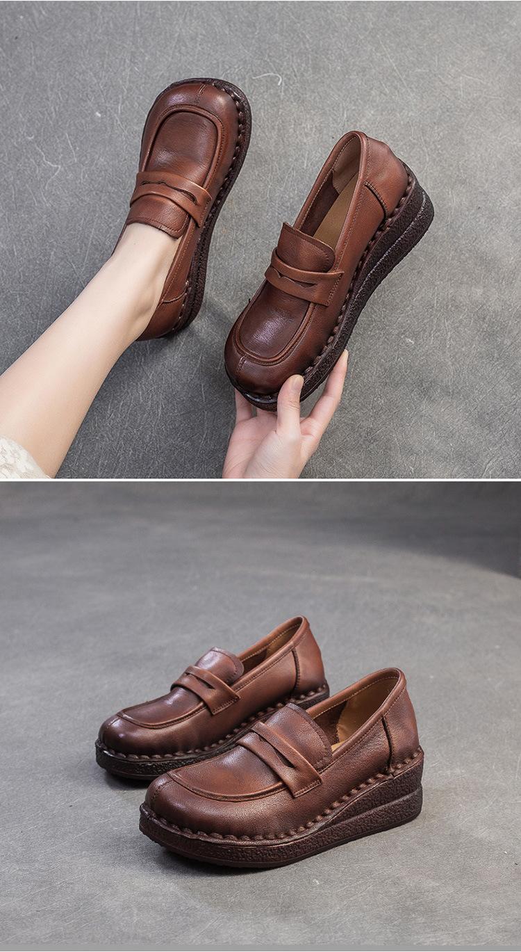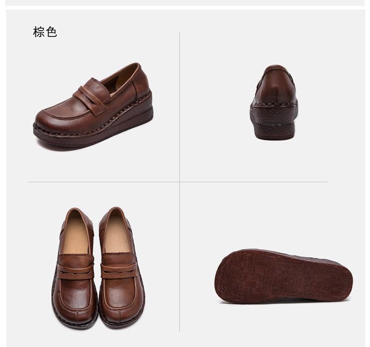 Shanghai Jiejie 2025 Primavera/Verano Nuevo Estilo Retro Cómodo Zapato Madre Capa Superior Zapatos de Cuña de Piel de Vaca Zapatos de Mujer de Viaje