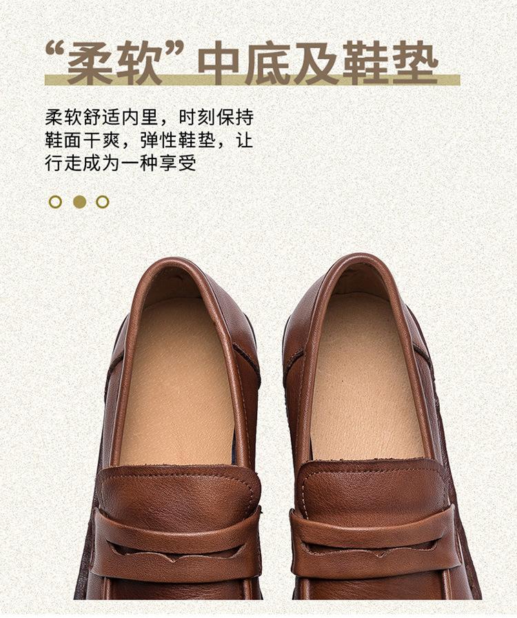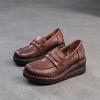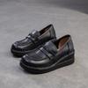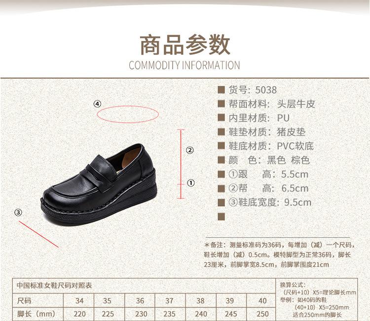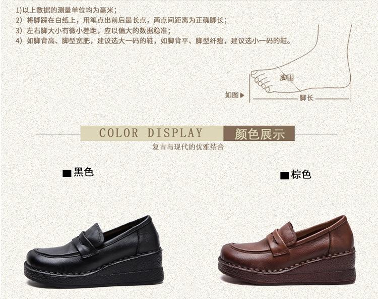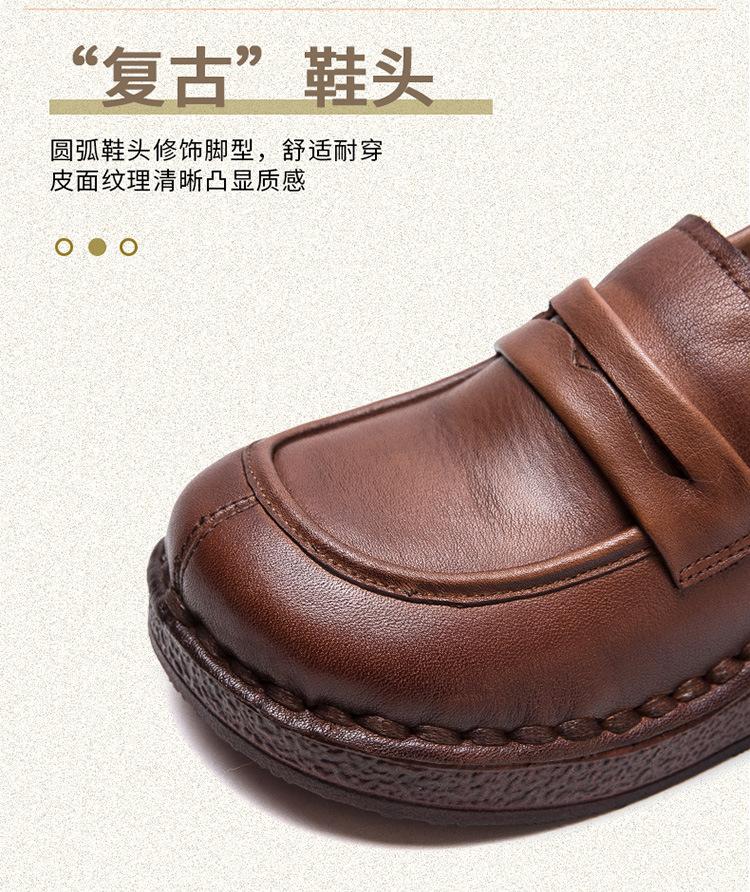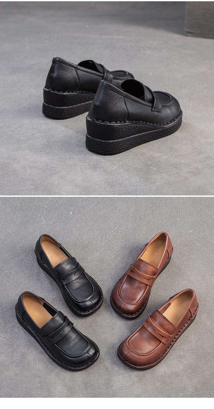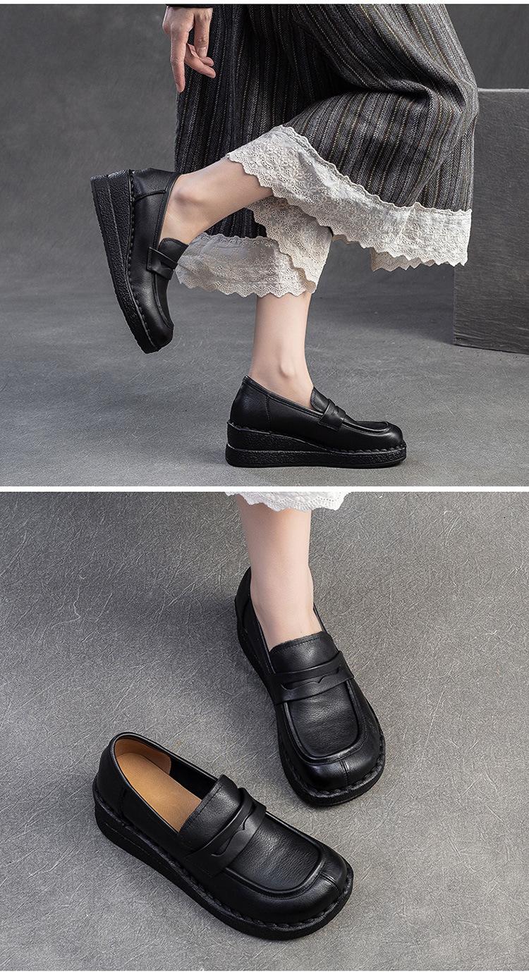 Shanghai Jiejie 2025 Primavera/Verano Nuevo Estilo Retro Cómodo Zapato Madre Capa Superior Zapatos de Cuña de Piel de Vaca Zapatos de Mujer de Viaje