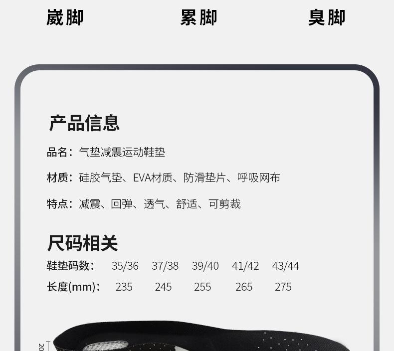Plantillas deportivas para hombres y mujeres, transpirables, absorbentes del sudor, desodorante, engrosadas, con amortiguación de aire, plantillas de silicona de fondo súper suave para baloncesto.
