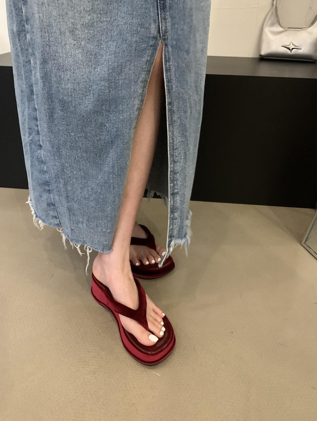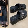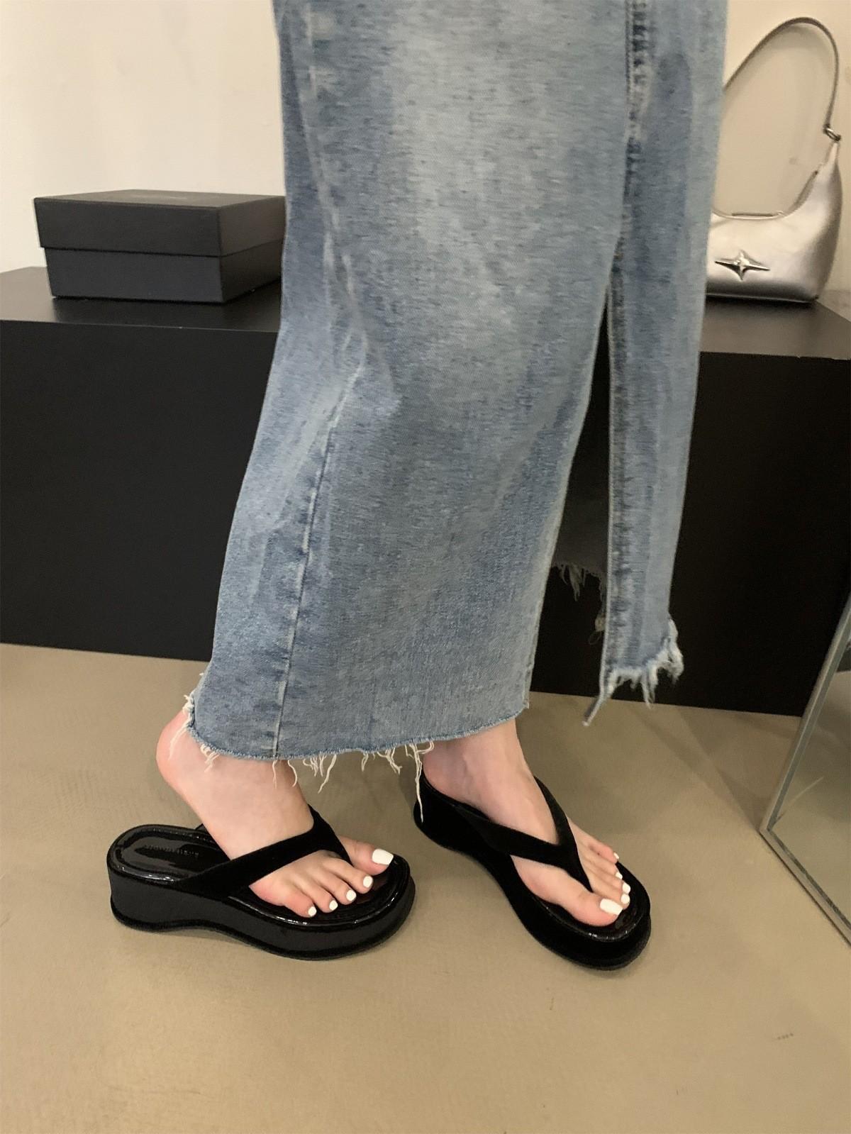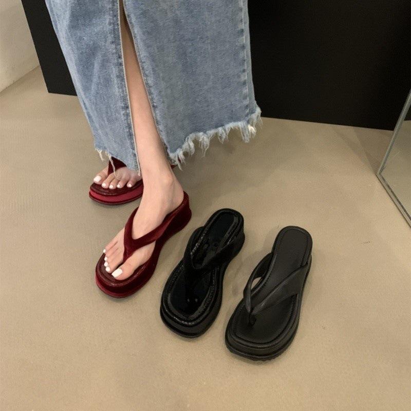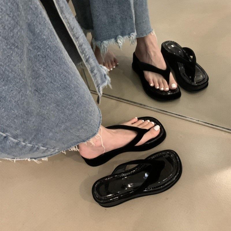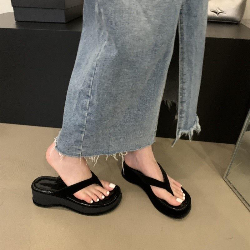 Chanclas de suela gruesa estilo francés para mujer, zapatillas de exterior, sandalias de cuña de moda de hadas de verano 2025