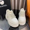 Zapatos blancos pequeños de suela gruesa para mujer, primavera 2025, nuevos zapatos casuales versátiles para mujer, zapatos de plataforma con suela gruesa y aumento de estilo coreano para mujer