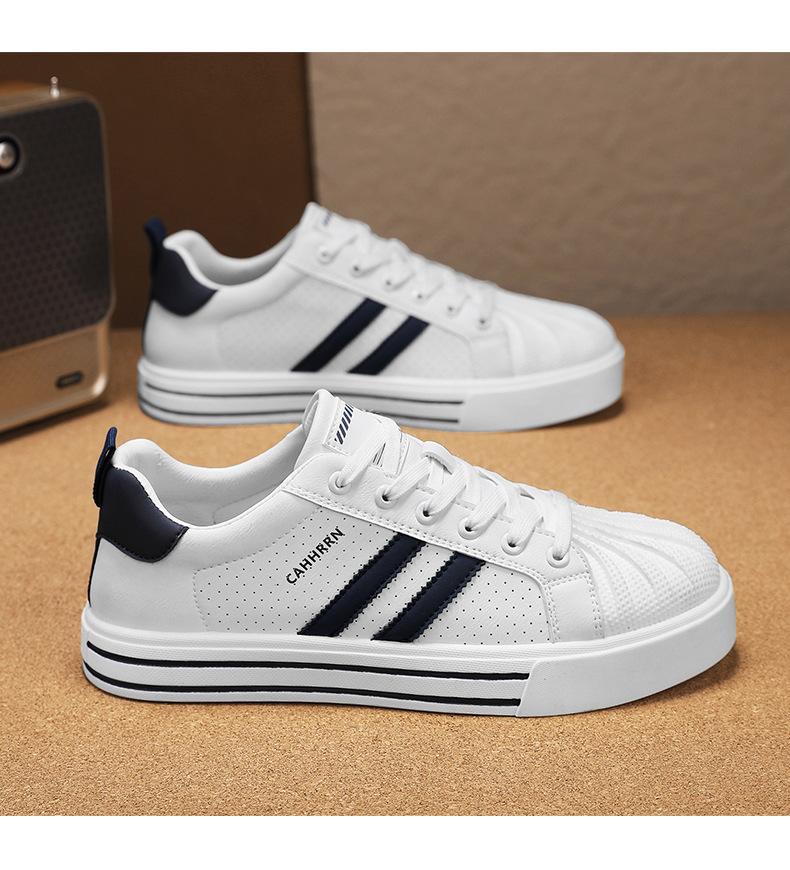 Zapatos blancos para hombre con cabeza de concha, para estudiantes y jóvenes, primavera 2025, zapatillas casuales que combinan con todo.