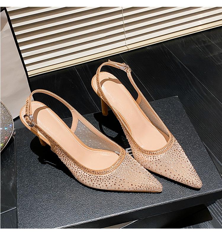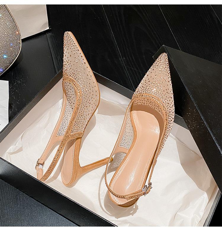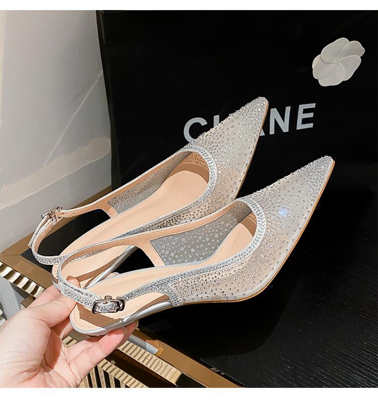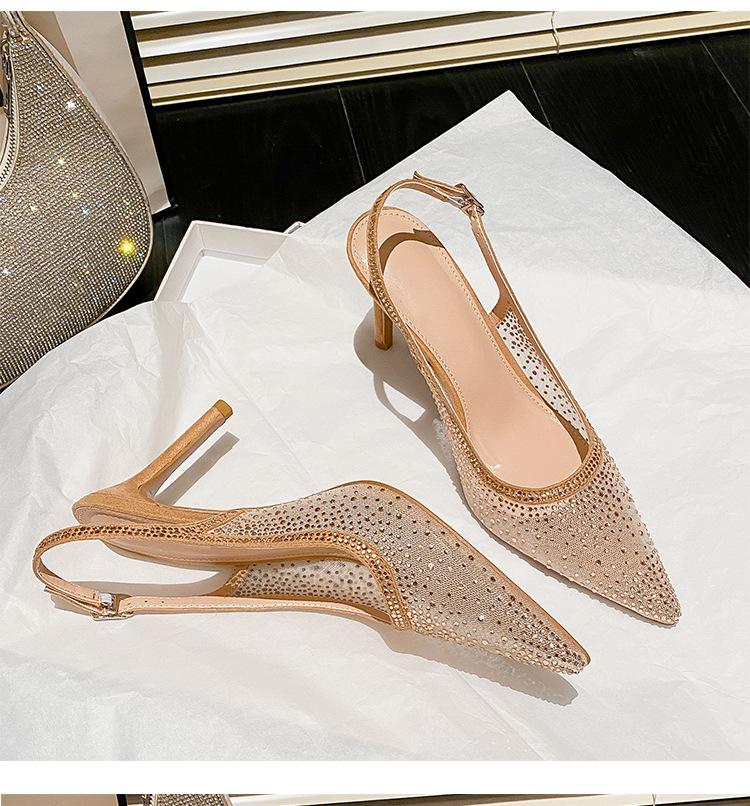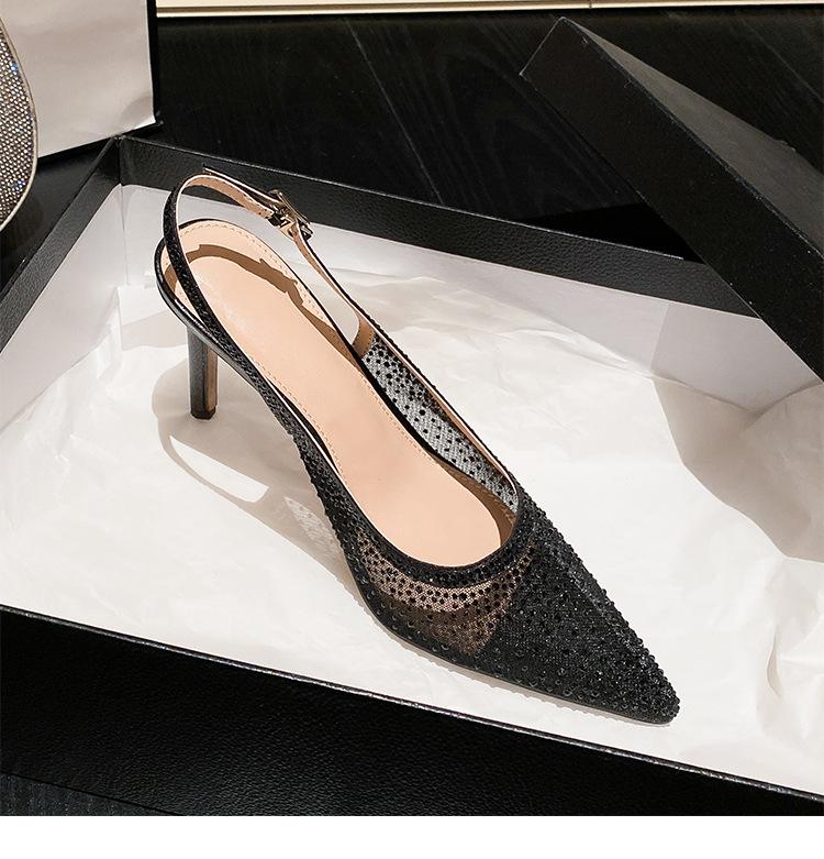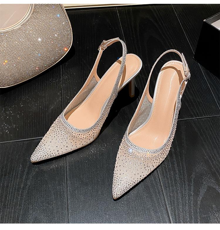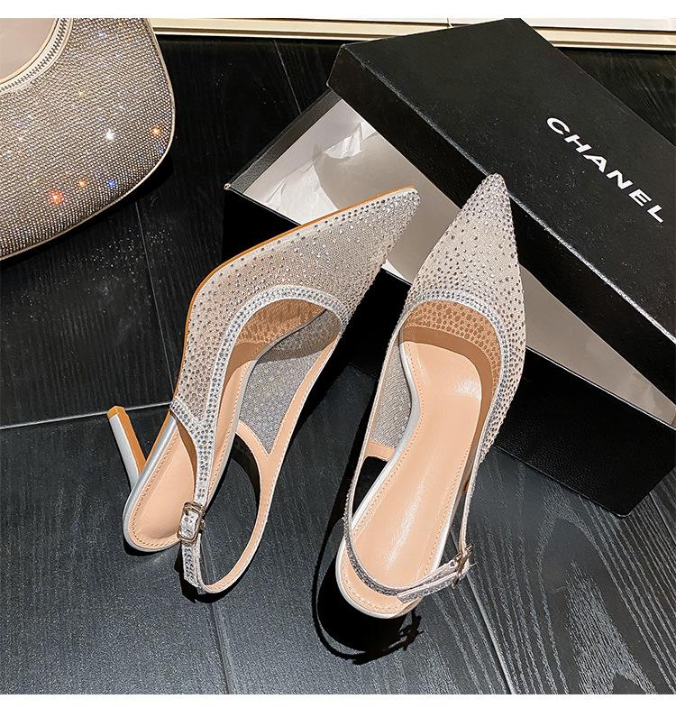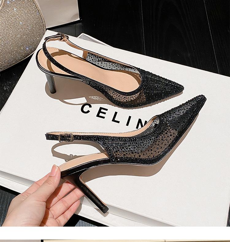 Sandalias de Estilete de Malla con Pedrería de Punta para Mujer 2025 Verano Nuevo Estilo Elegantes Zapatos Únicos de Tacón Alto Impresionantes Estilo Francés