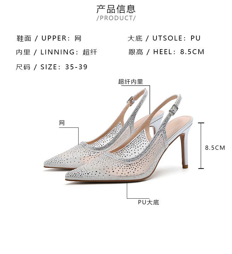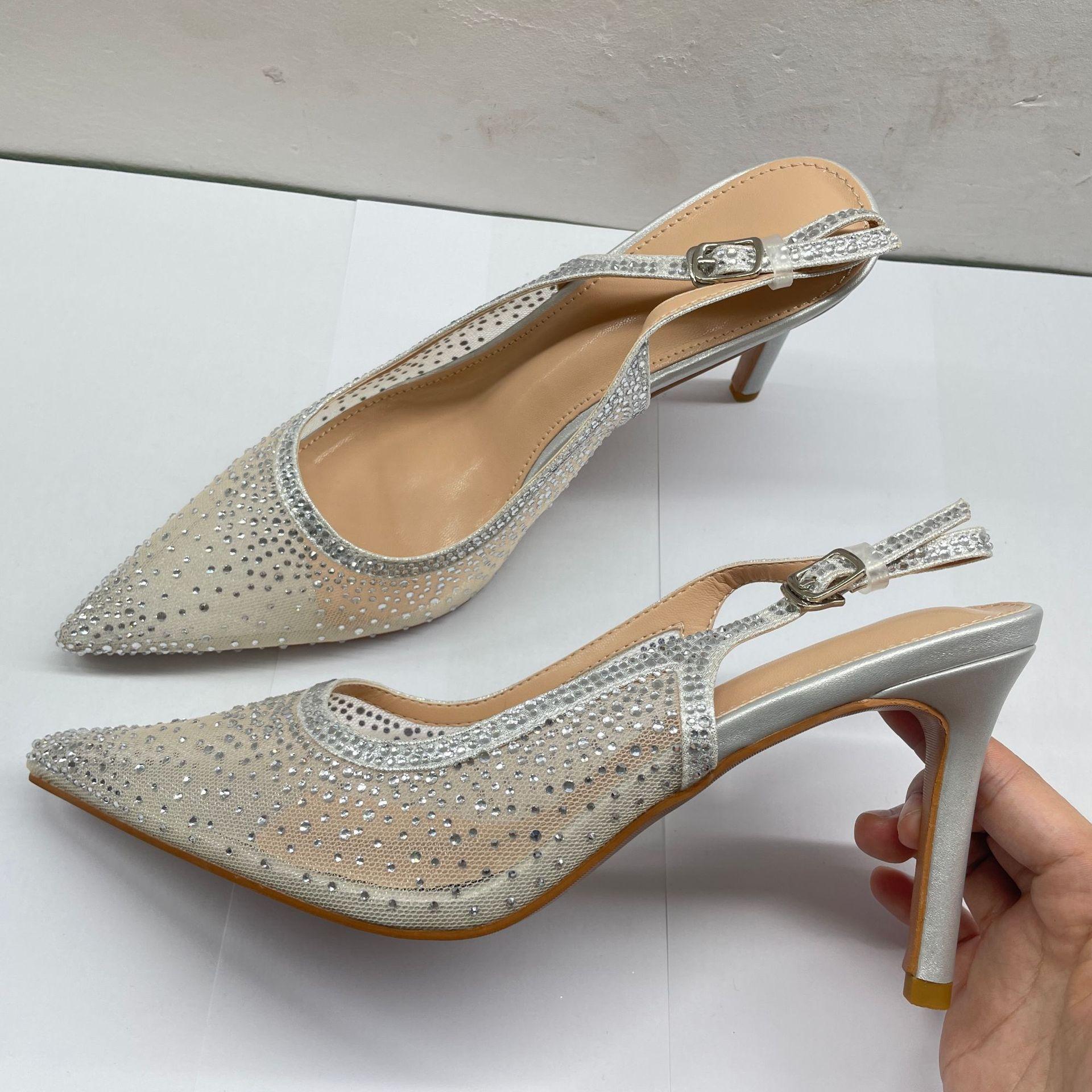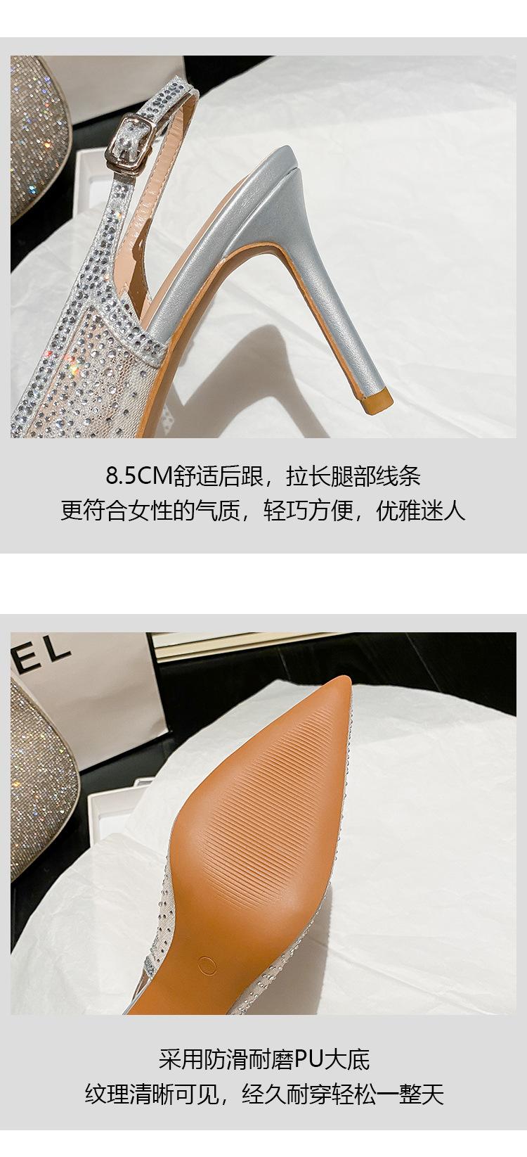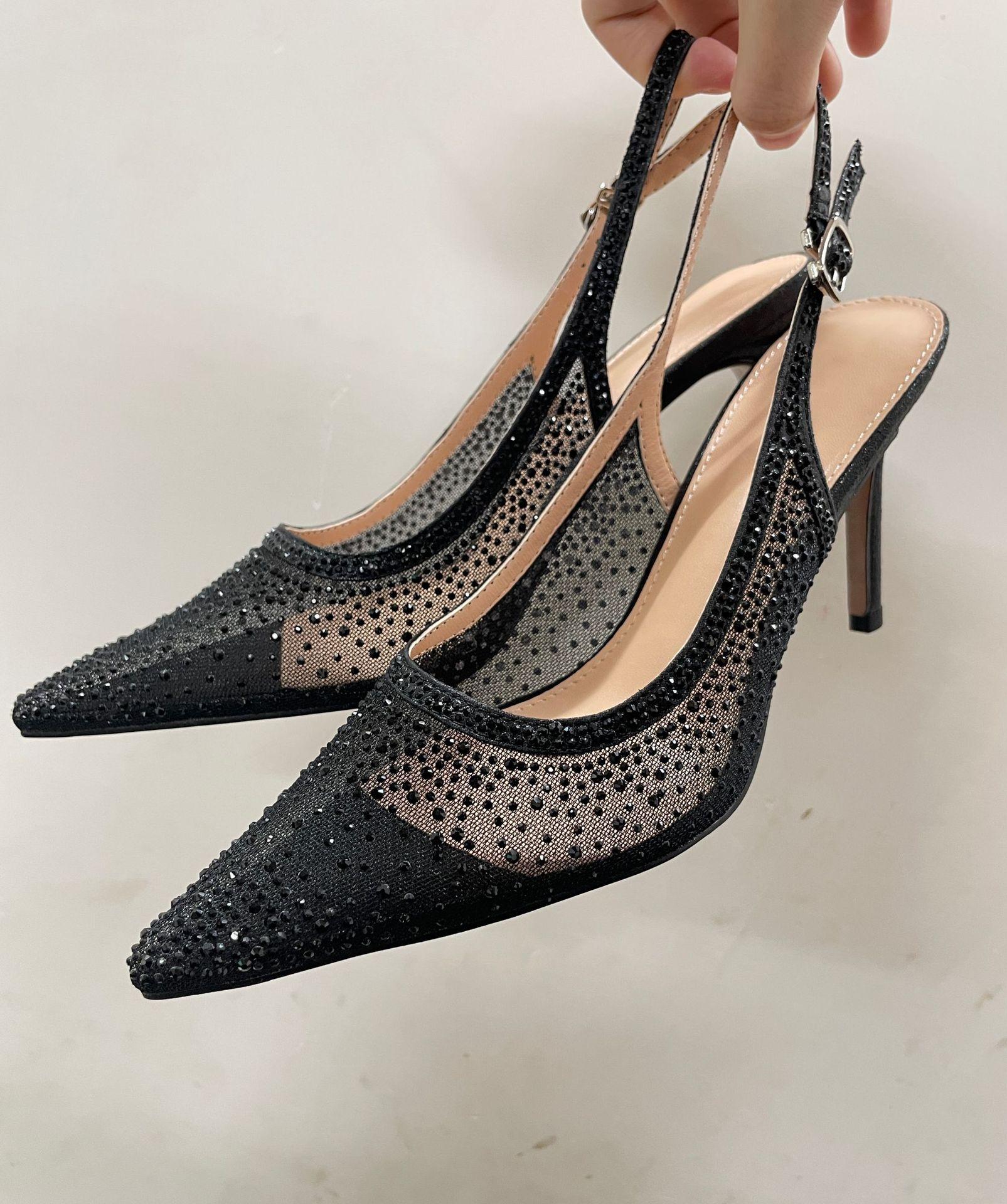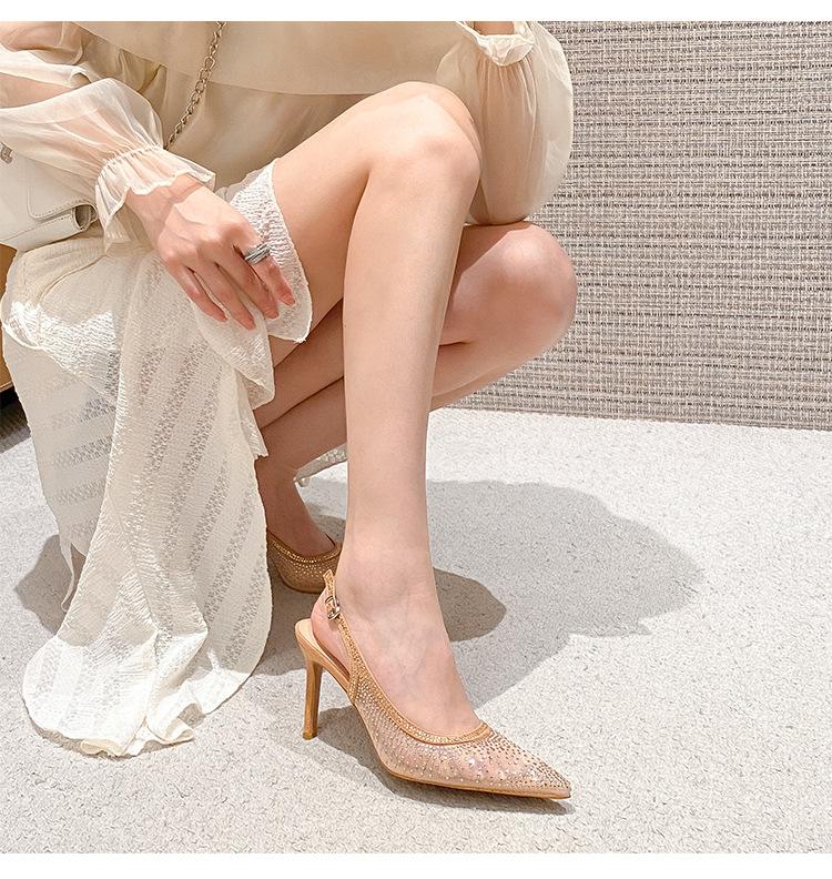 Sandalias de Estilete de Malla con Pedrería de Punta para Mujer 2025 Verano Nuevo Estilo Elegantes Zapatos Únicos de Tacón Alto Impresionantes Estilo Francés
