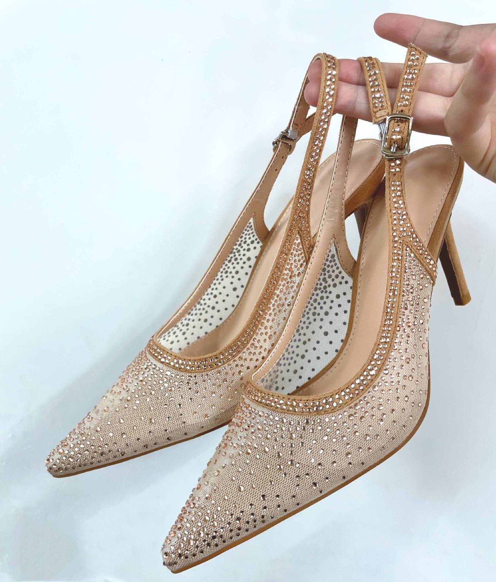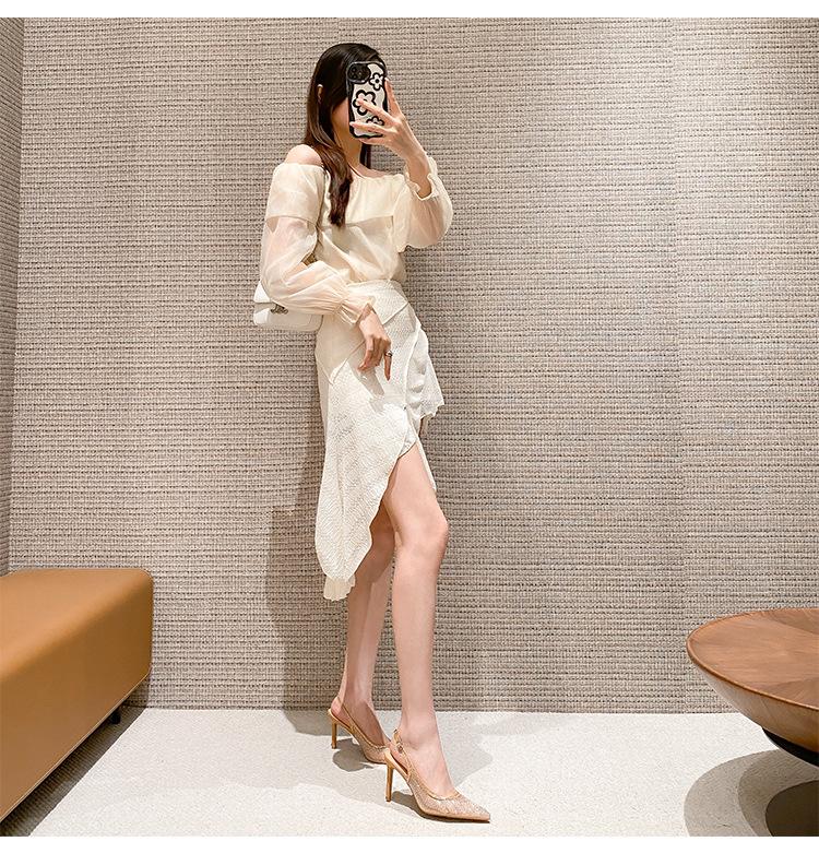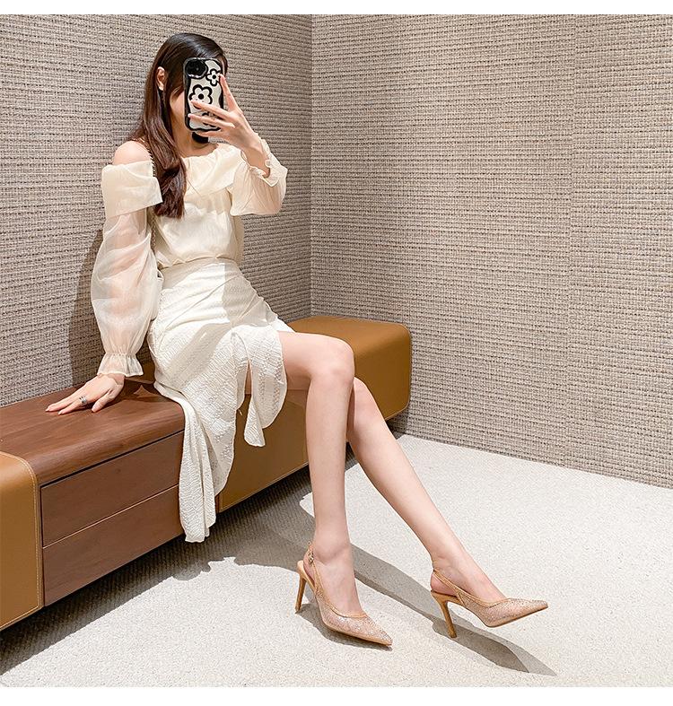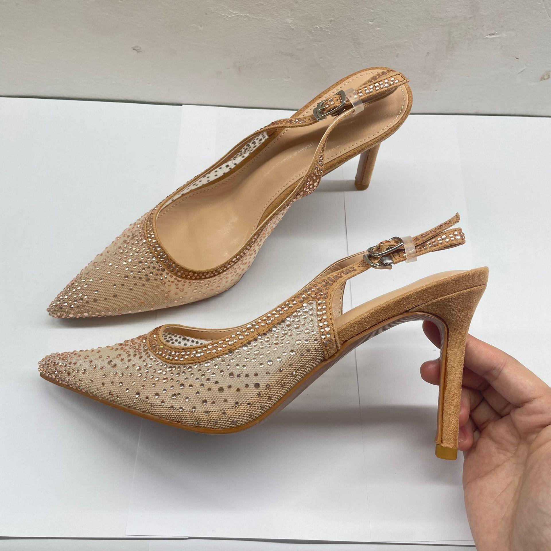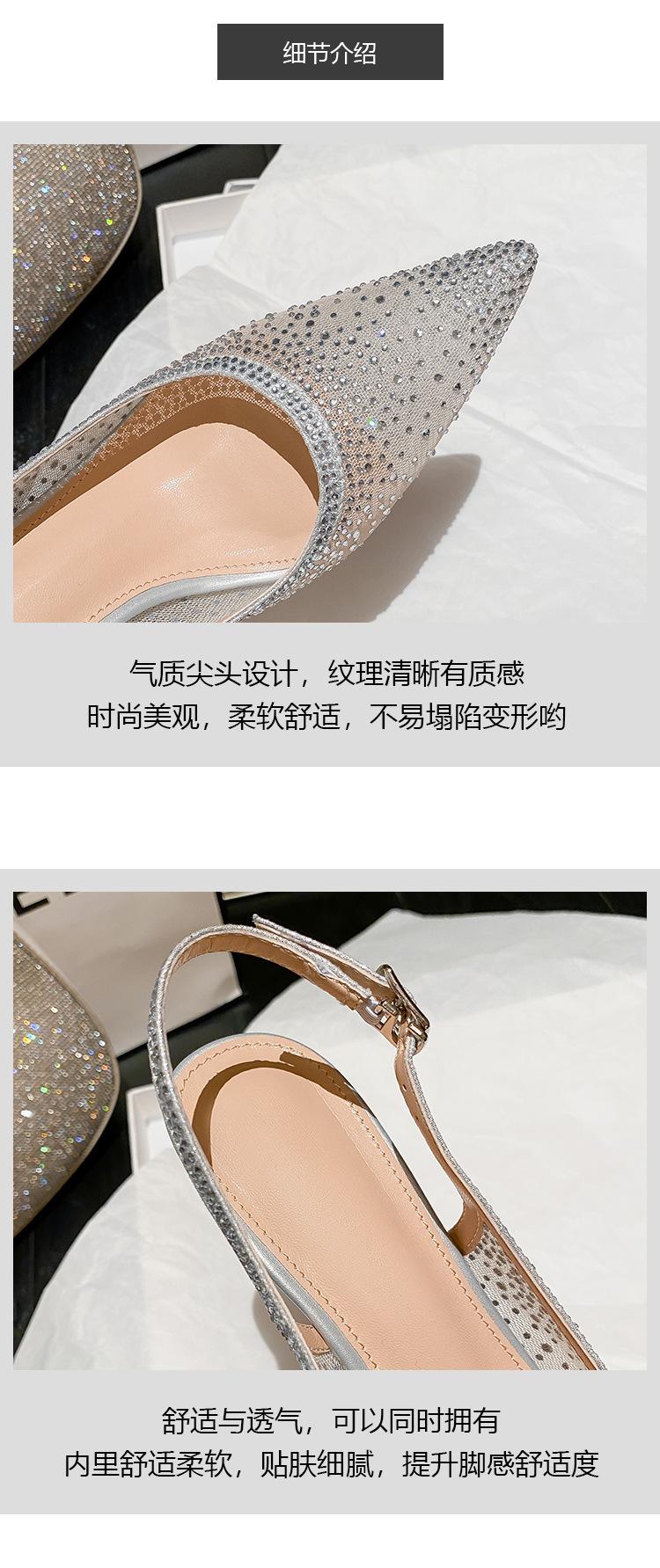 Sandalias de Estilete de Malla con Pedrería de Punta para Mujer 2025 Verano Nuevo Estilo Elegantes Zapatos Únicos de Tacón Alto Impresionantes Estilo Francés