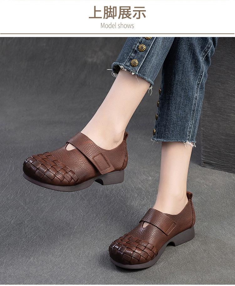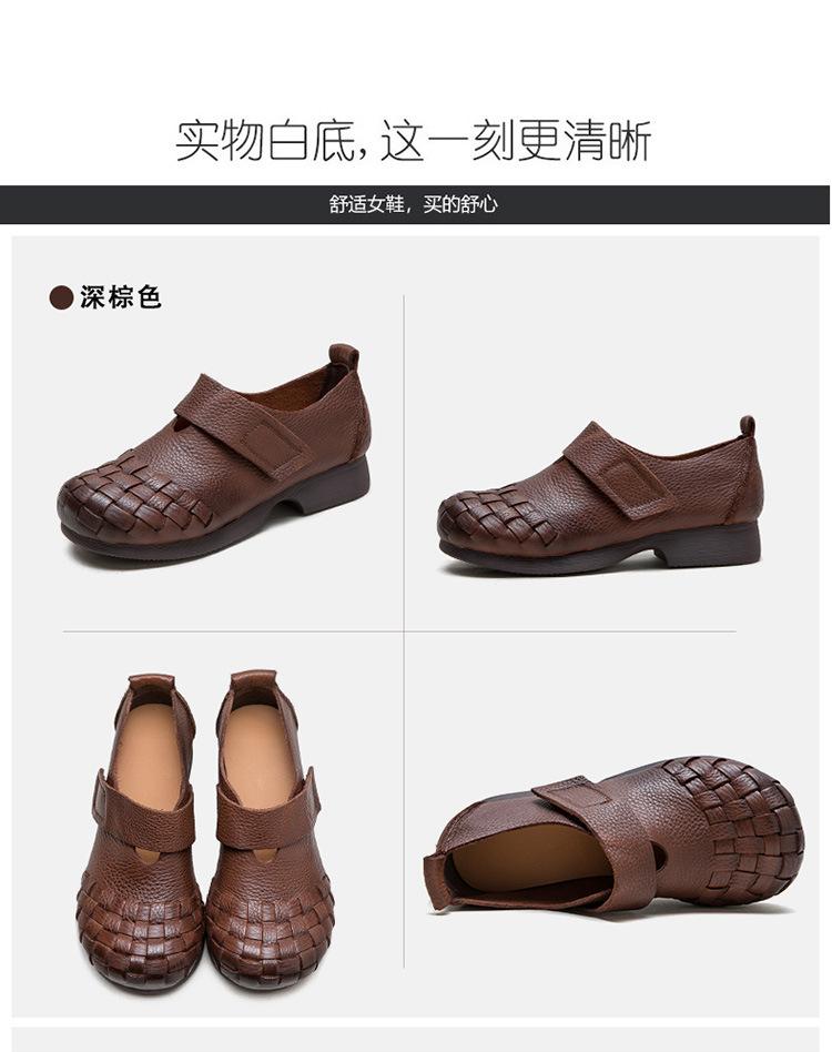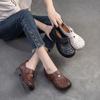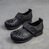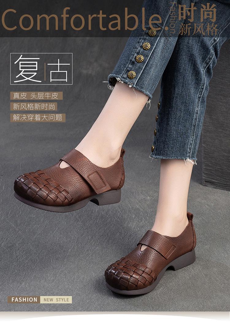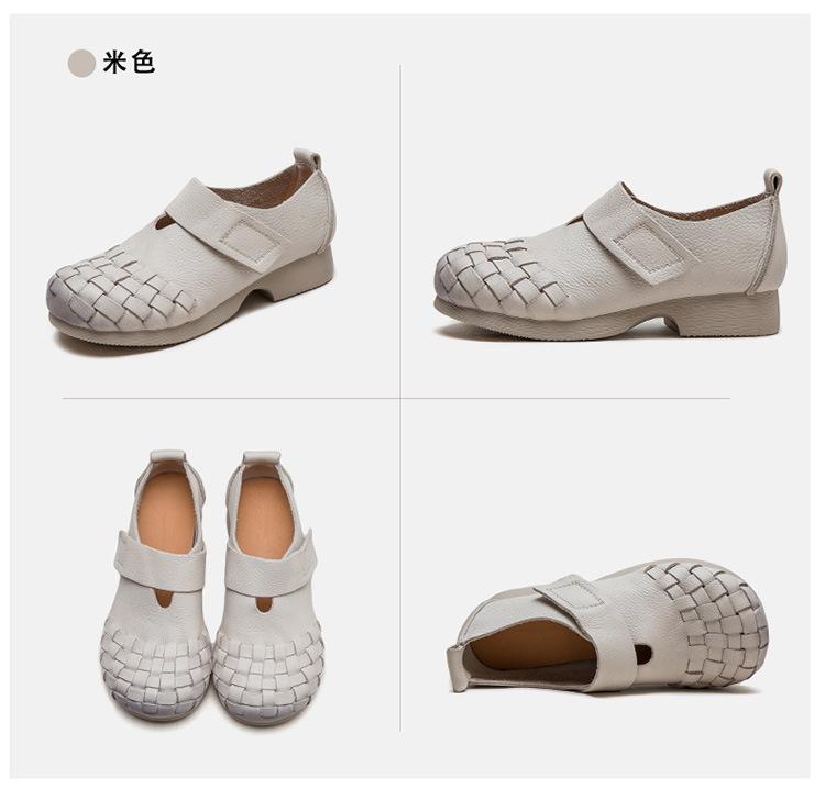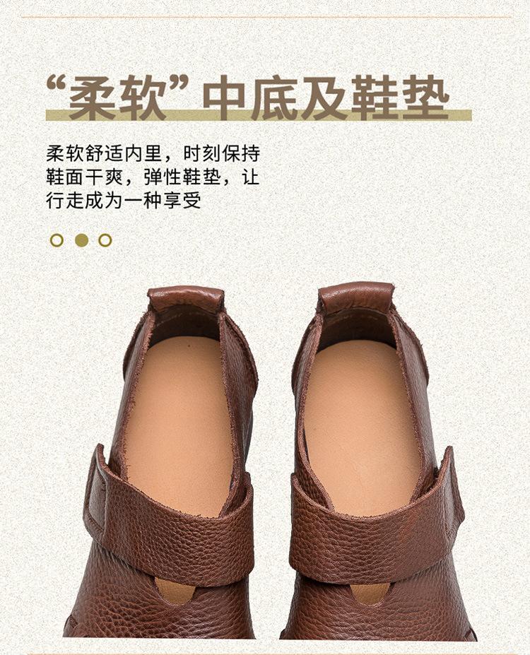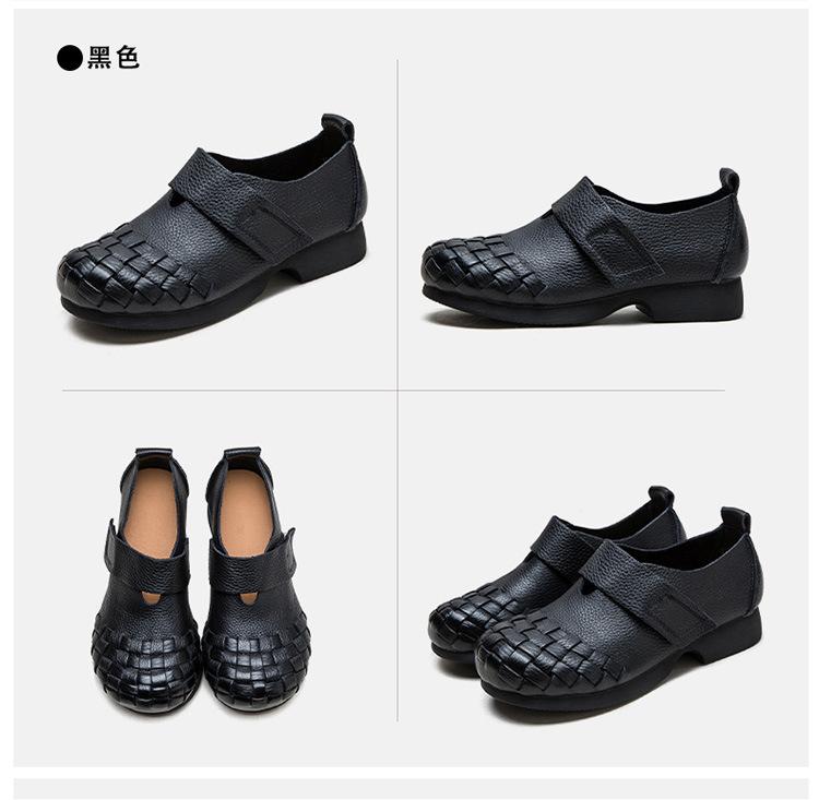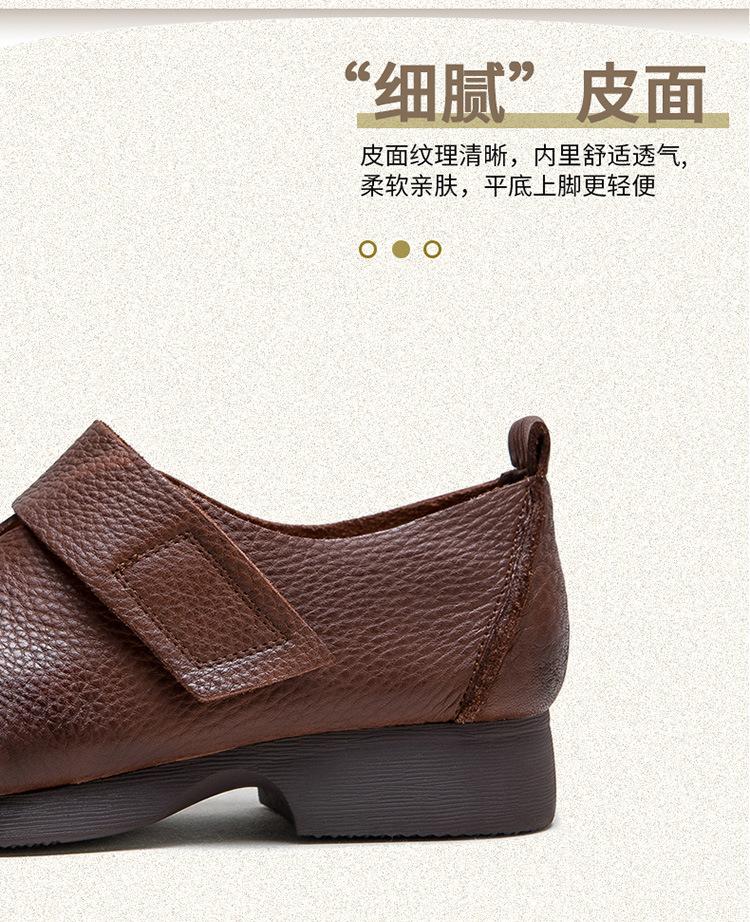 Zapatos de mujer de piel de vaca de una sola capa con velcro, planos, de color sólido, estilo retro, Shanghai Jiejie, otoño 2024