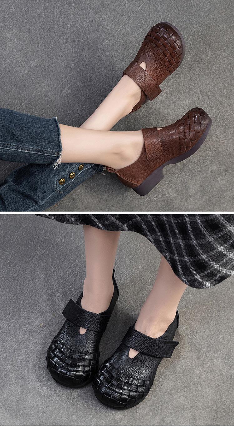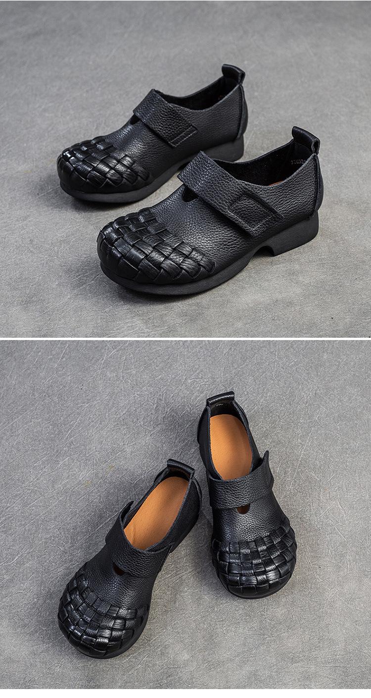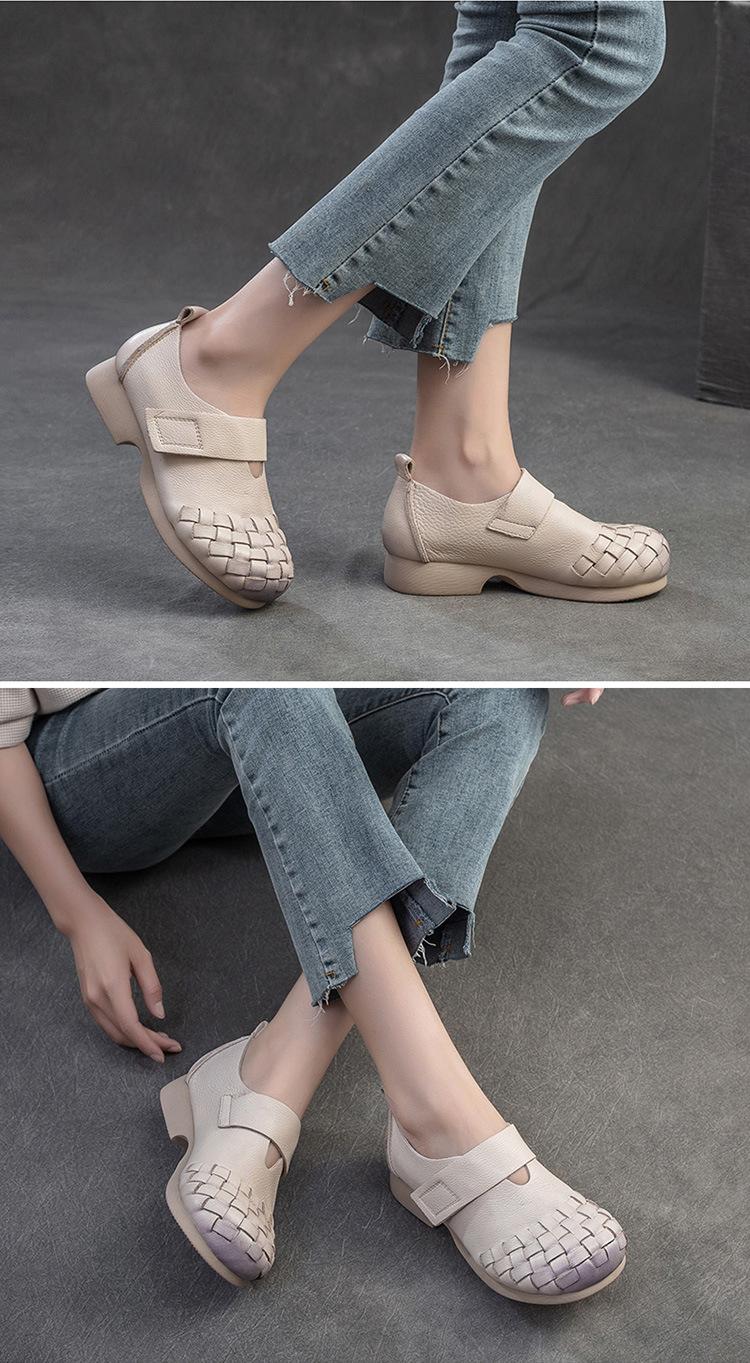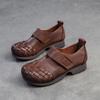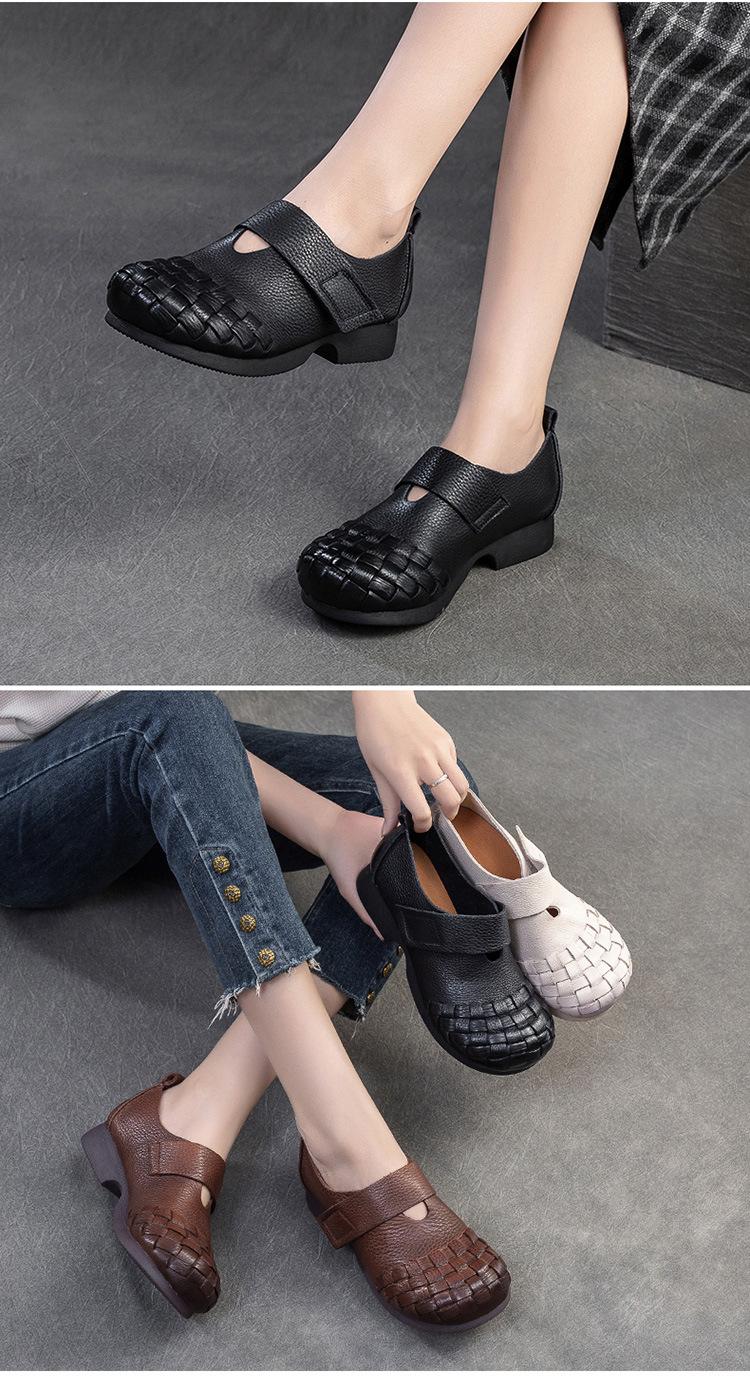 Zapatos de mujer de piel de vaca de una sola capa con velcro, planos, de color sólido, estilo retro, Shanghai Jiejie, otoño 2024