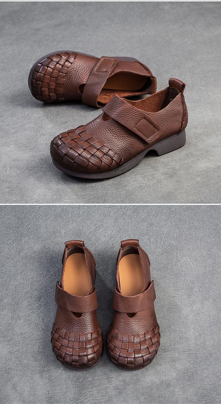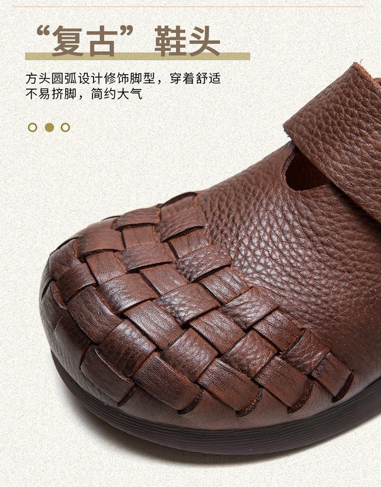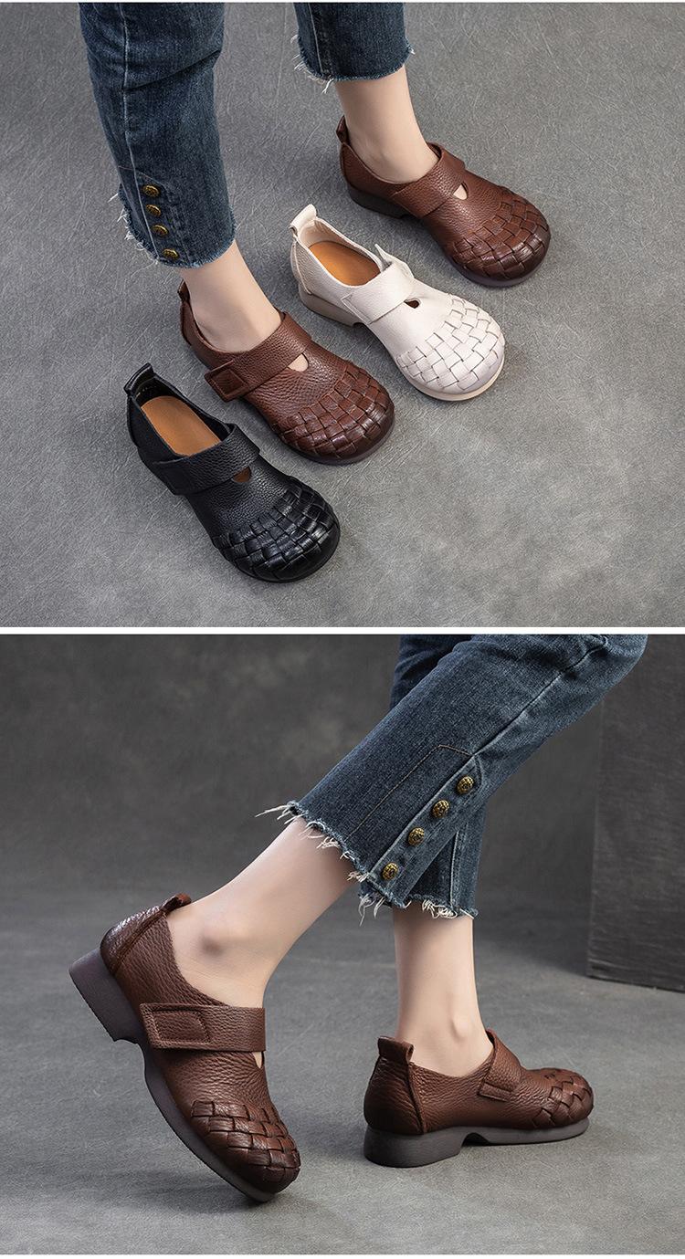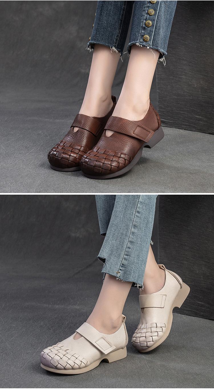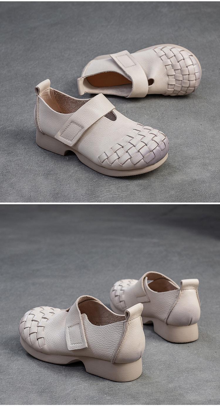 Zapatos de mujer de piel de vaca de una sola capa con velcro, planos, de color sólido, estilo retro, Shanghai Jiejie, otoño 2024