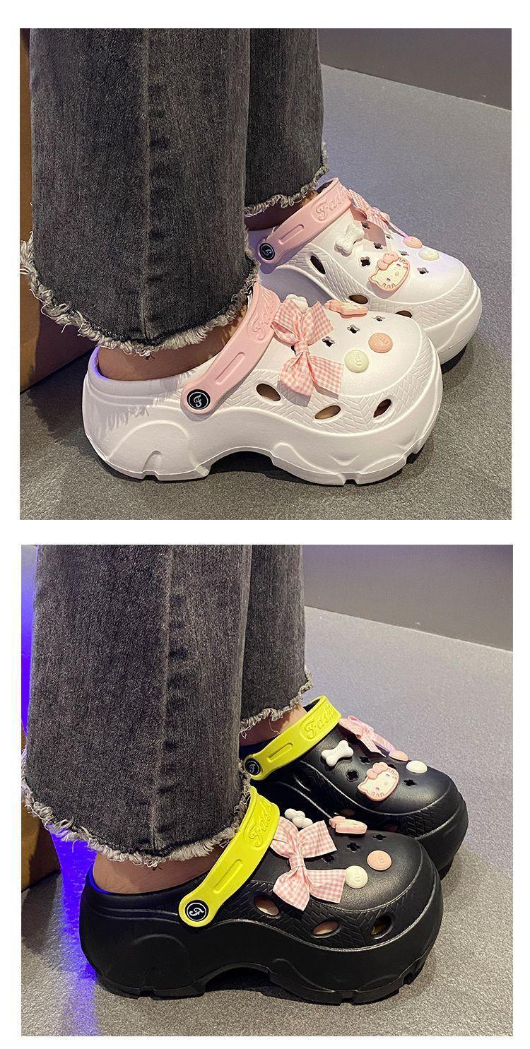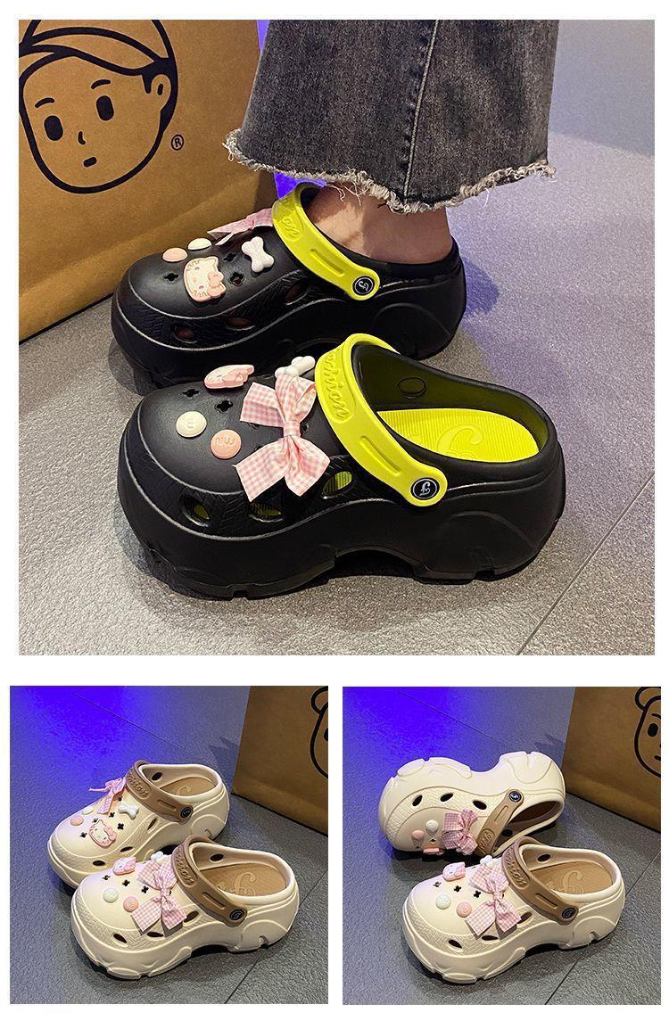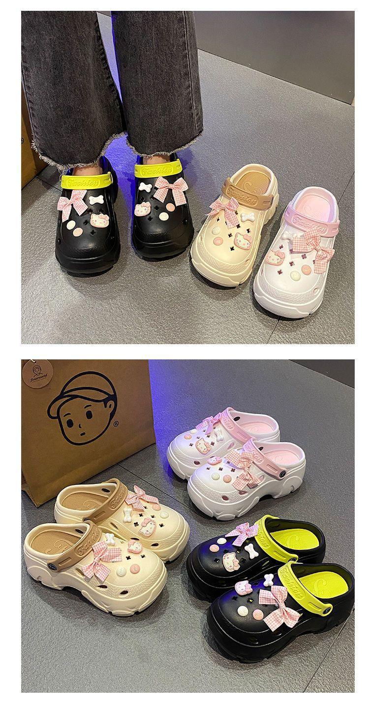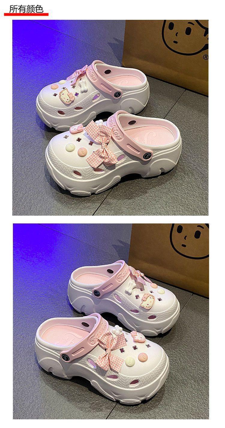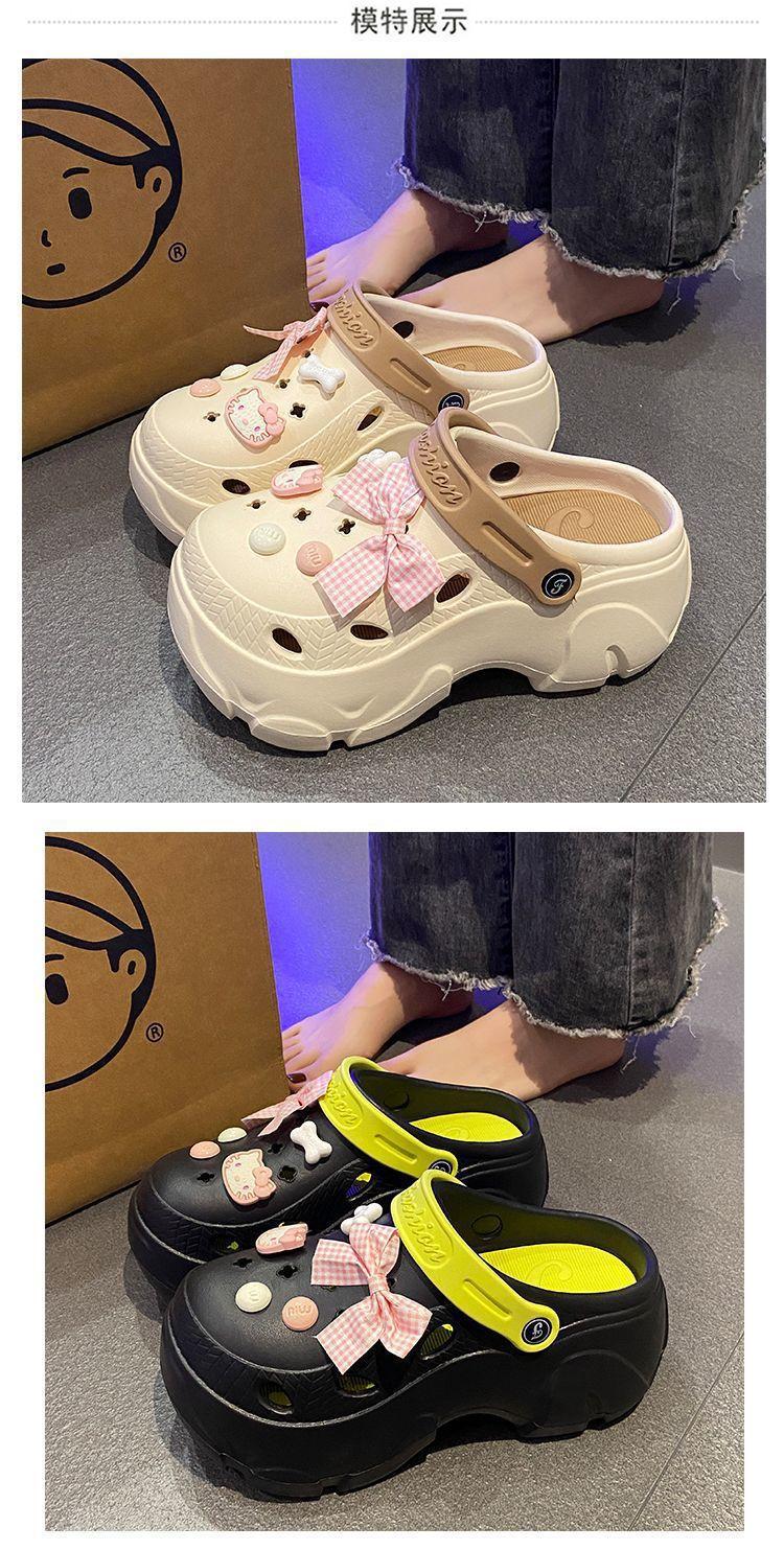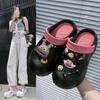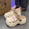 Sandalias de suela gruesa con agujeros para mujer, bonitas zapatillas de exterior con dibujos animados de Dung Sense, estilo Baotou de verano 2025 para mujer