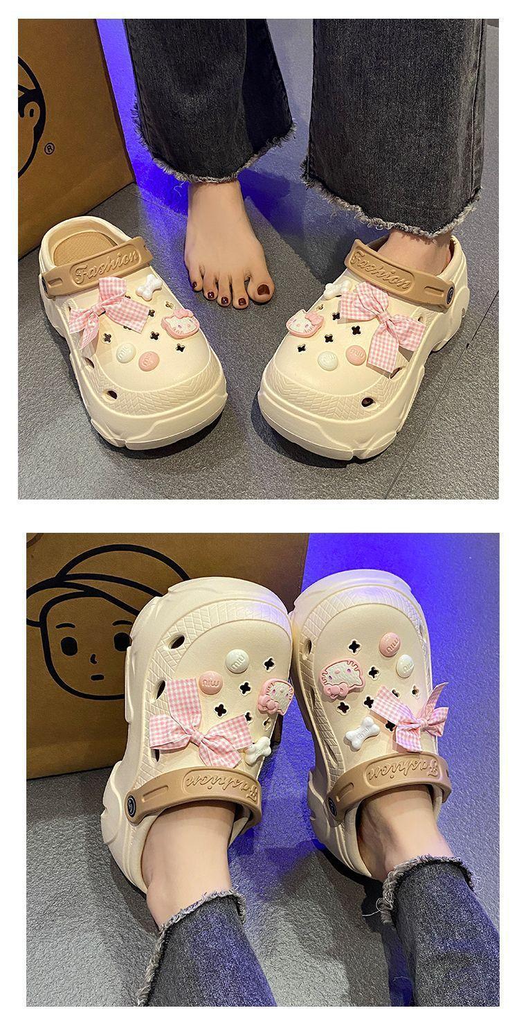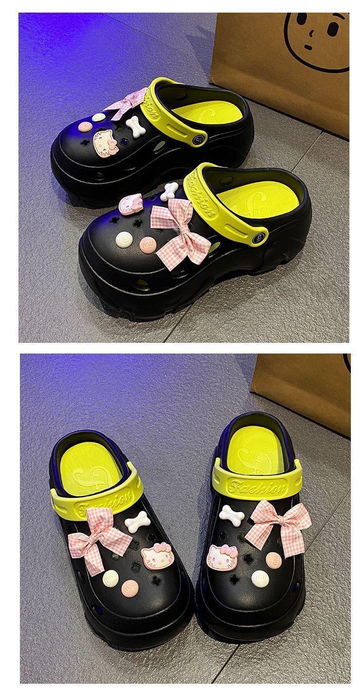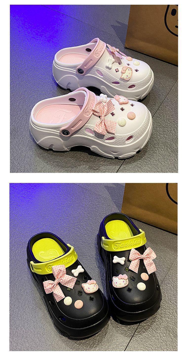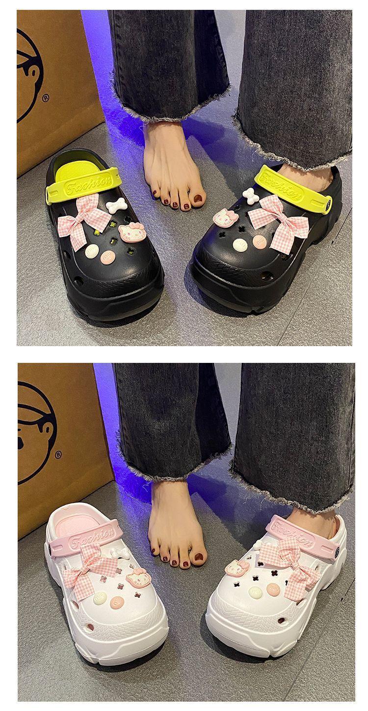 Sandalias de suela gruesa con agujeros para mujer, bonitas zapatillas de exterior con dibujos animados de Dung Sense, estilo Baotou de verano 2025 para mujer