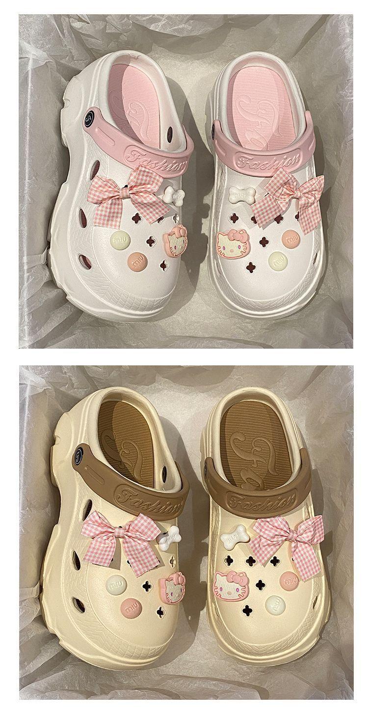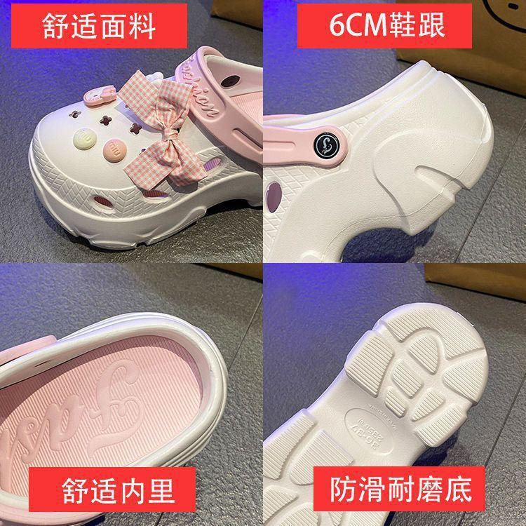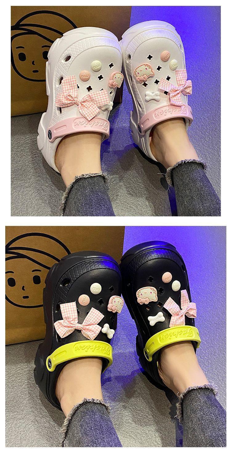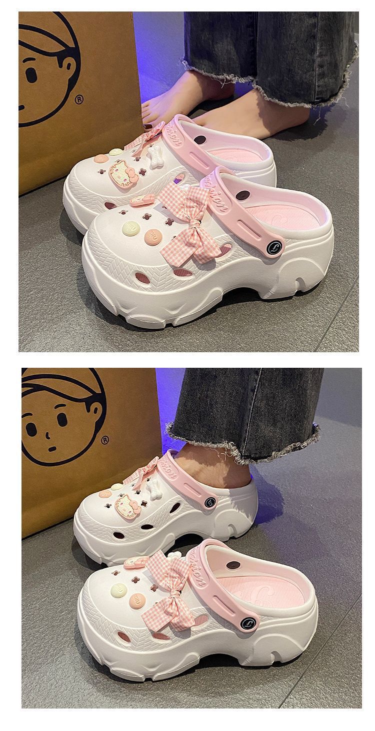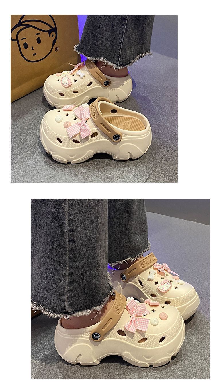 Sandalias de suela gruesa con agujeros para mujer, bonitas zapatillas de exterior con dibujos animados de Dung Sense, estilo Baotou de verano 2025 para mujer