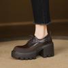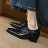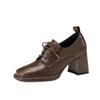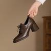 Zapatos vintage con cordones y boca profunda para mujer, estilo británico, 2025. Nuevo estilo: zapatos de cuero con tacón alto y punta cuadrada, estilo francés y tacón grueso.