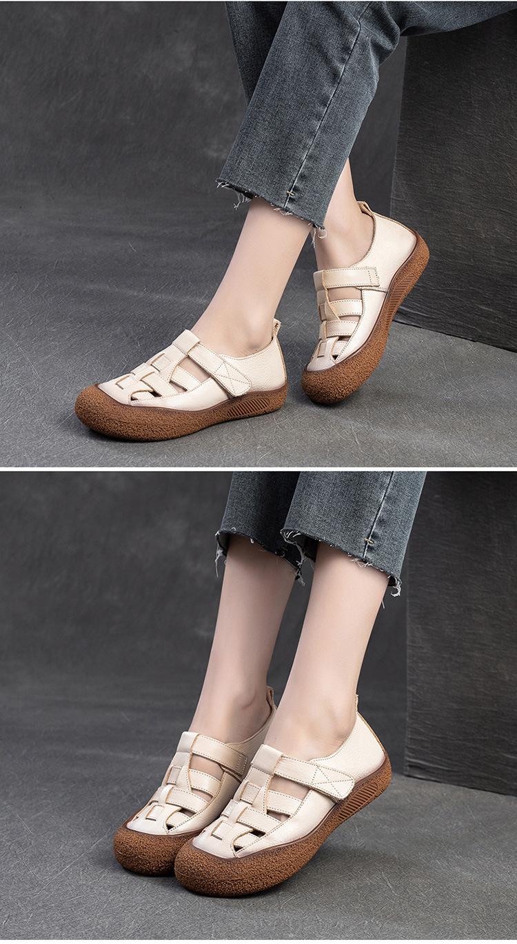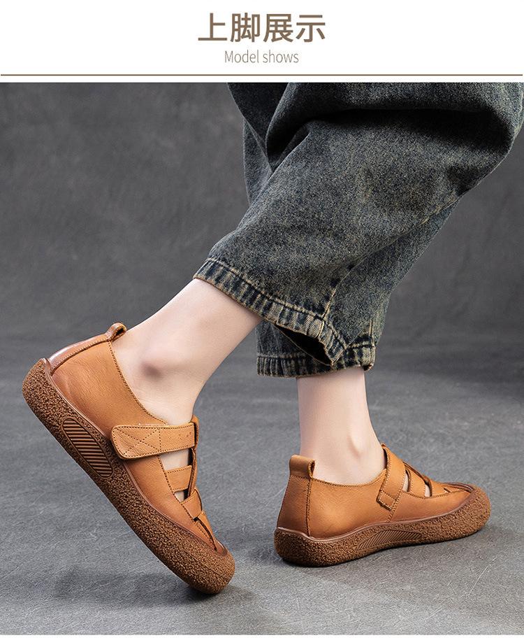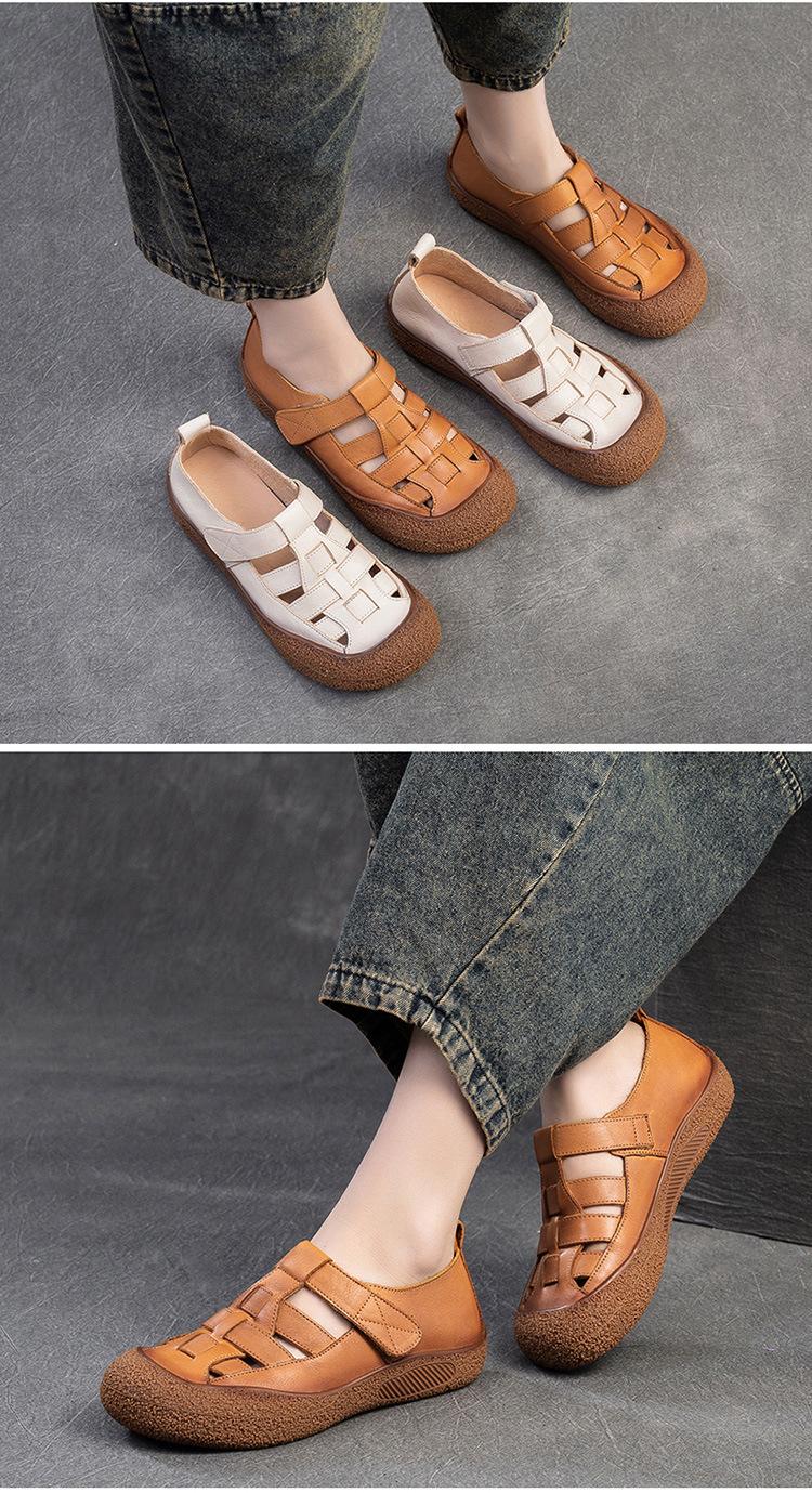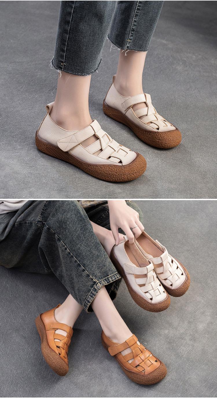 Shanghai Jietu 2024 Verano Nuevo Vintage Hueco Transpirable Zapatos con Agujeros Sandalias Simples Cómodas Casuales Modernos Zapatos de Mujer