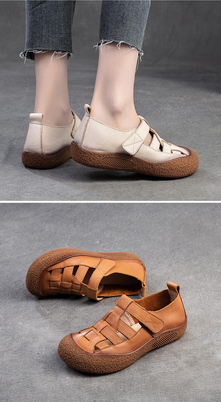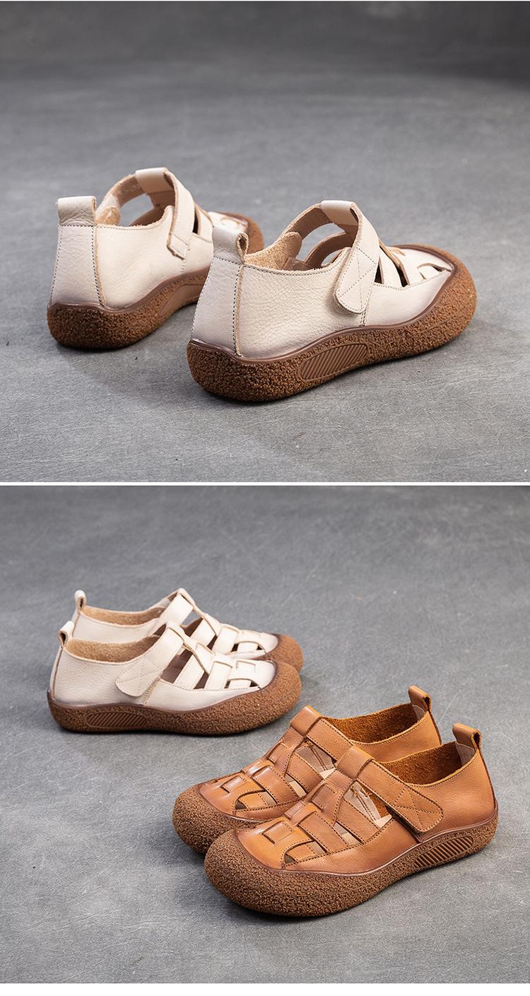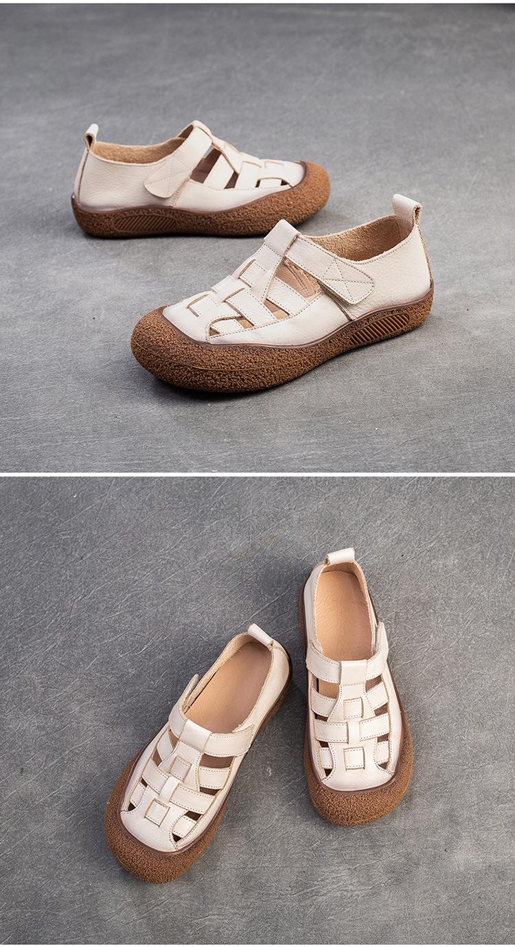 Shanghai Jietu 2024 Verano Nuevo Vintage Hueco Transpirable Zapatos con Agujeros Sandalias Simples Cómodas Casuales Modernos Zapatos de Mujer