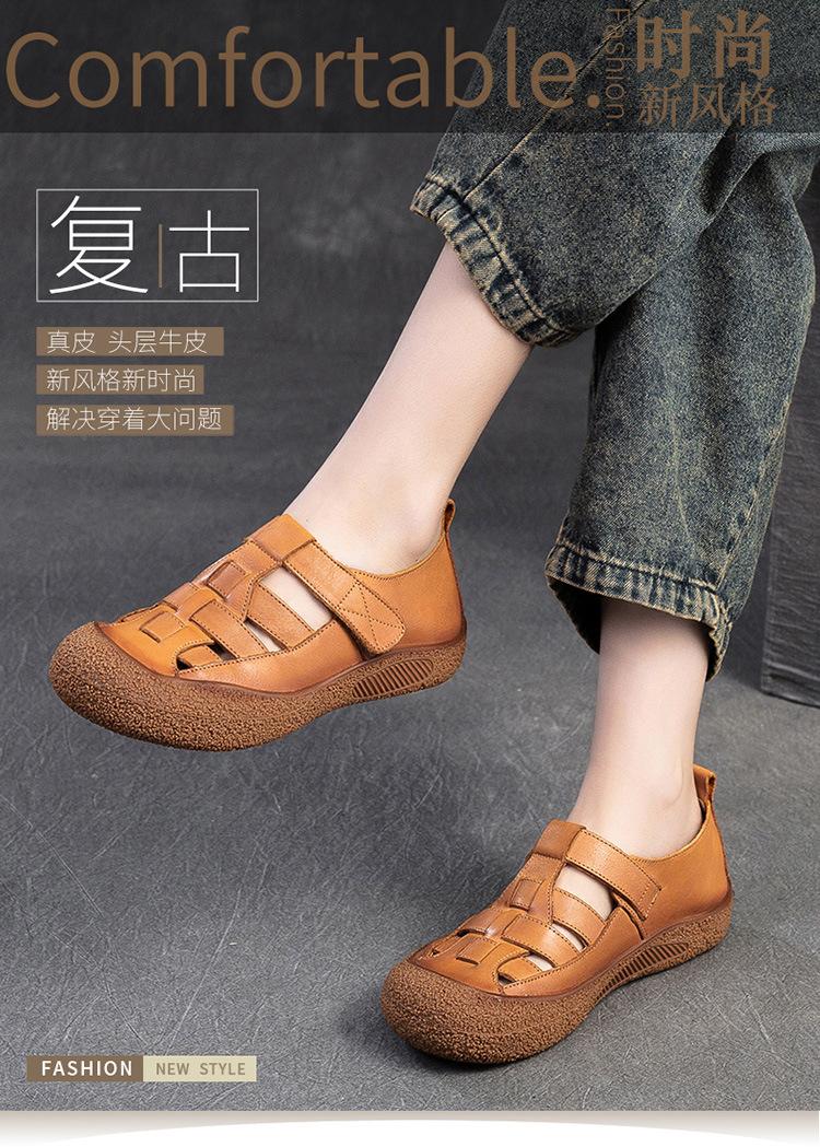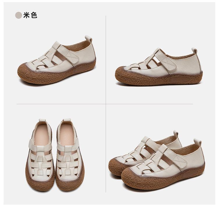Shanghai Jiechu 2024 verano nuevo retro hueco transpirable zapatos de agujeros sandalias simple cómodo casual moderno zapatos de mujer