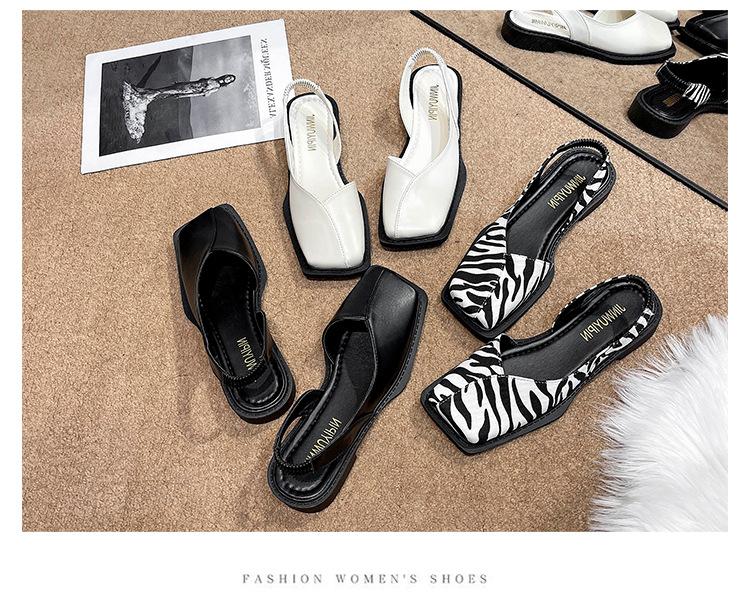 Sandalias Baotou para Mujer Verano 2022 Nuevo Punta Cuadrada Fondo Plano Diseño Vacío Zapatos Nicho Zapatos de Moda para Mujer