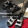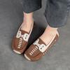 Meeigeec.Q Zapatos de Moda Mueller de Piel Vacuna con Puntera Redonda para Mujer Primavera 2025 Nuevos Zapatos de Cuero Perezosos Boken para Mujer