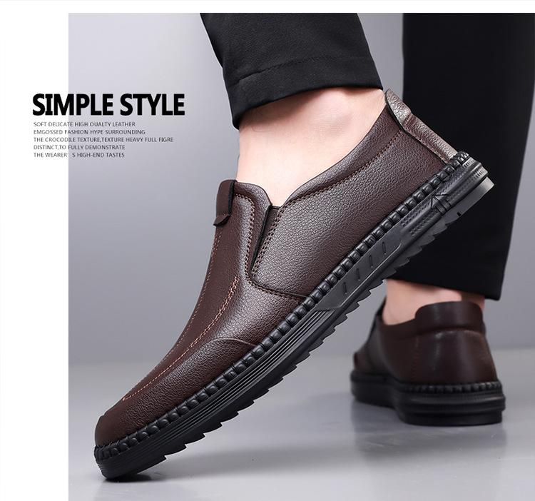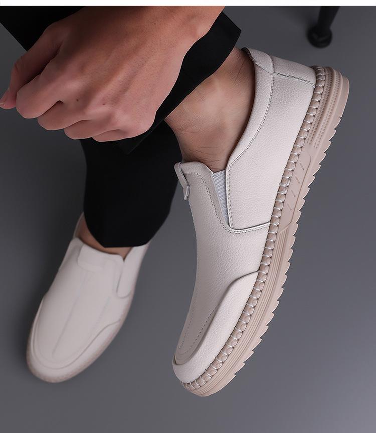 Zapatos de cuero transfronterizos para hombre, nuevos zapatos casuales sin cordones de primavera, combinables con todo, con suela suave y transpirable, zapatos de conducción a la moda.
