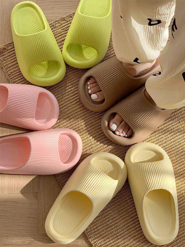 Pantuflas de baño de EVA para dormitorio, hogar, verano, suela suave, antideslizantes, suela gruesa, para interior, de una sola palabra, para mujer
