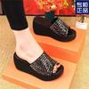 Pantuflas 2019 moda de verano para mujer ropa exterior estilo coreano sandalias de plataforma con cuña pantuflas de suela gruesa con tacón alto y suela tipo muffin