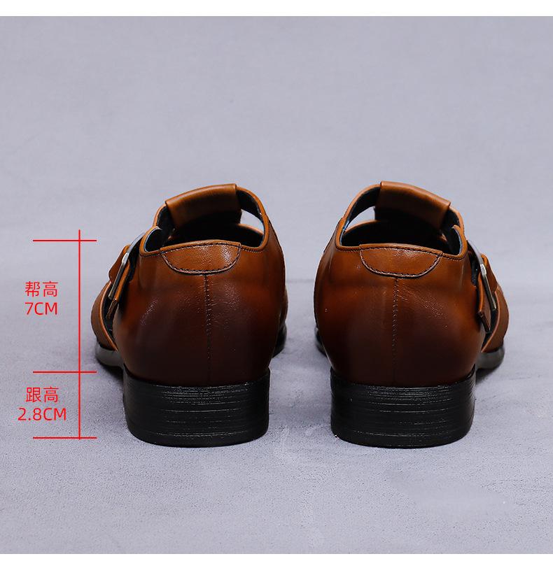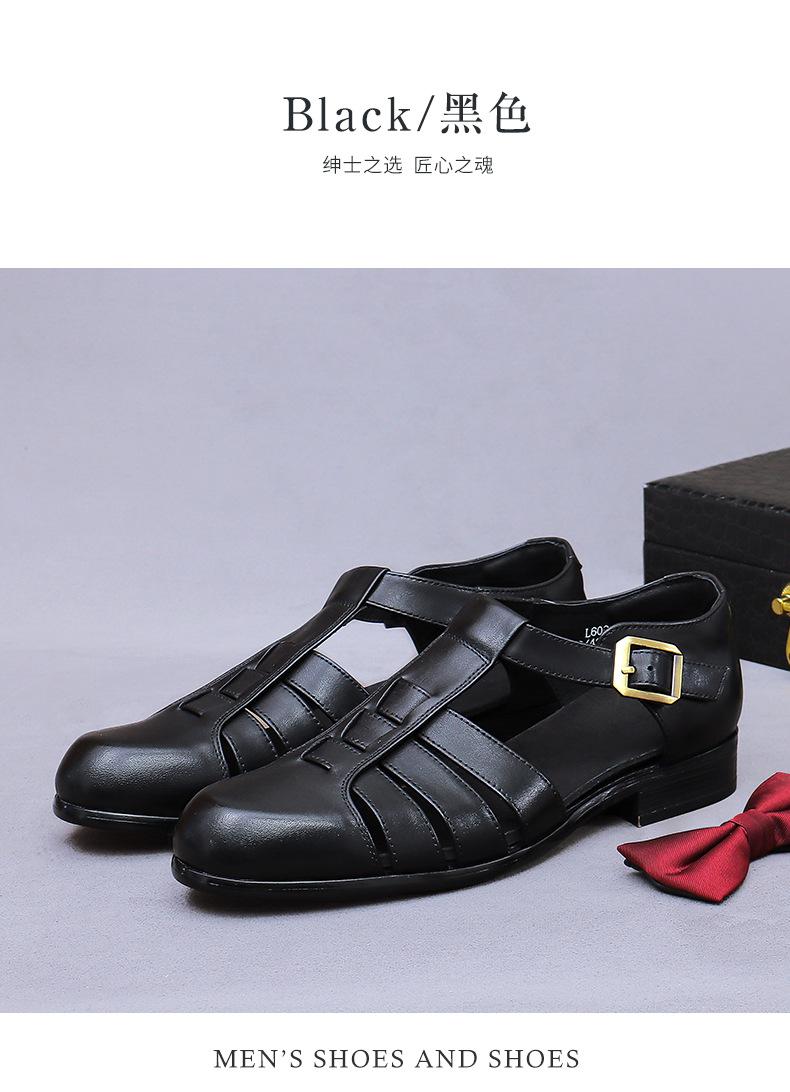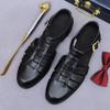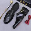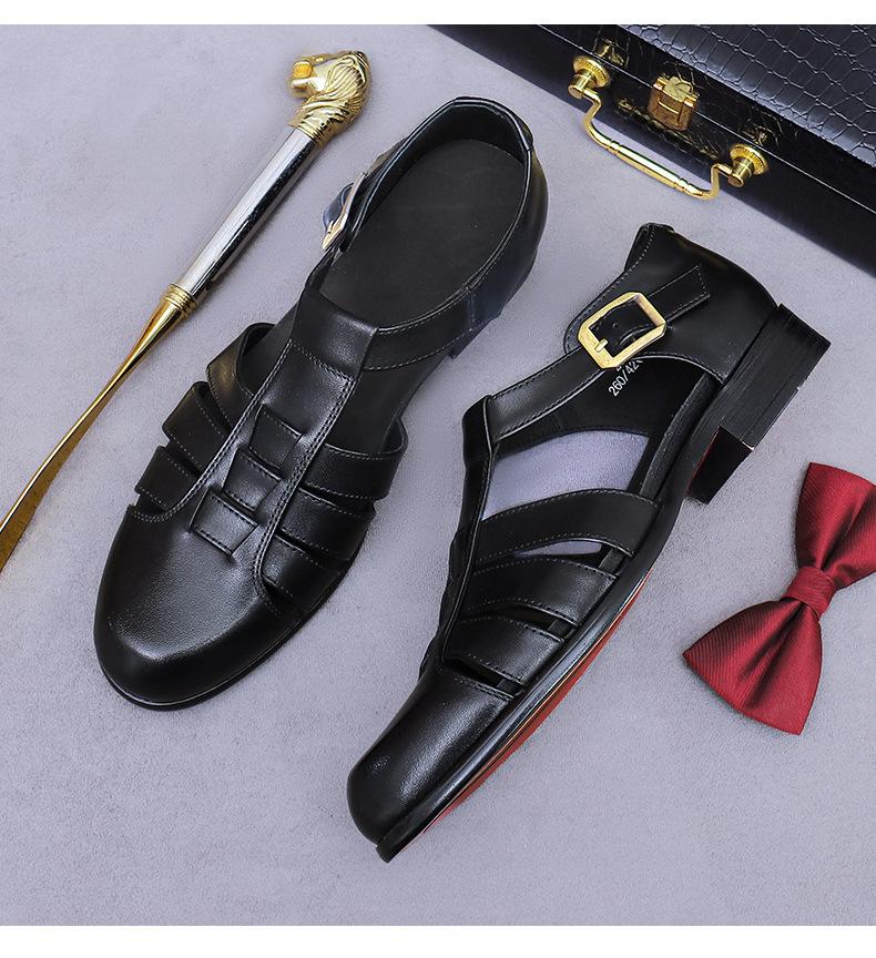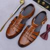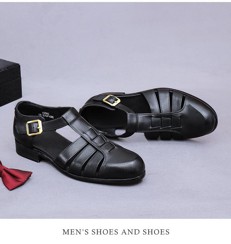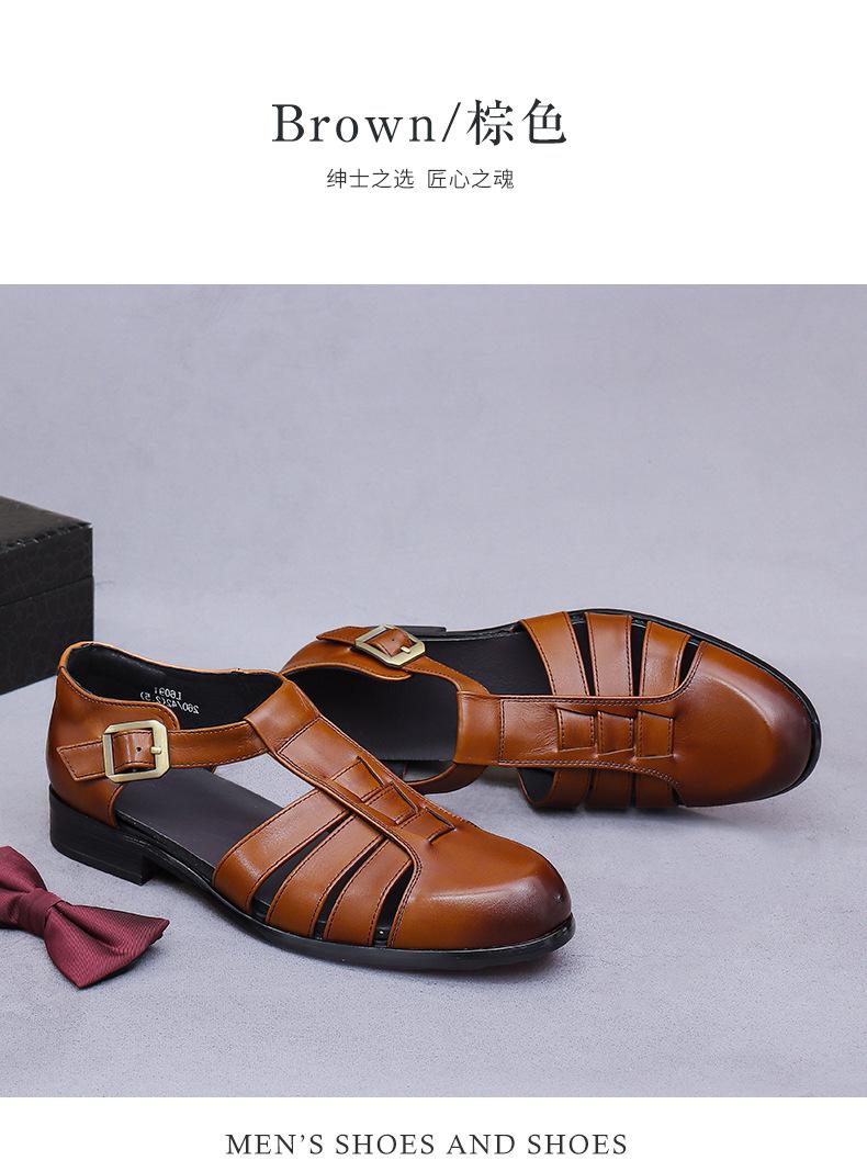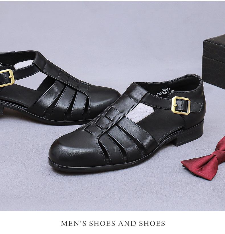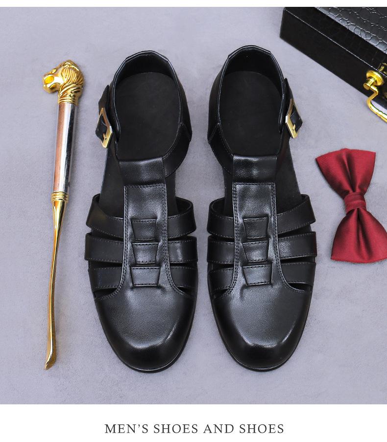 Sandalias de cuero para hombre, estilo retro, con puntera superior, de piel de vaca auténtica, para conducir, con hebilla, transpirables, para verano