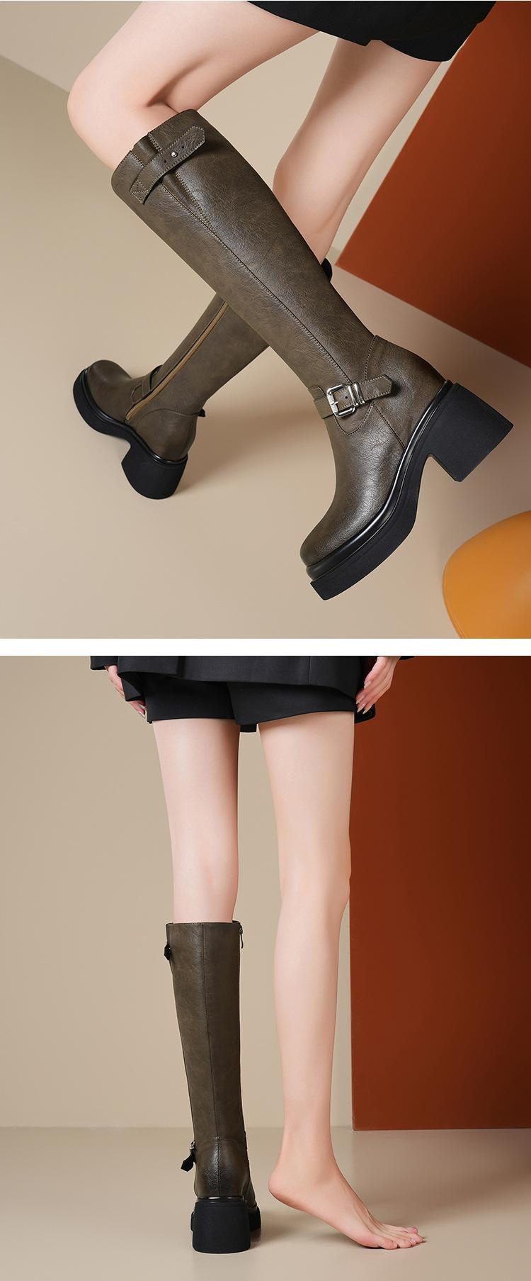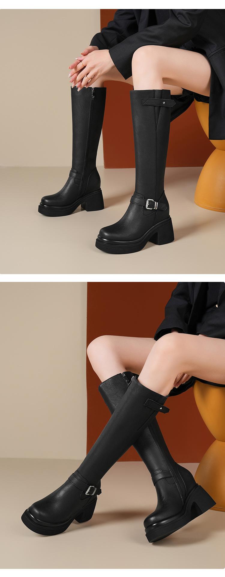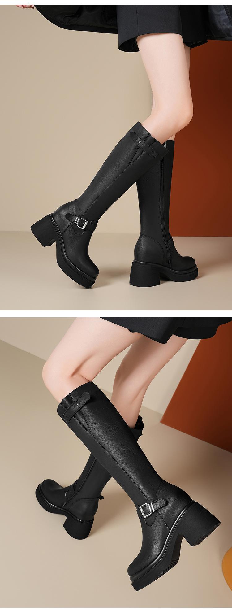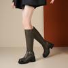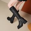 Altura Interior 10cm Altura Botines Medios de Caña hasta la Rodilla de Tacón Alto Grueso de Cuero para Otoño e Invierno para Mujer