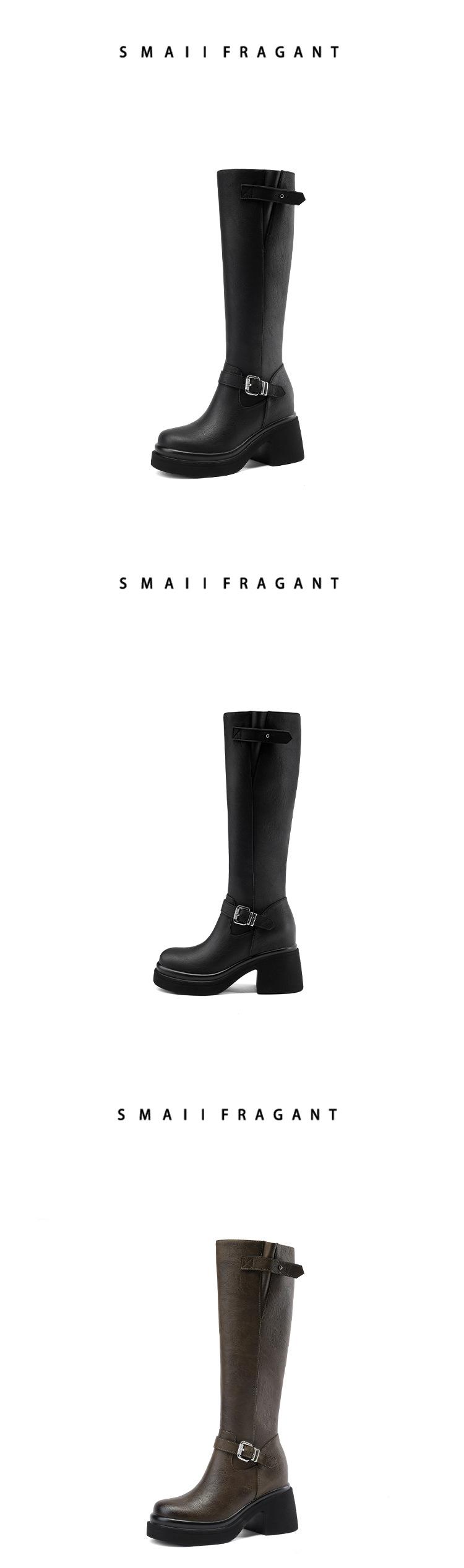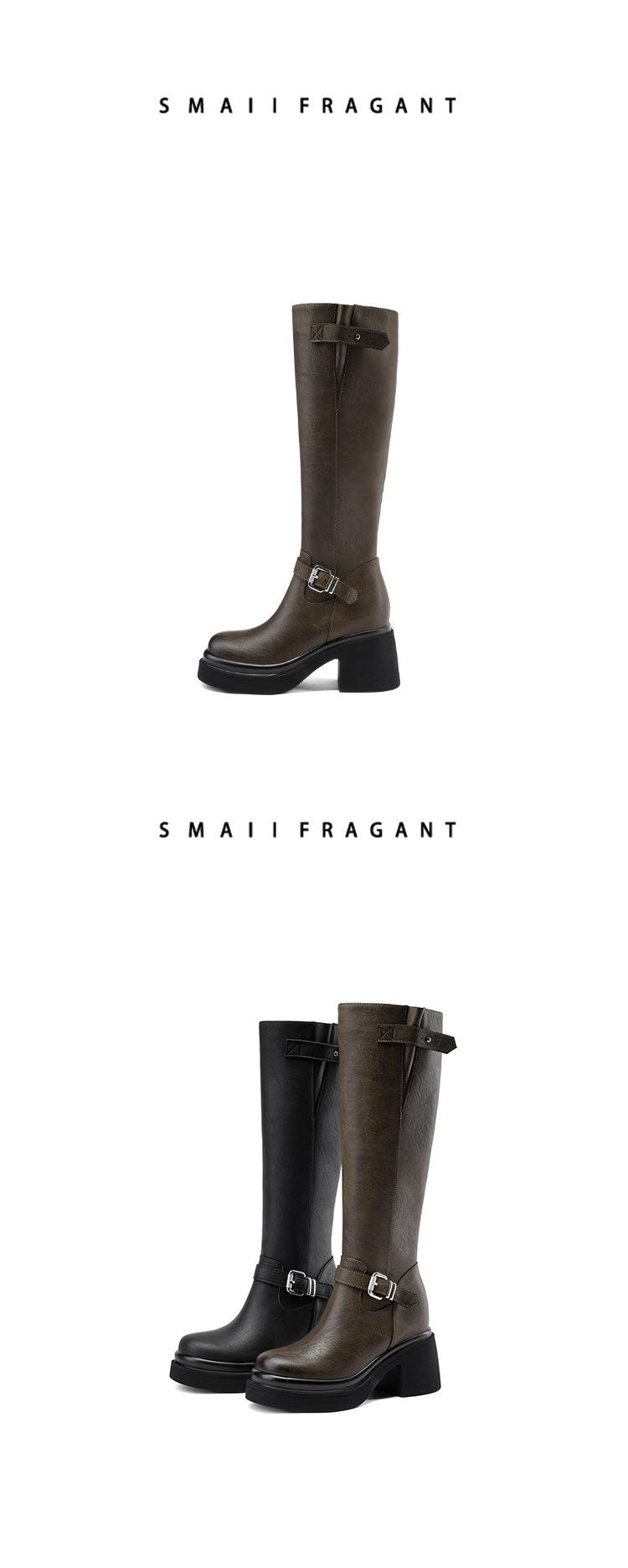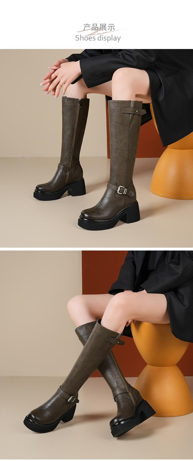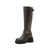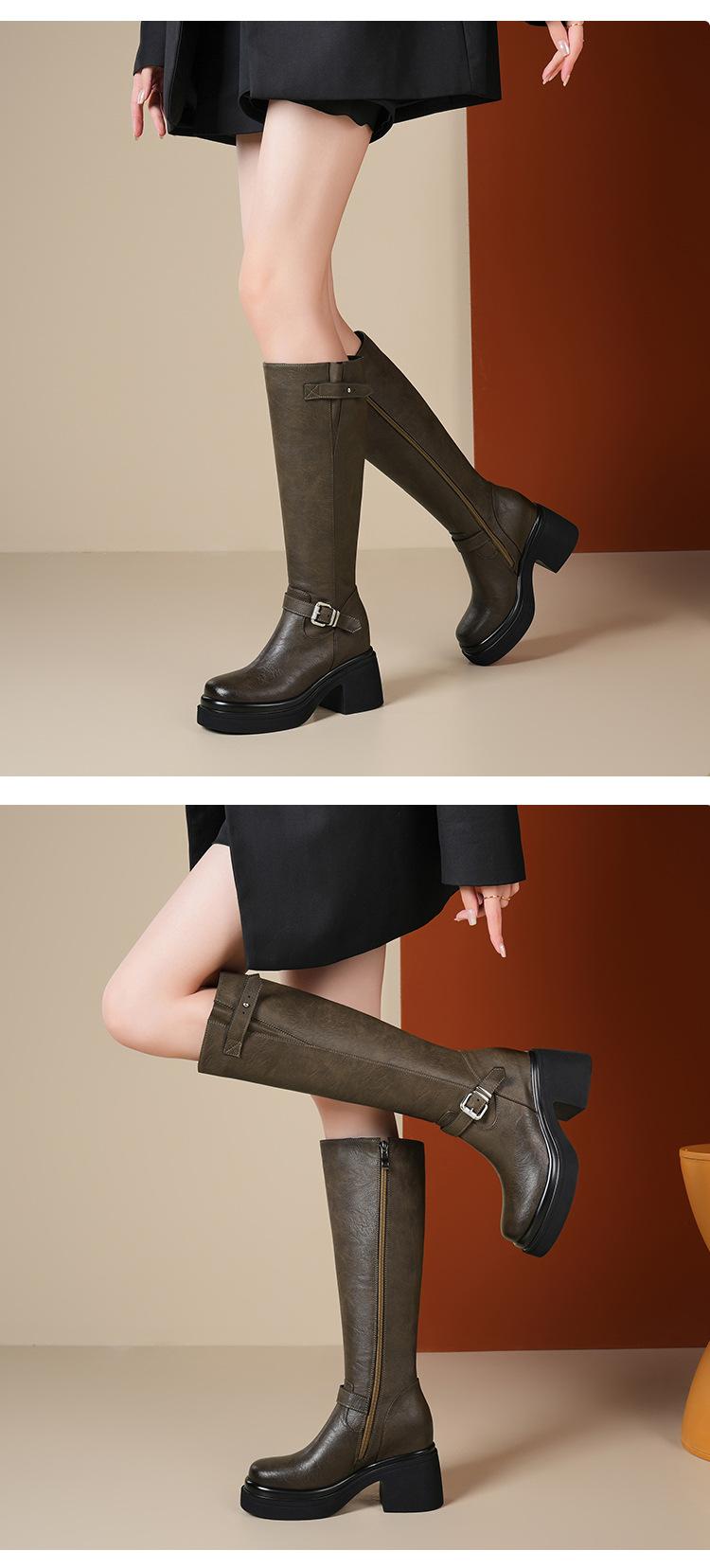 Altura Interior 10cm Altura Botines Medios de Caña hasta la Rodilla de Tacón Alto Grueso de Cuero para Otoño e Invierno para Mujer