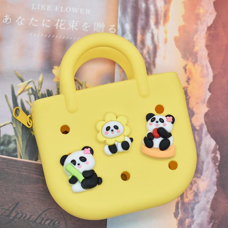 Lindo Dibujo Animado Medio 3D Panda PVC Goma Suave Zapatos con Agujeros Flor Hebilla para Zapatos DIY Removible Hecho a Mano Accesorios Decorativos