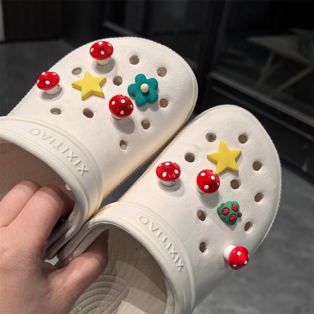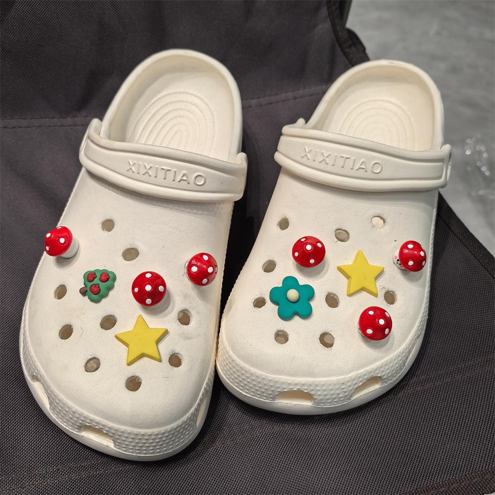 Cartoon mushroom cream croc shoes flower decoration, Sweet college