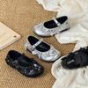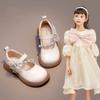 Zapatos de princesa con perlas para niñas, primavera 2025, nuevos zapatos de cuero pequeños de alto rendimiento en colores sólidos, zapatos individuales para niños pequeños y grandes.