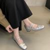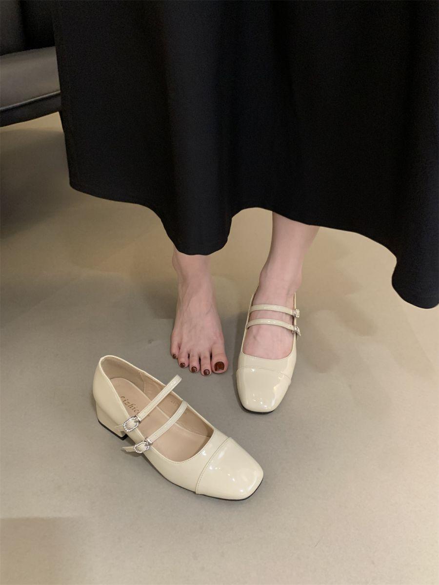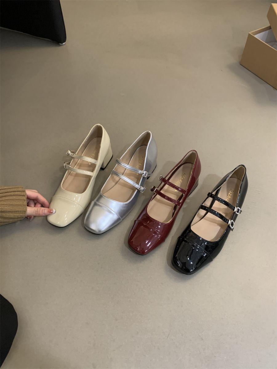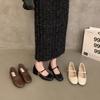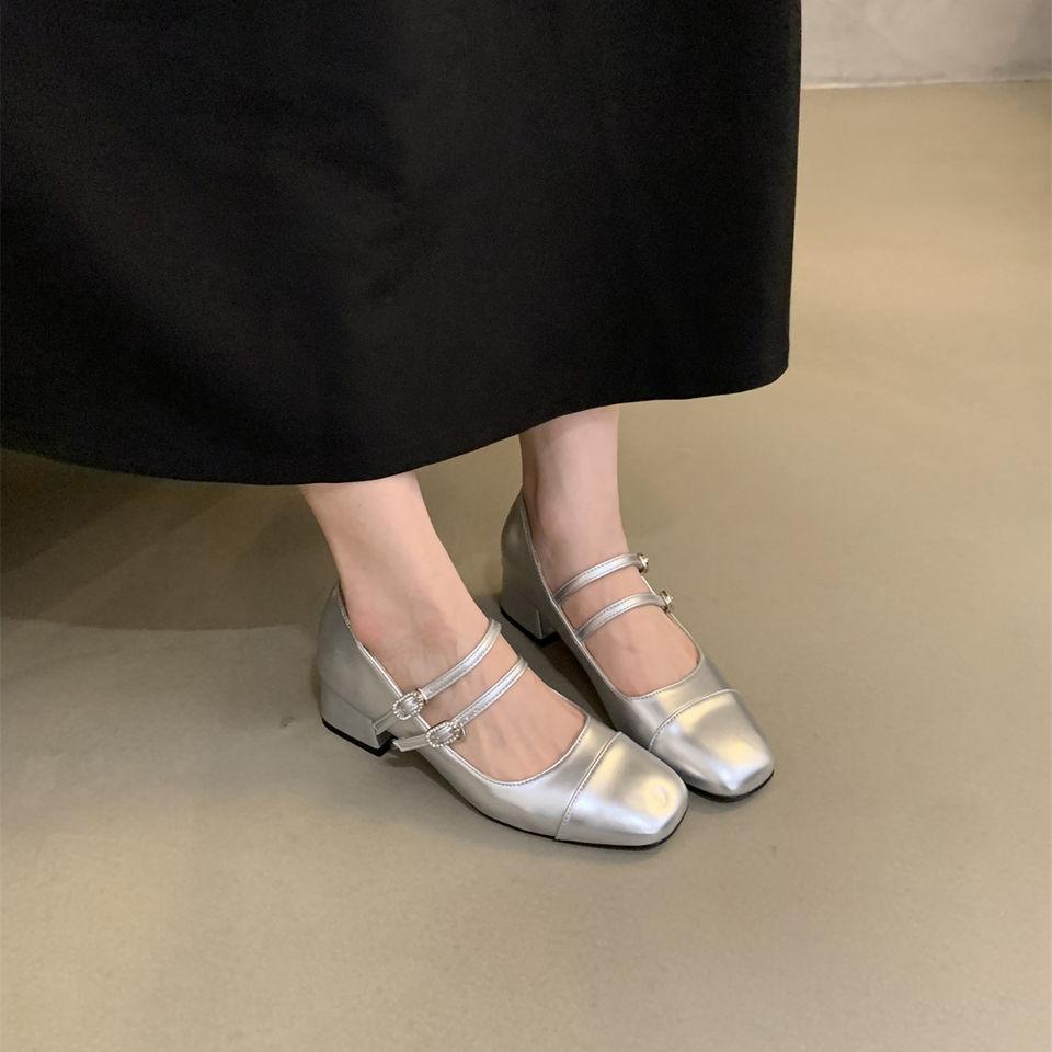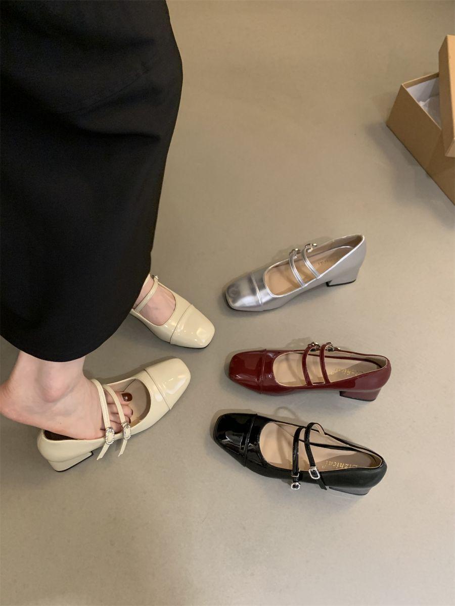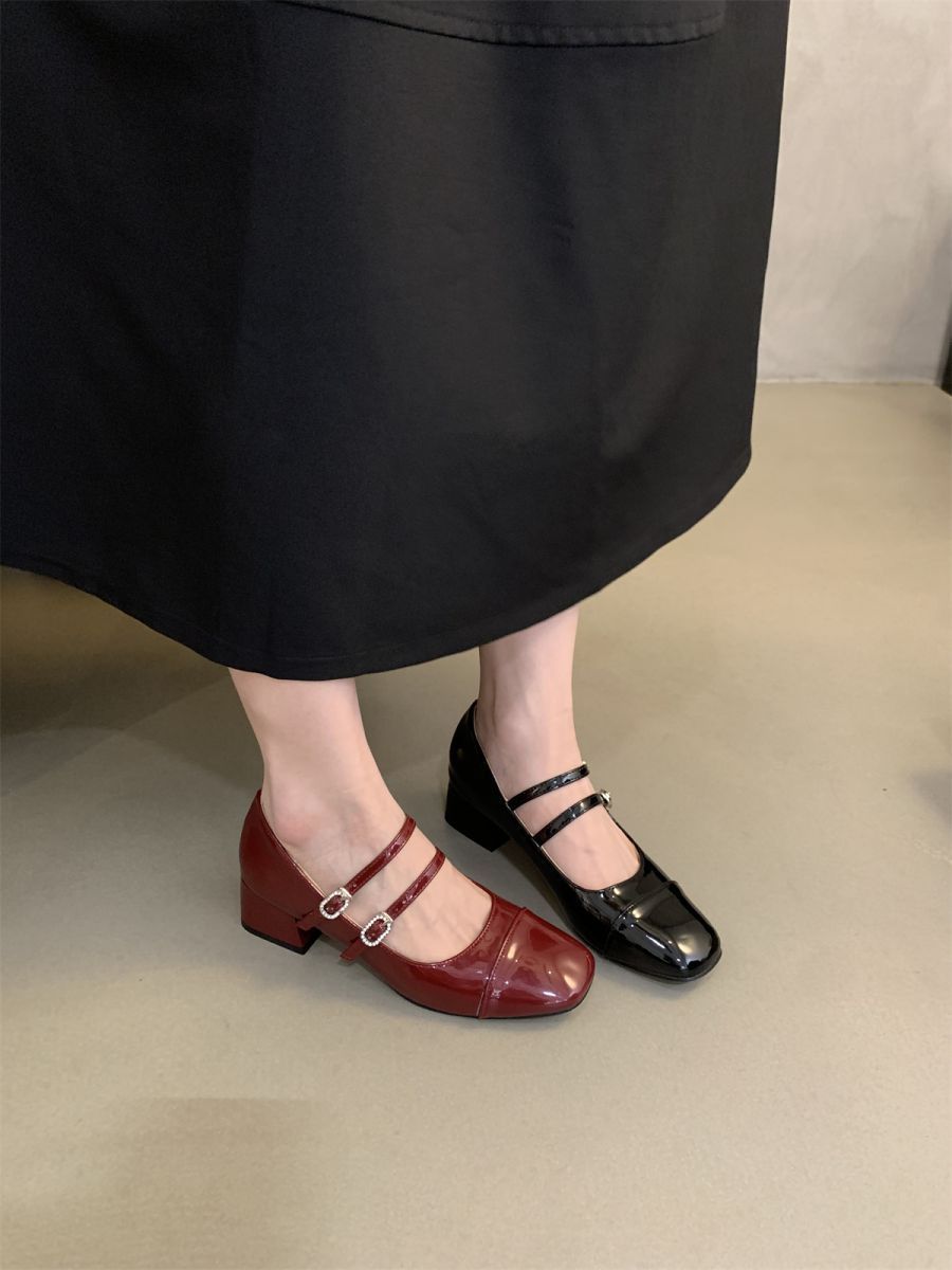 Zapatos Mary Jane de tacón grueso, otoño 2025, estilo coreano, estilo francés, estilo brisa nocturna, estilo retro, rojos, de boca baja, zapatos sencillos para mujer, tacón medio.