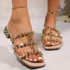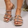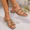 Sandalias de tacón grueso con cabeza cuadrada y diamantes de imitación para mujer, zapatos de tacón medio europeos y americanos, de talla grande, para comercio exterior, verano 2025