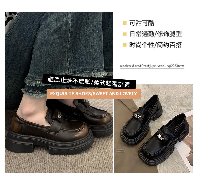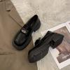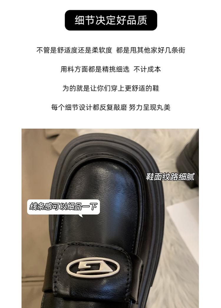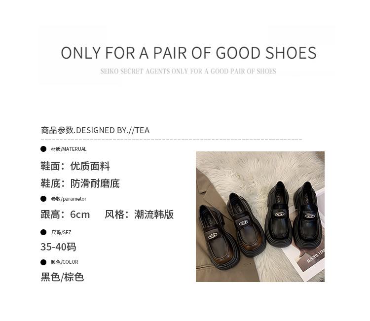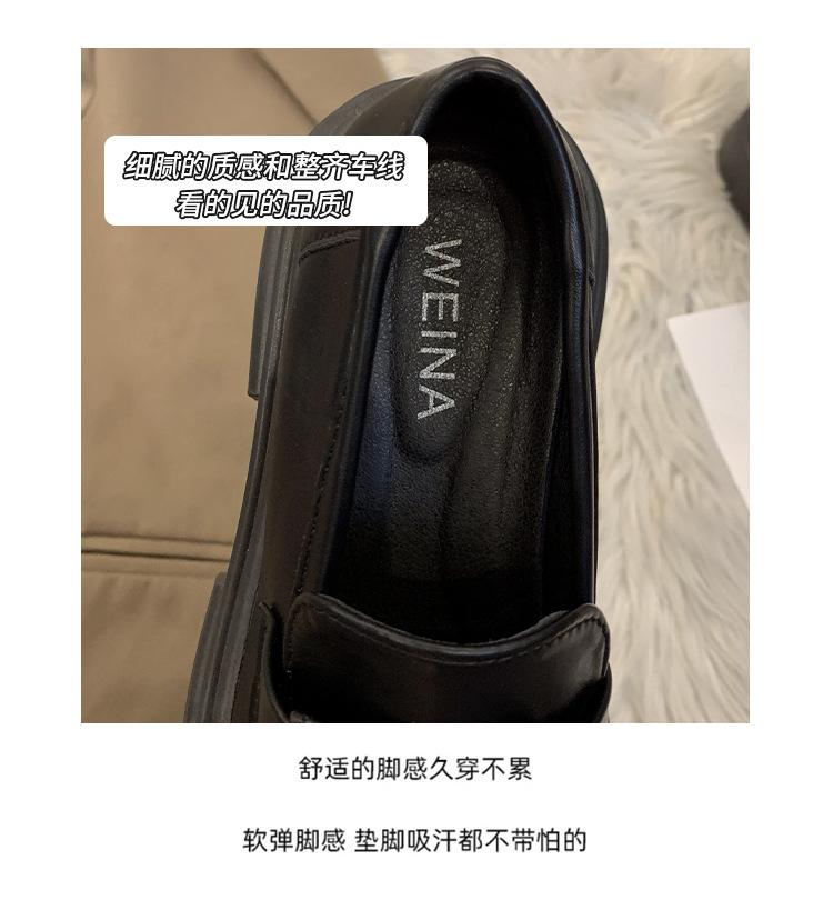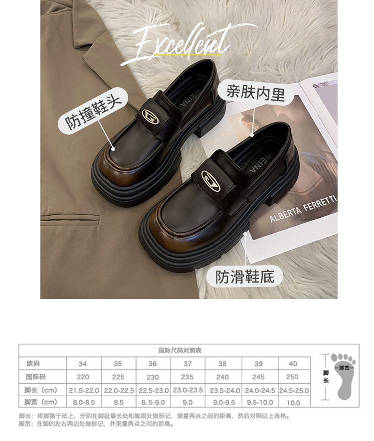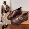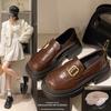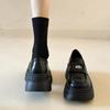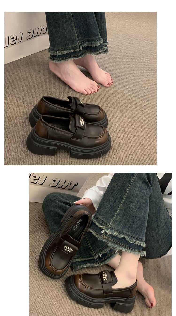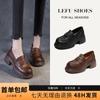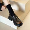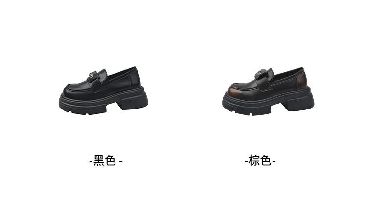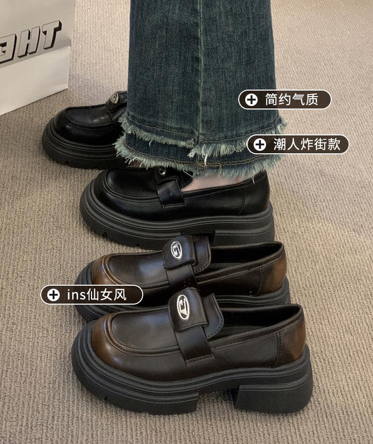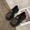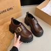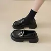 Mocasines estilo británico retro de suela gruesa sin cordones para mujer, novedad primavera/otoño 2025, tacón grueso, punta redonda, zapatos pequeños de cuero Joker
