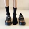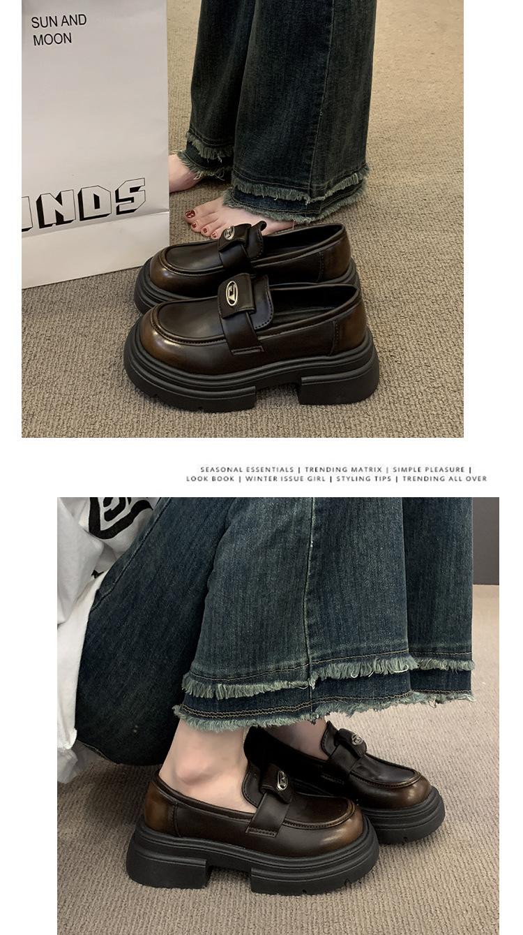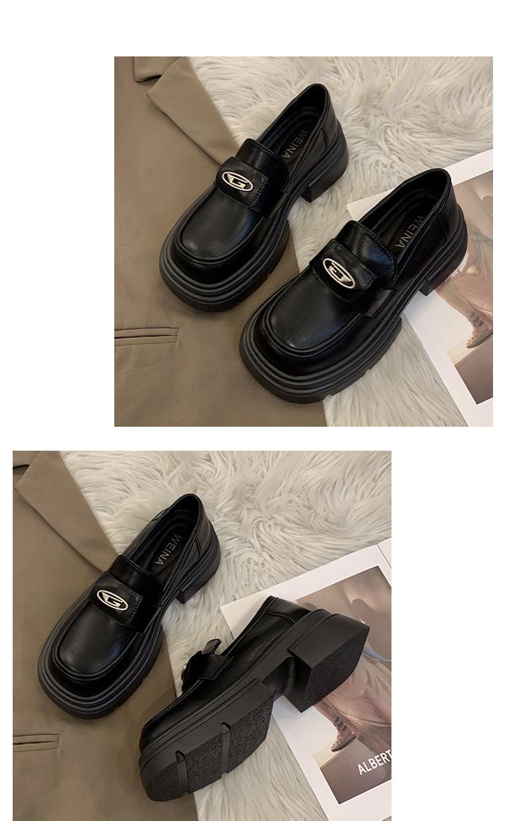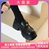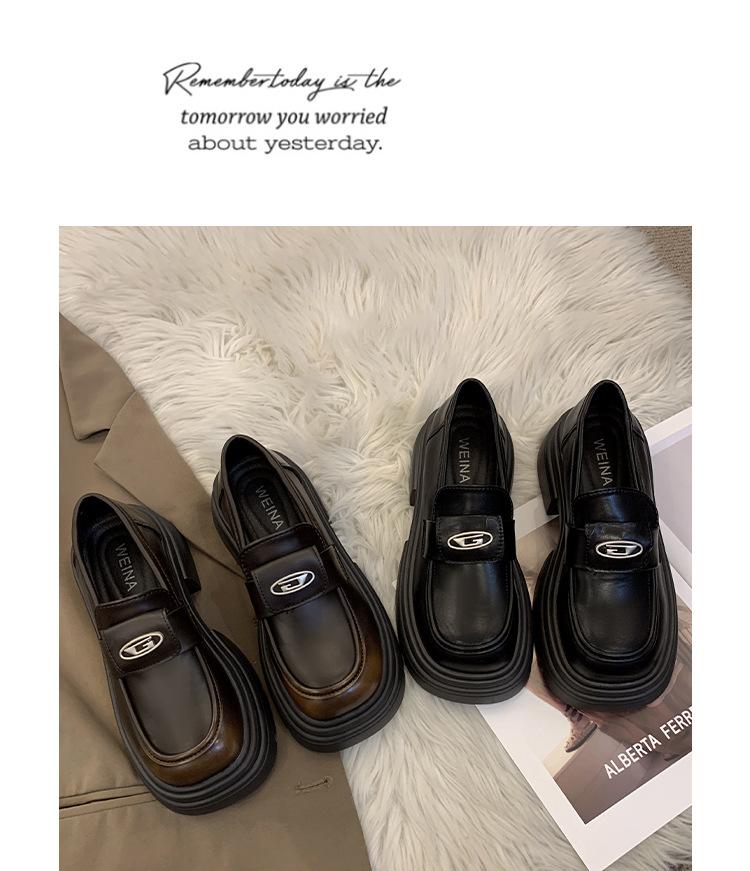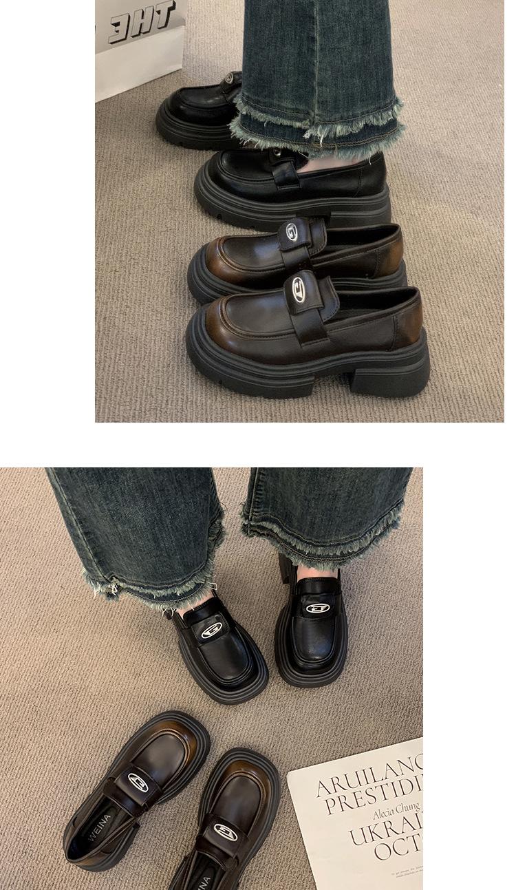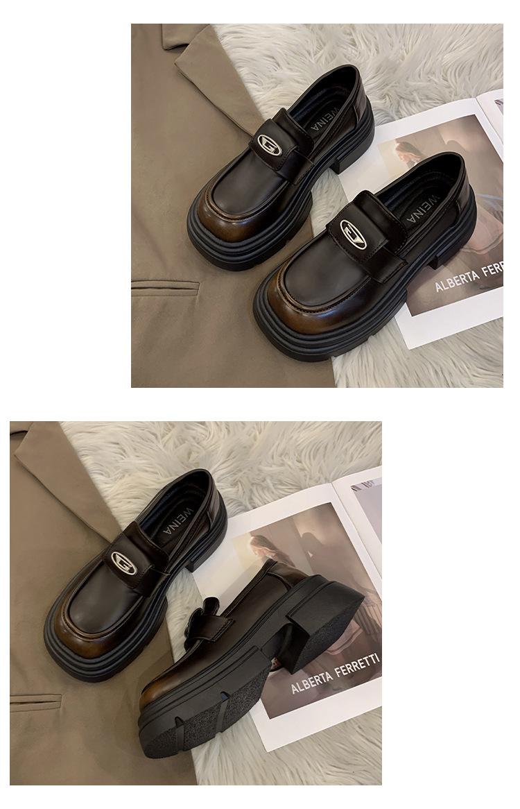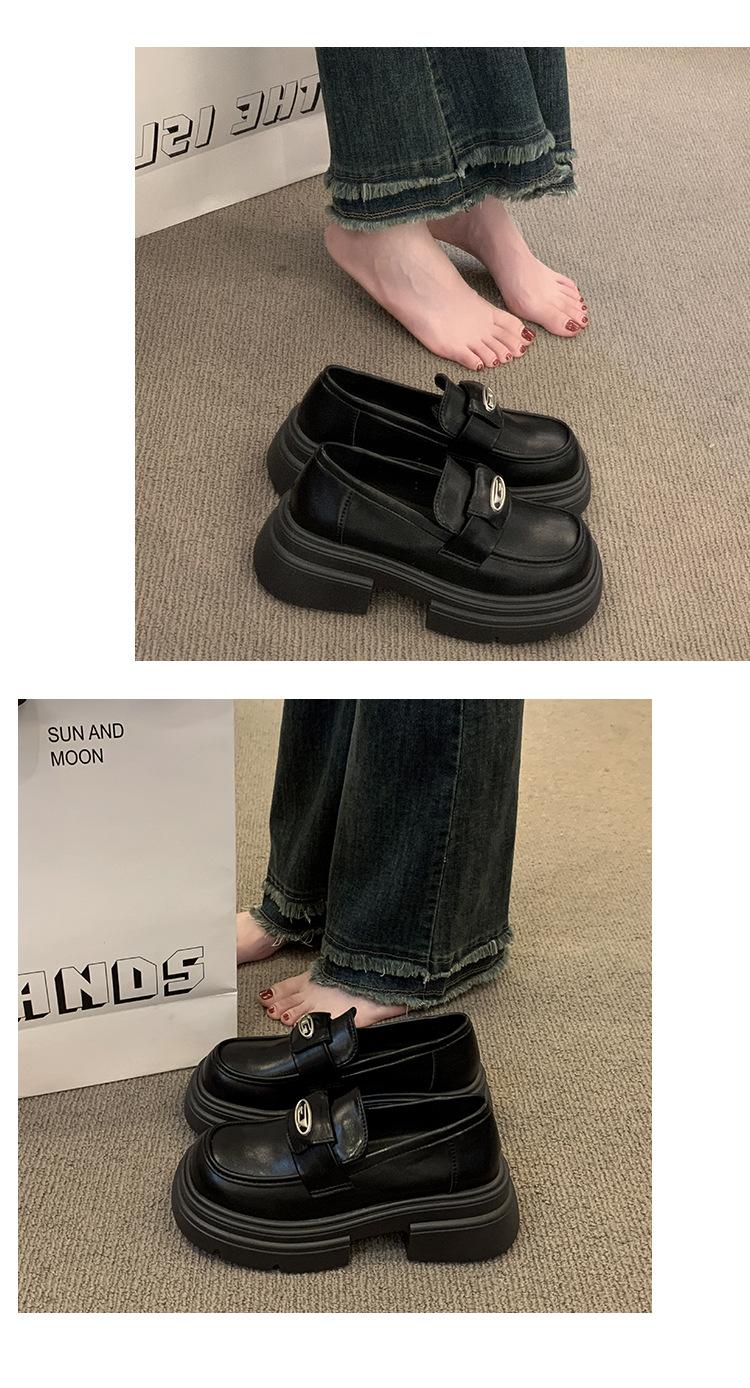 Mocasines estilo británico retro de suela gruesa sin cordones para mujer, novedad primavera/otoño 2025, tacón grueso, punta redonda, zapatos pequeños de cuero Joker