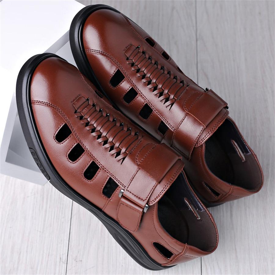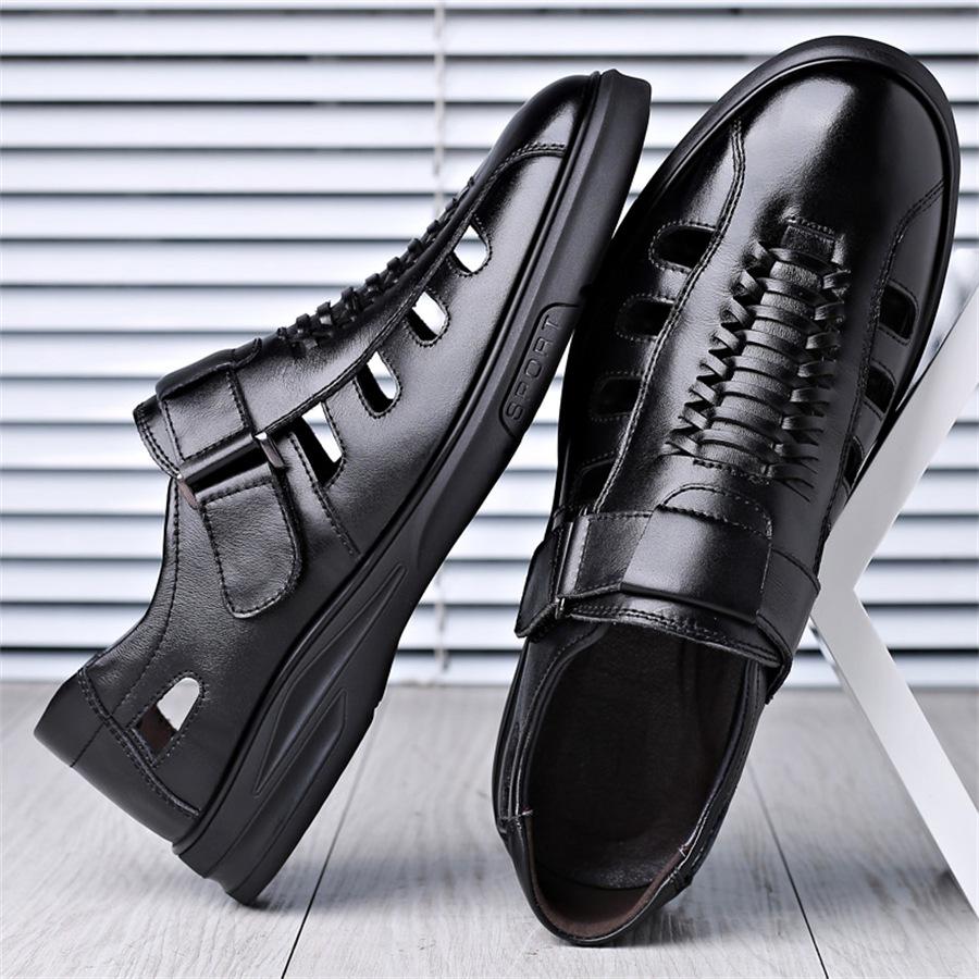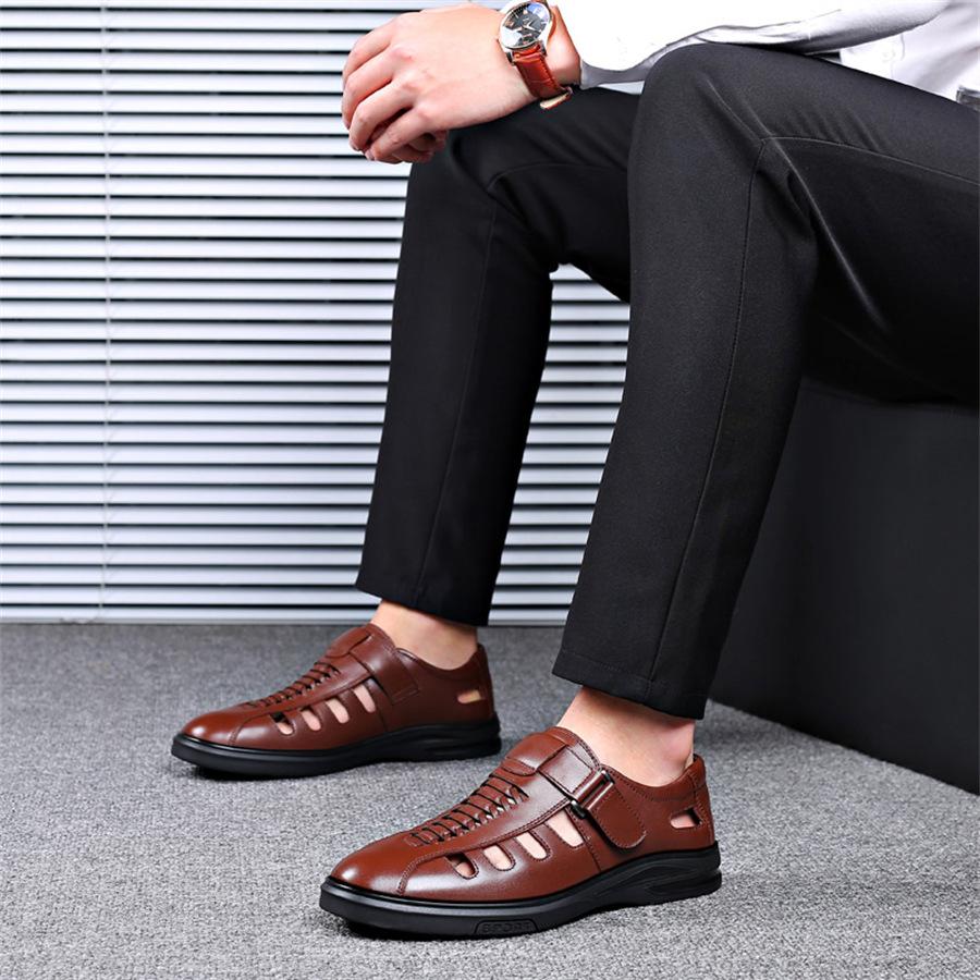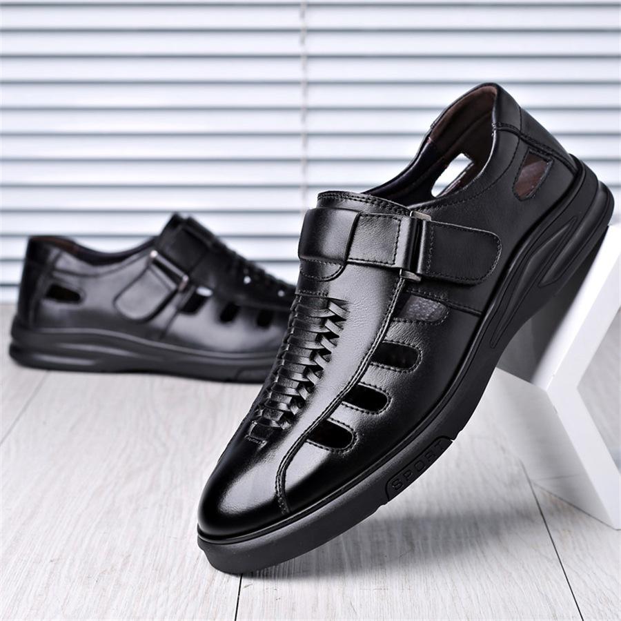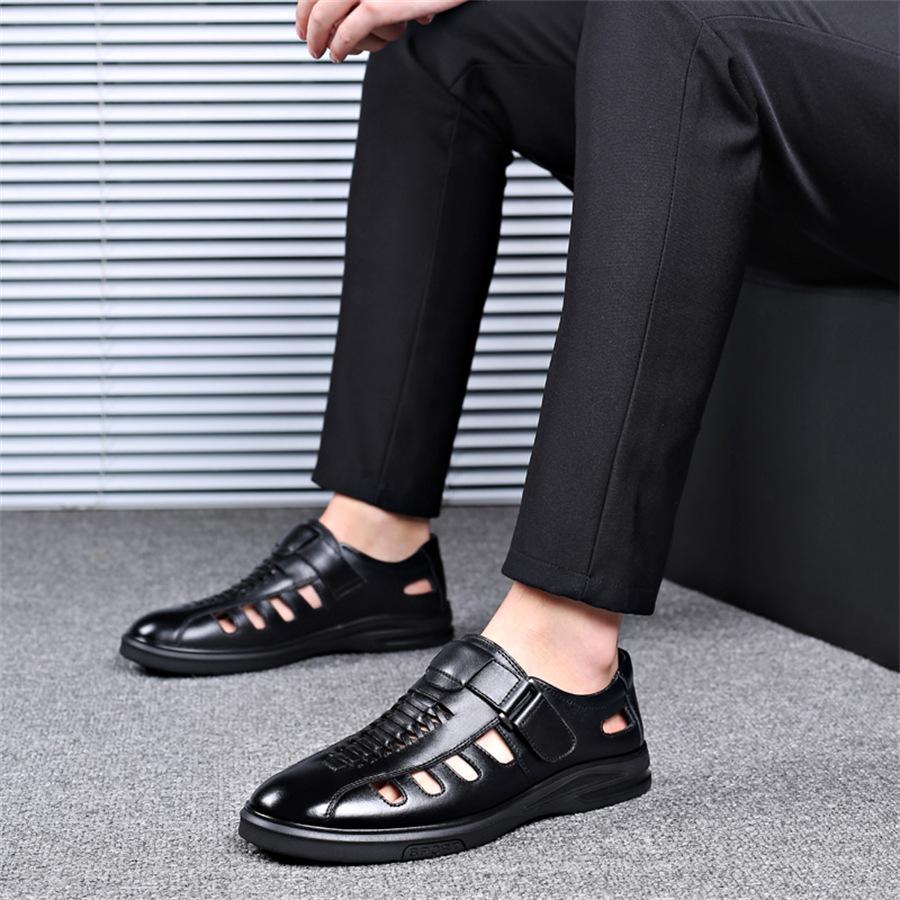 Sandalias de verano para hombre, nuevas, huecas, para playa, de piel suave y transpirable, con velcro.