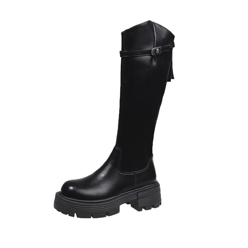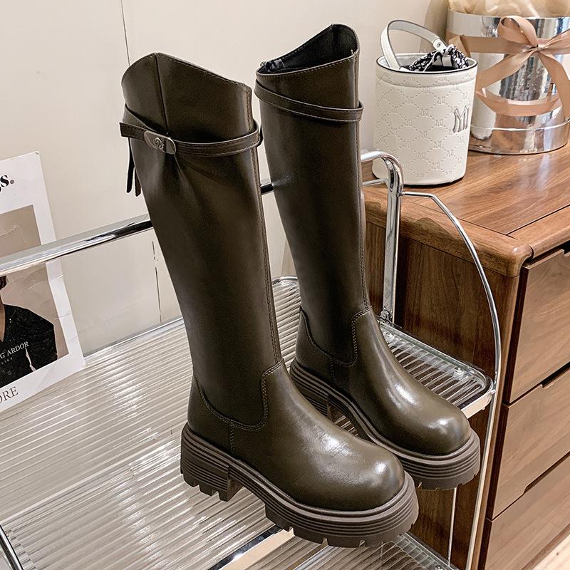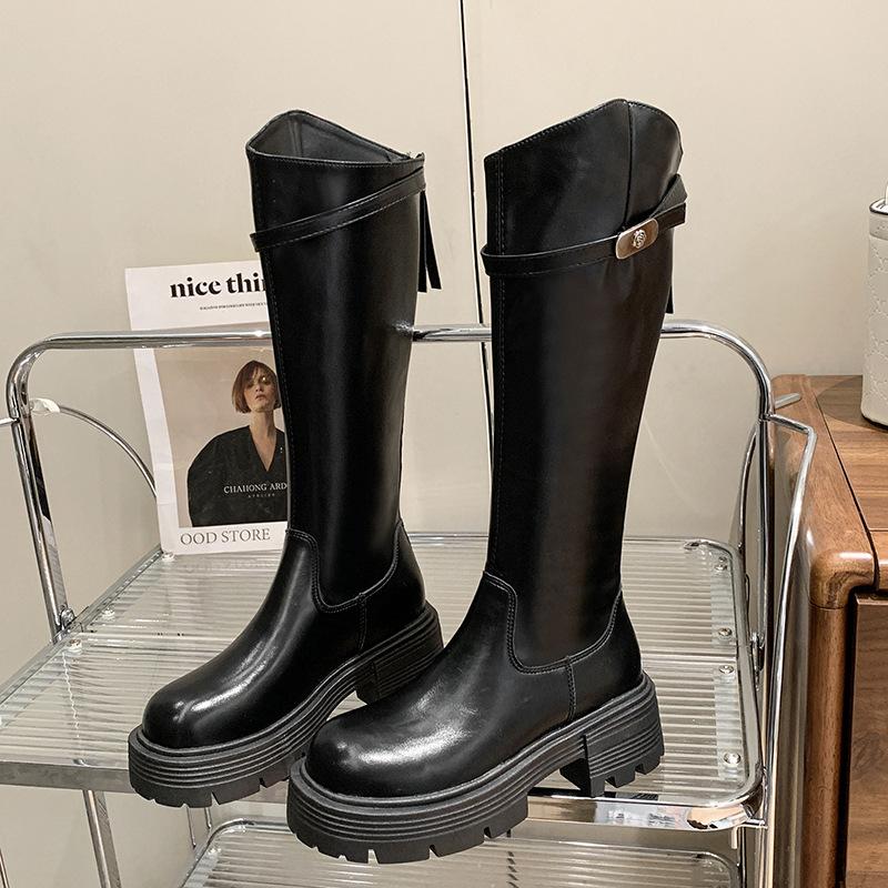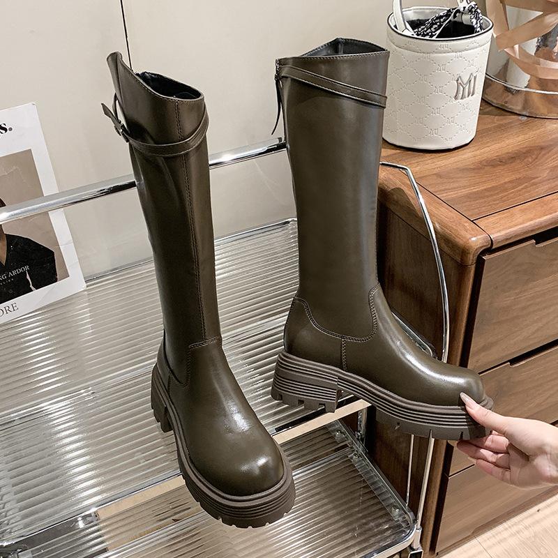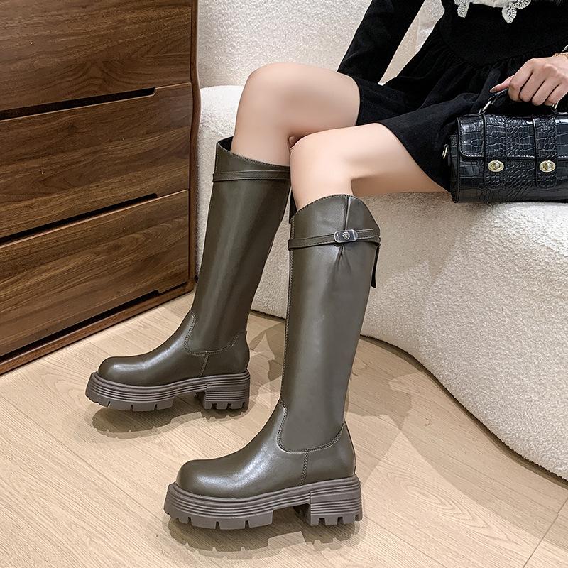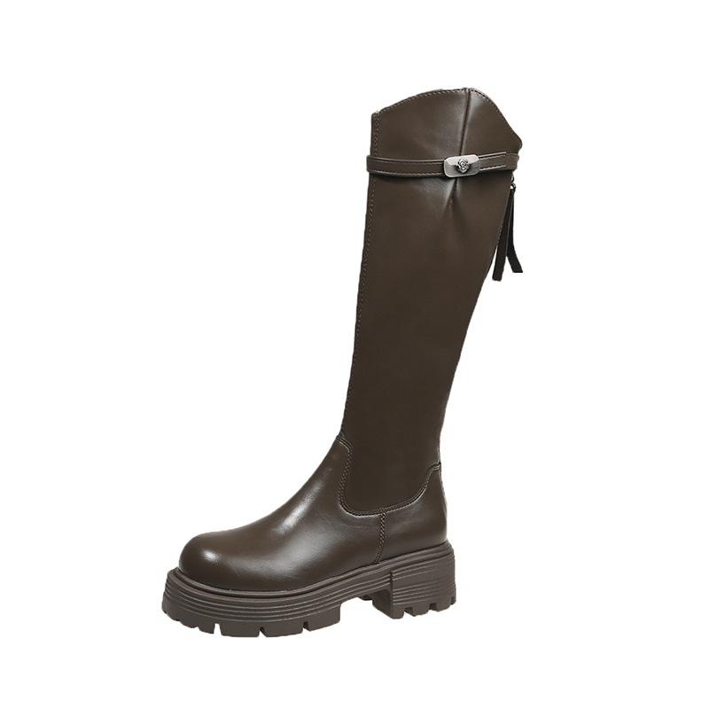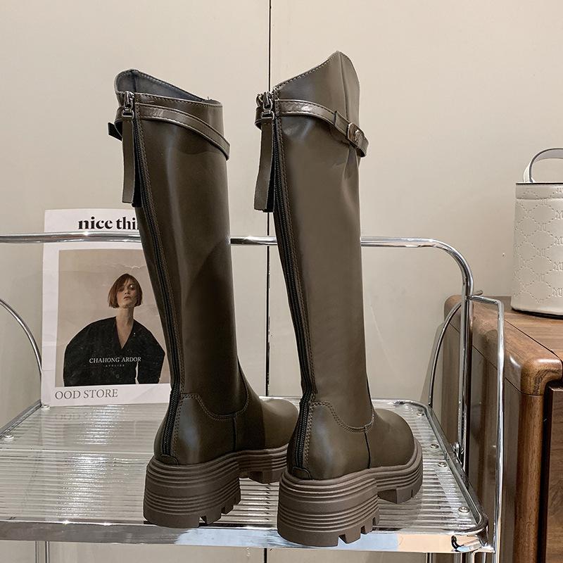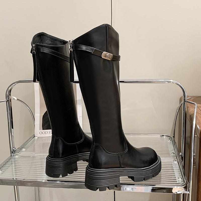 Botas Maillard de suela gruesa para mujer, primavera y otoño 2025, estación europea, nuevas botas de caballero con cremallera trasera estrecha y boca en V para mujer