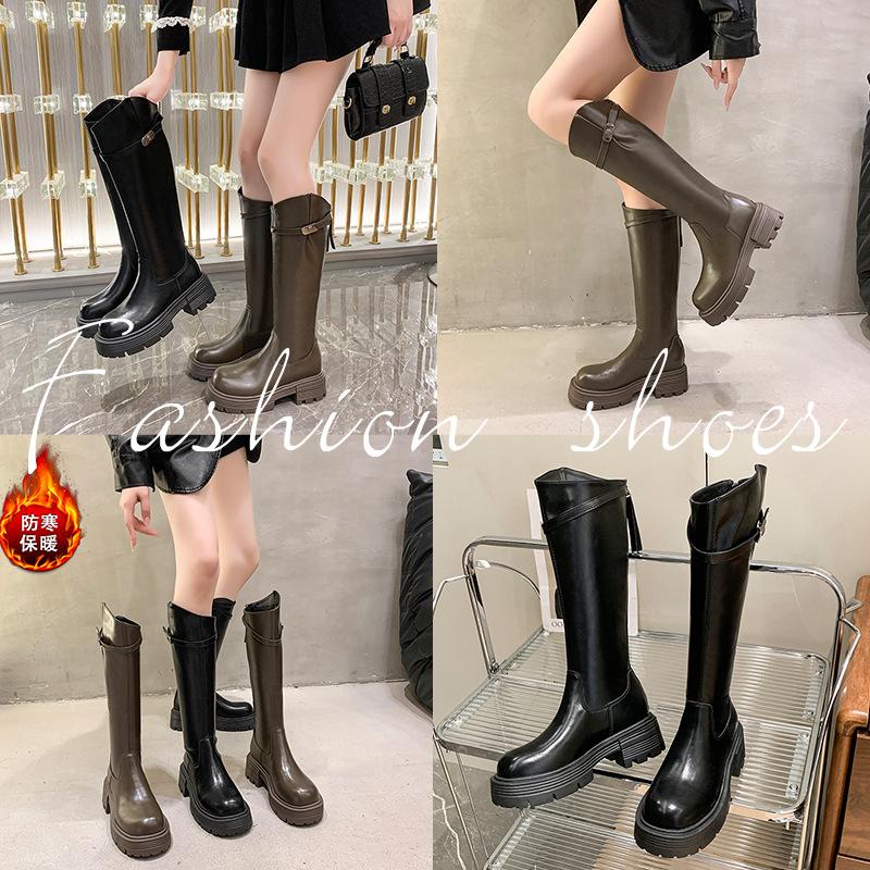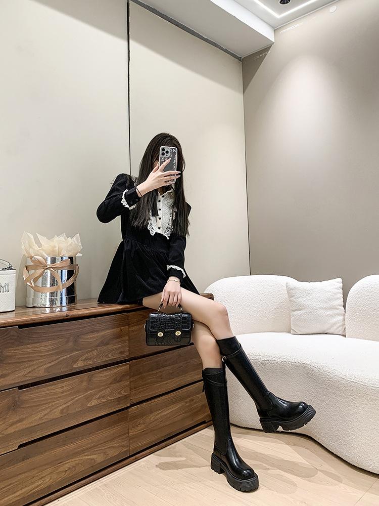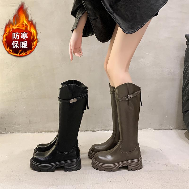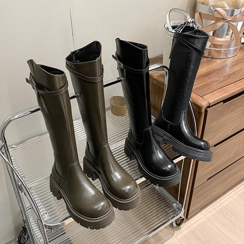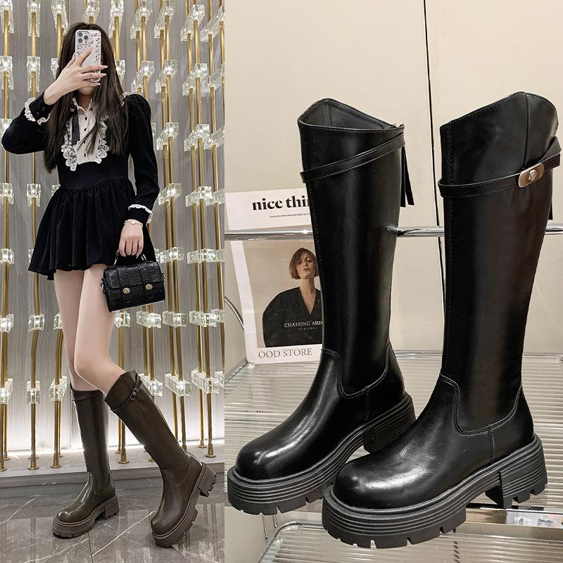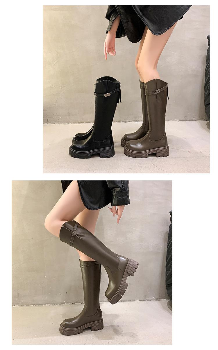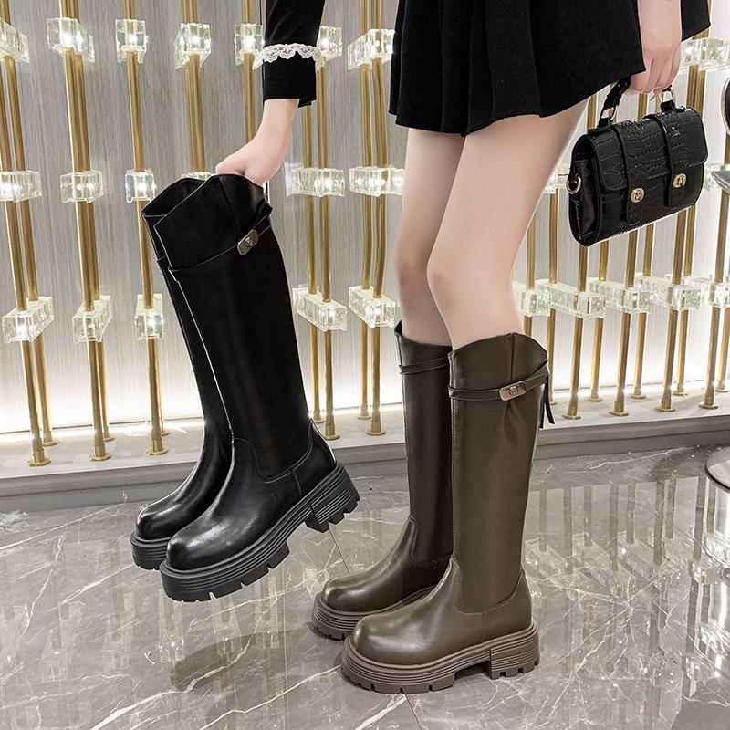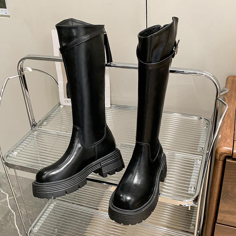 Botas Maillard de suela gruesa para mujer, primavera y otoño 2025, estación europea, nuevas botas de caballero con cremallera trasera estrecha y boca en V para mujer