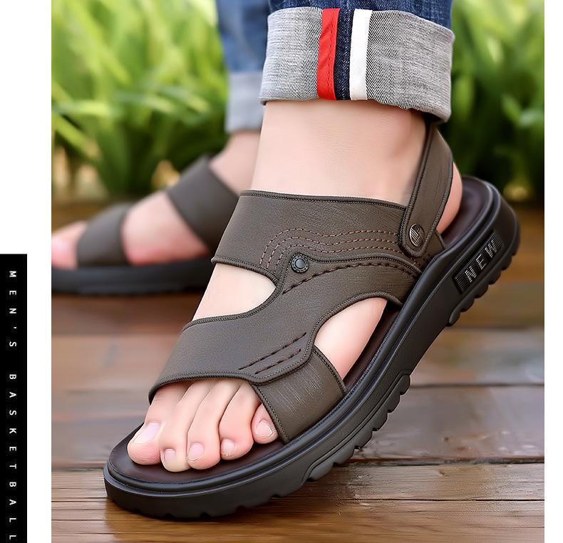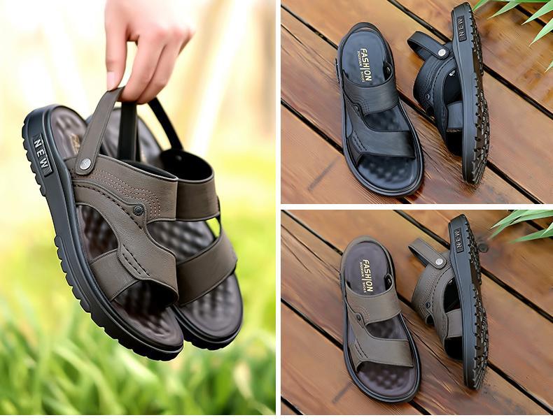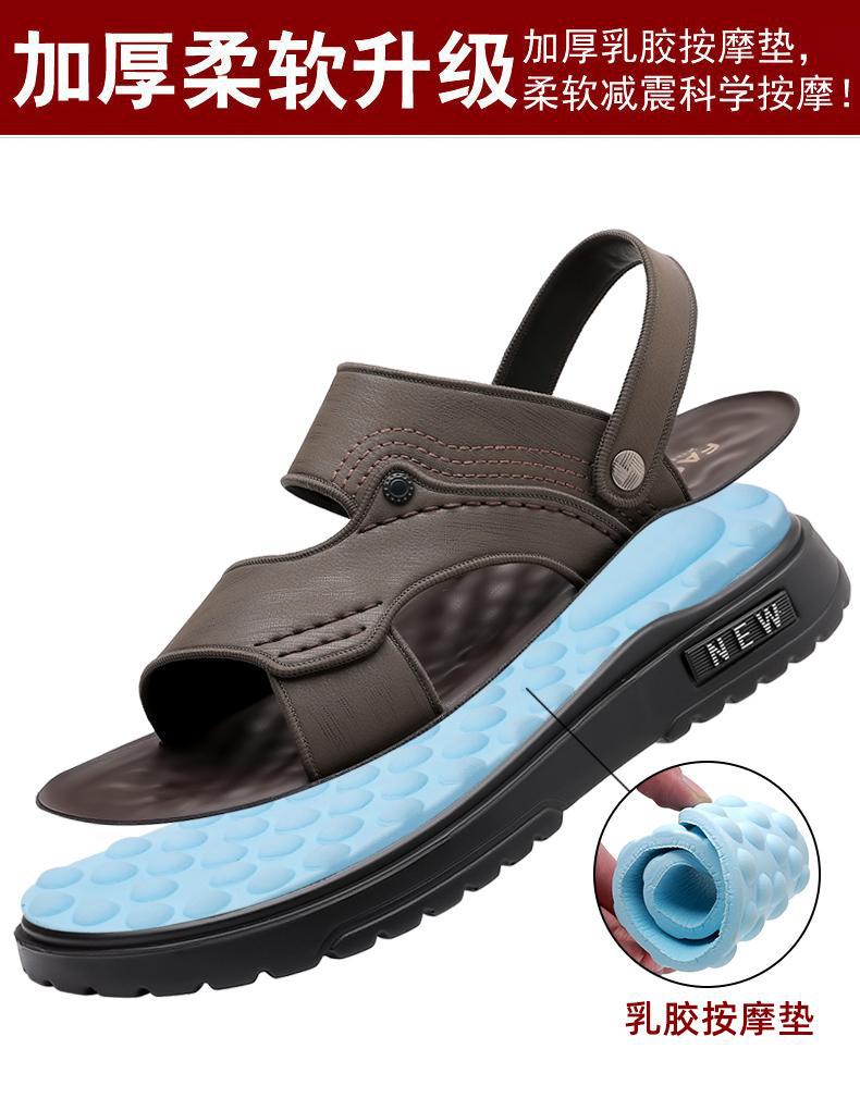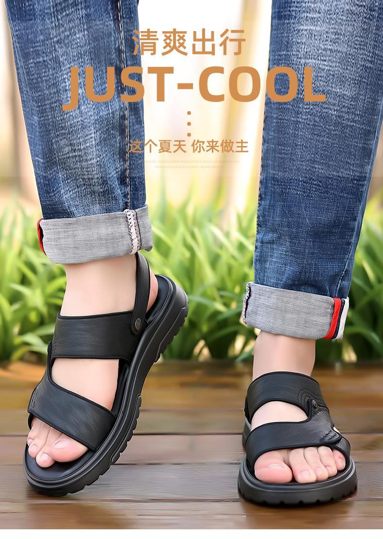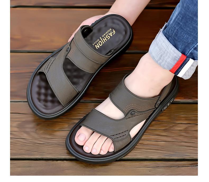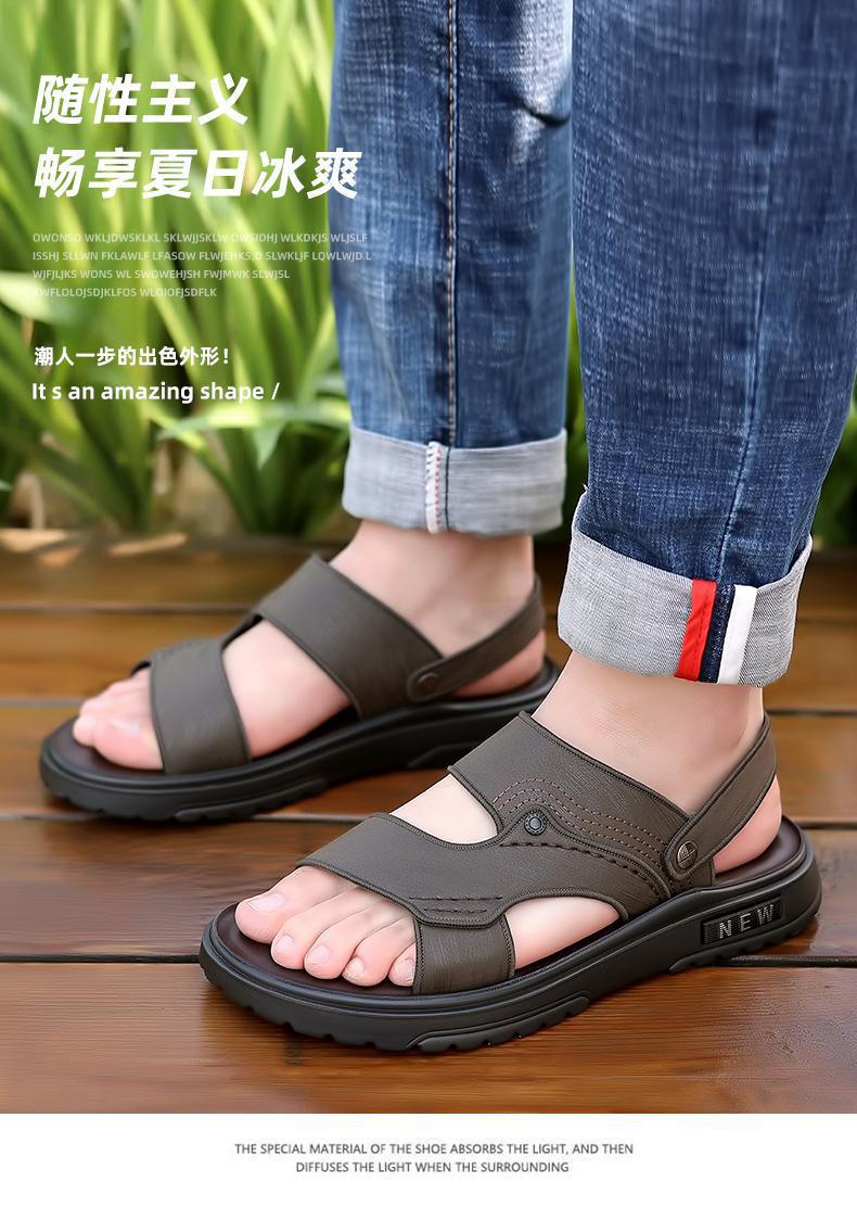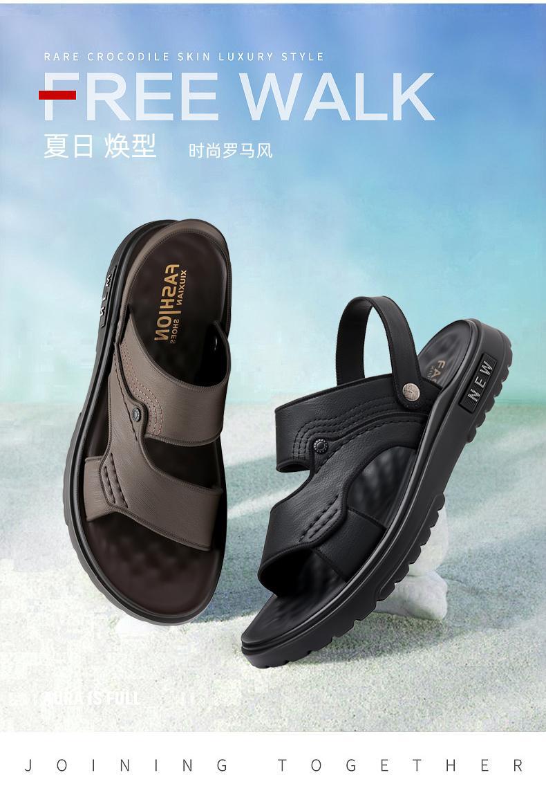 Sandalias de piel de vaca para hombre 2025 Nuevo estilo para uso al aire libre y para conducir, Sandalias para hombre con cojín de látex y suela suave, Zapatos de playa al por mayor